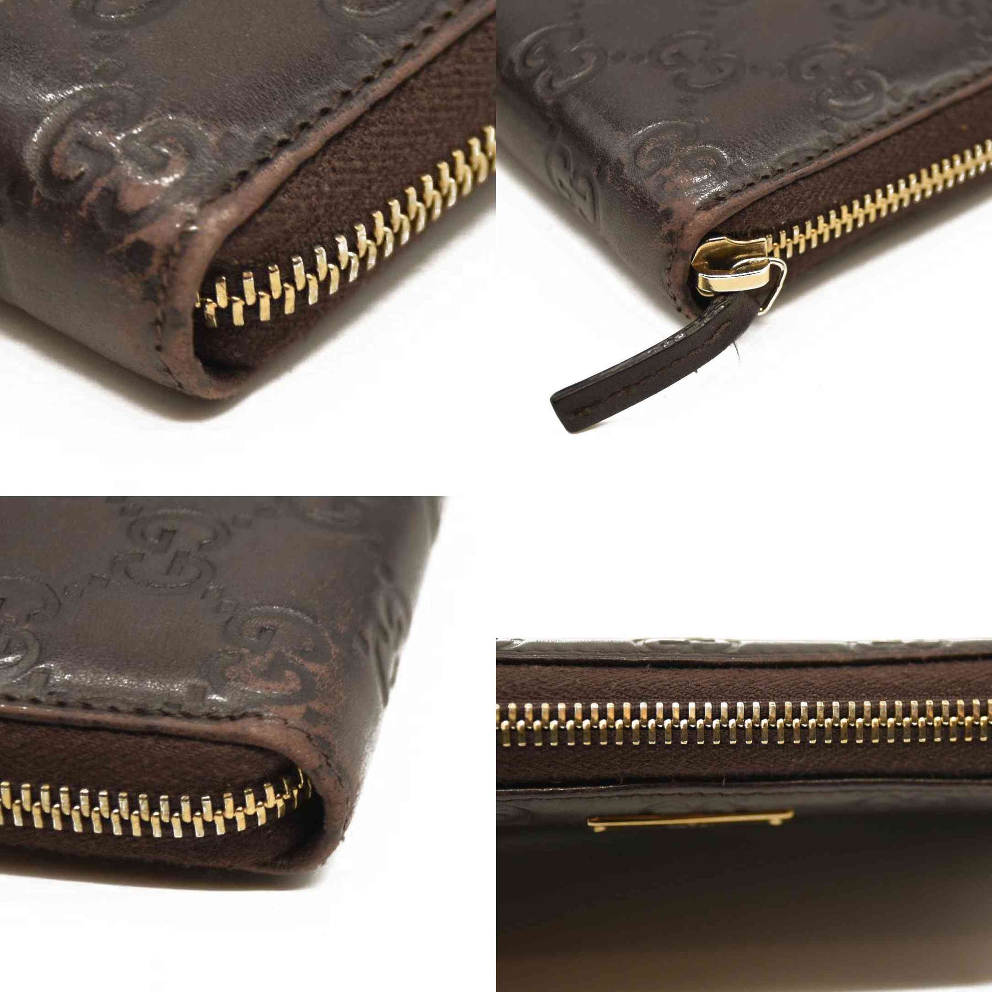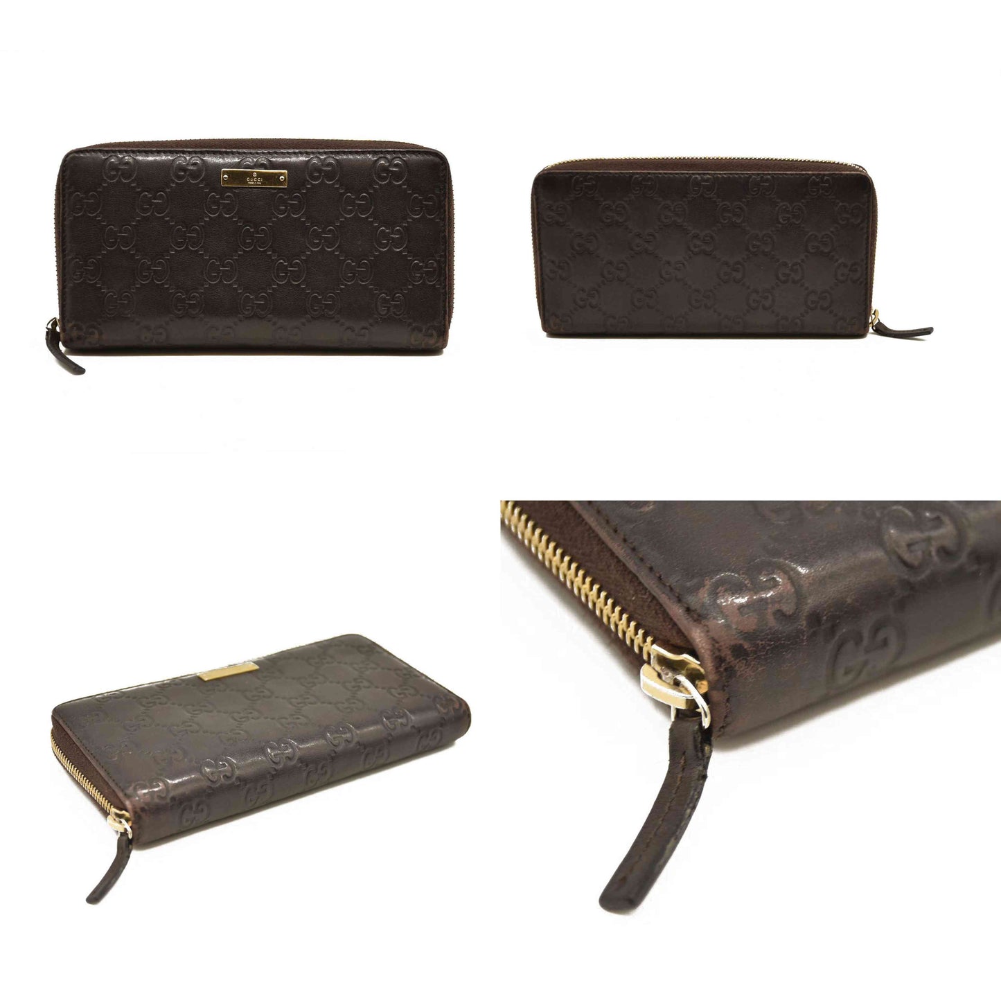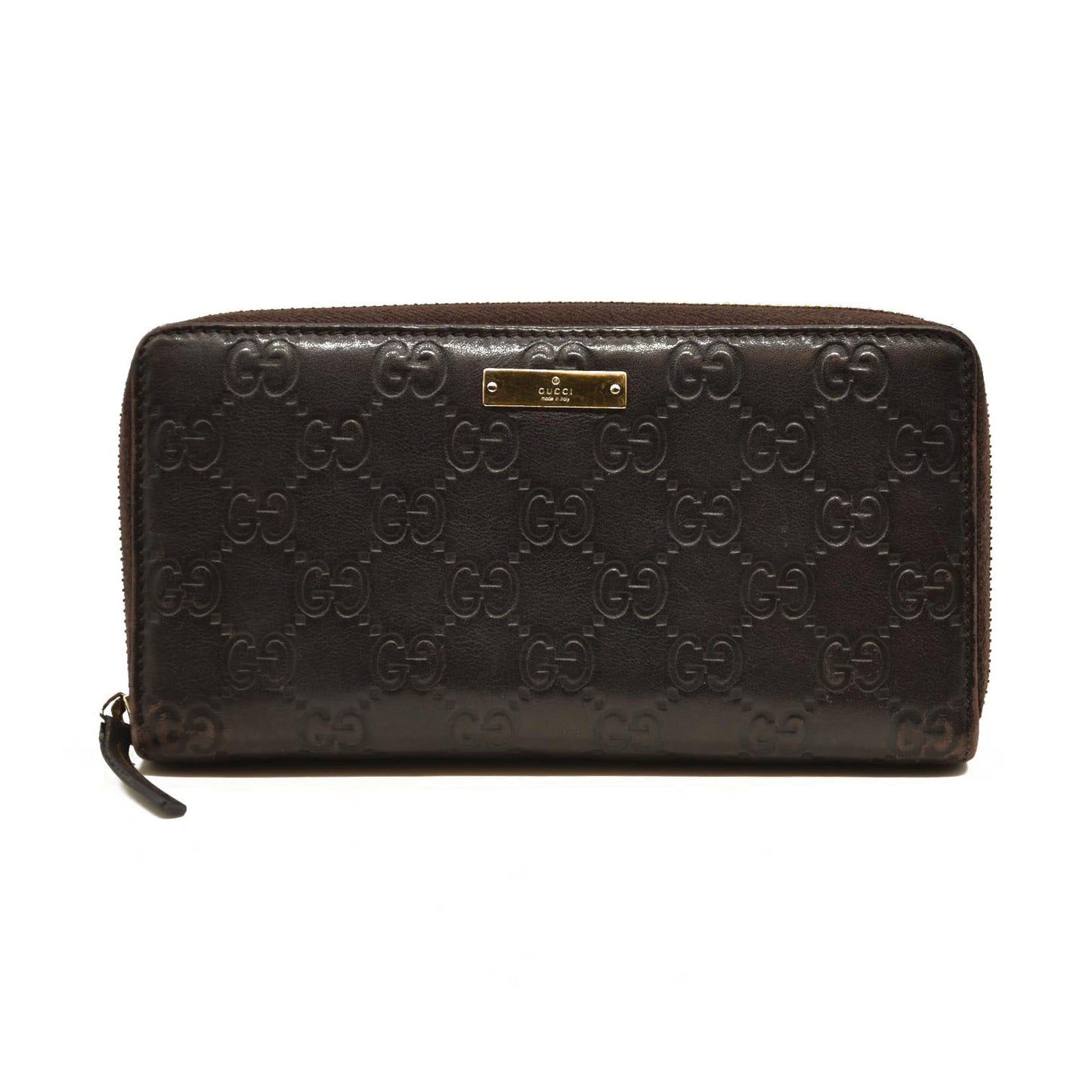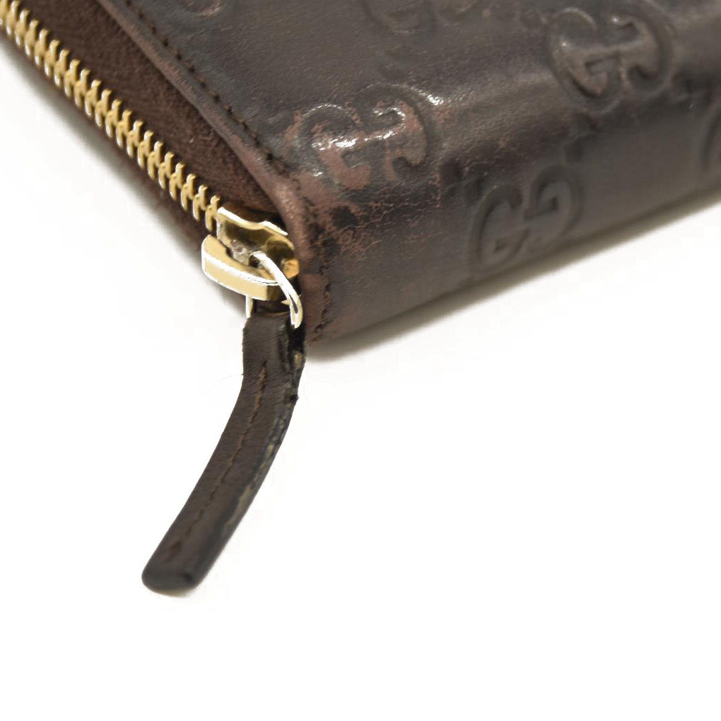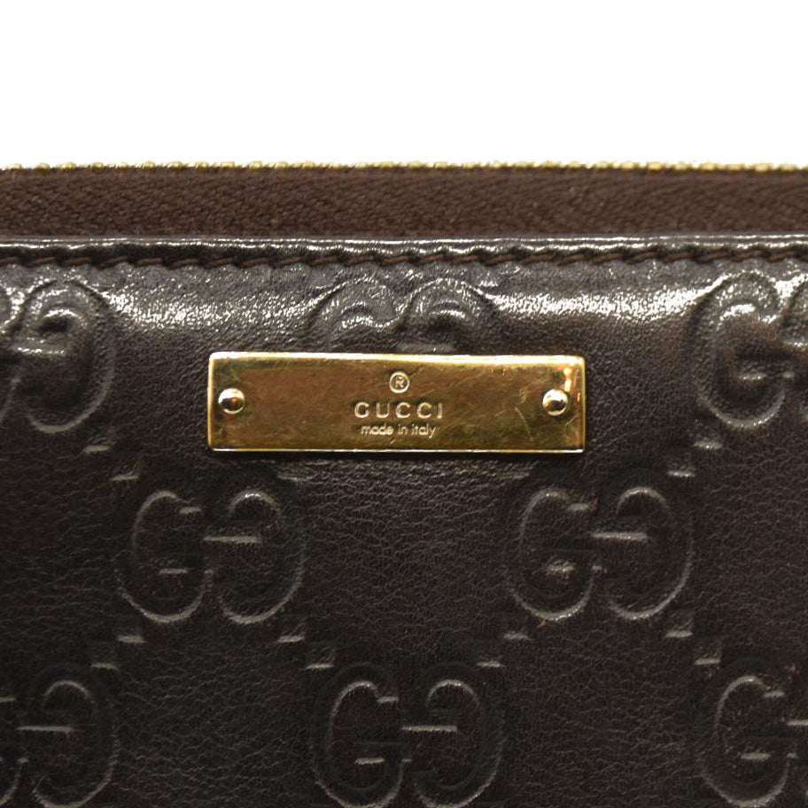 Gucci Guccissima Metal Bar Zip Around Organizer Wallet Brown