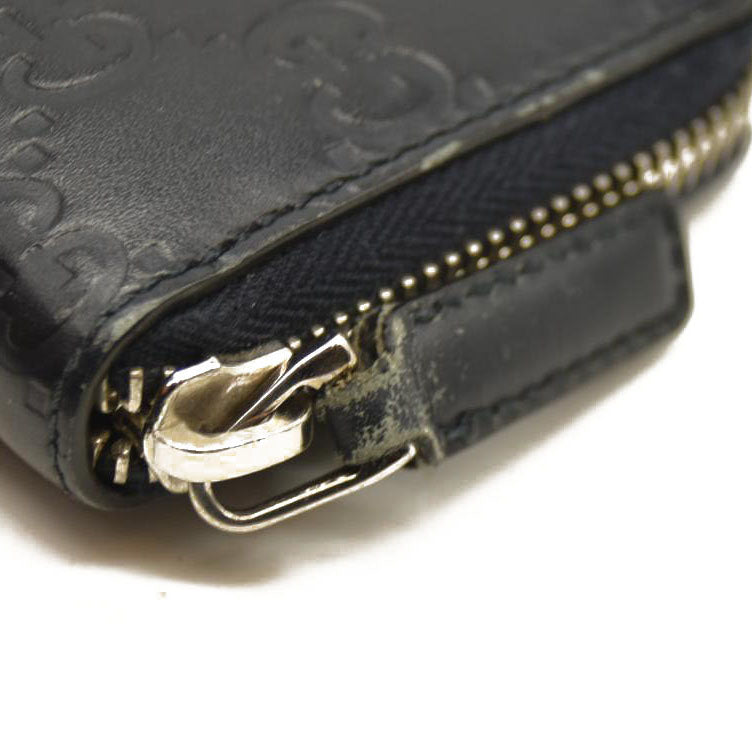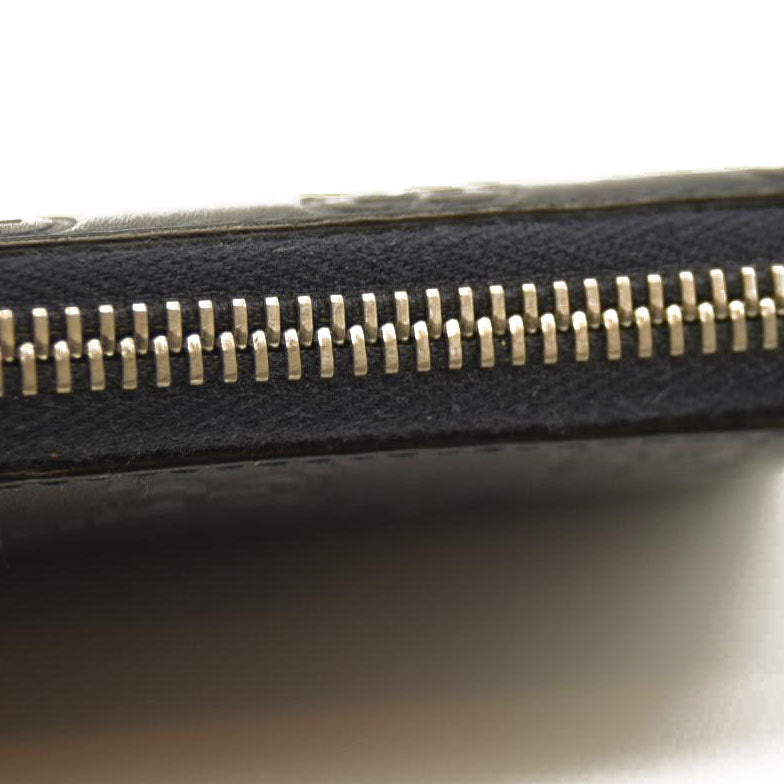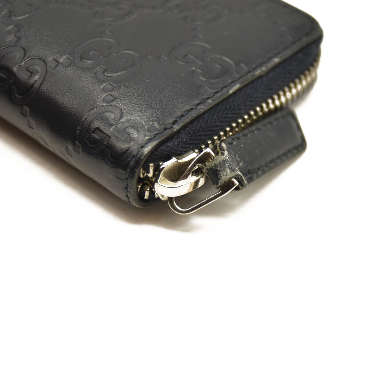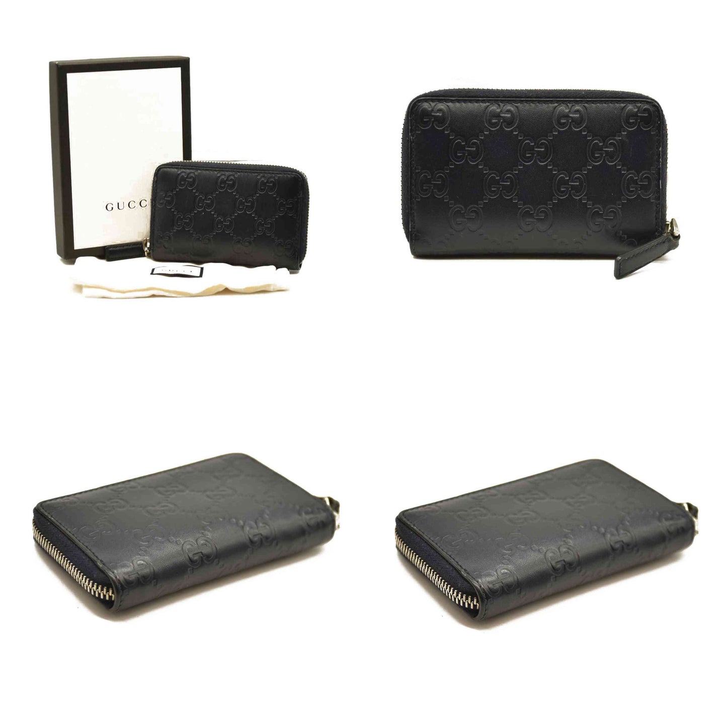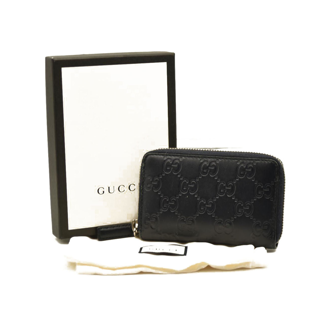 This is an authentic GUCCI Guccissima Zip Around Card Case in Black. This stylish coin purse is crafted of black Gucci monogram embossed leather. The case has a polished silver 3/4 wrap-around zipper opening to a partitioned black leather interior.