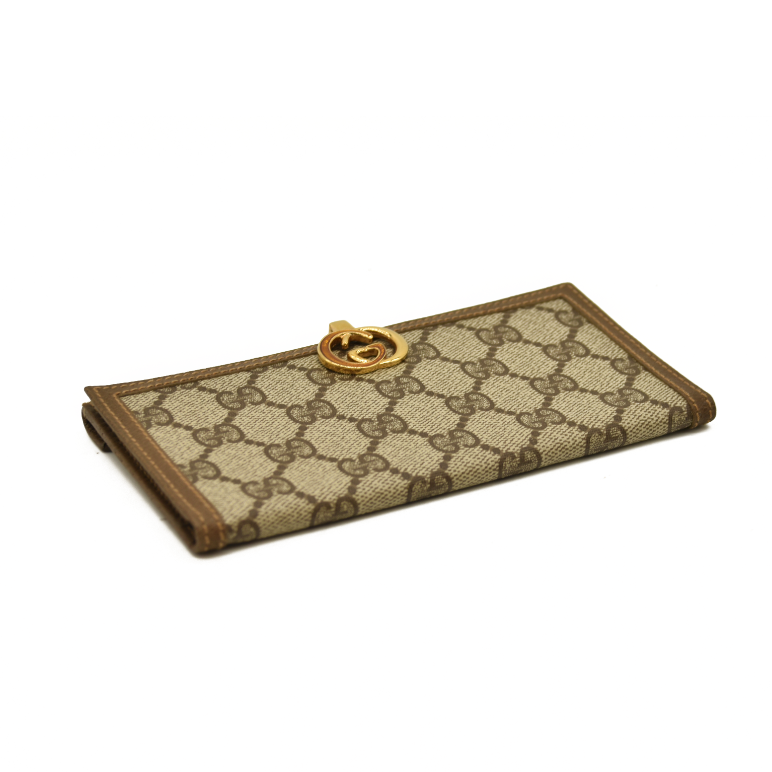 GUCCI Interlocking G GG Logo PVC Long Bifold Wallet Beige Green