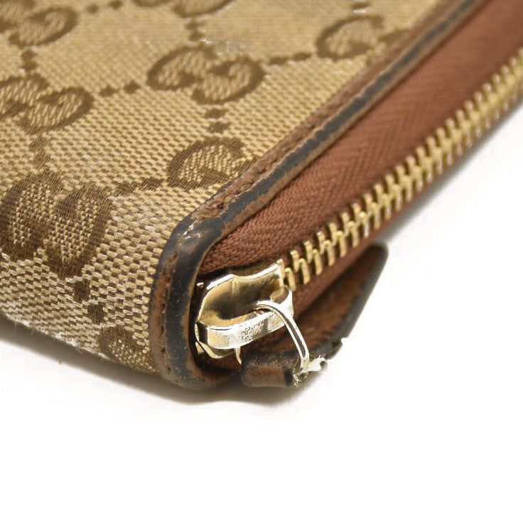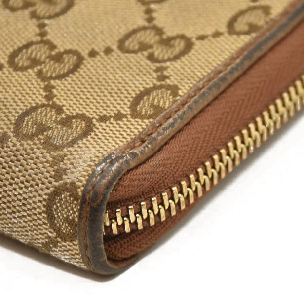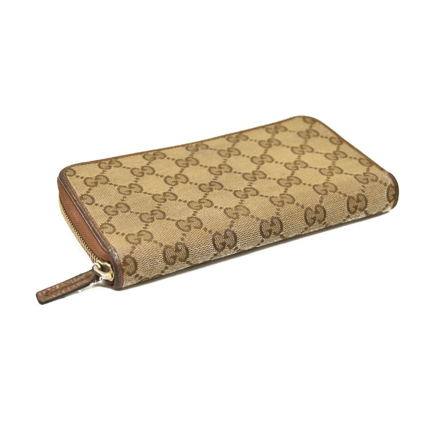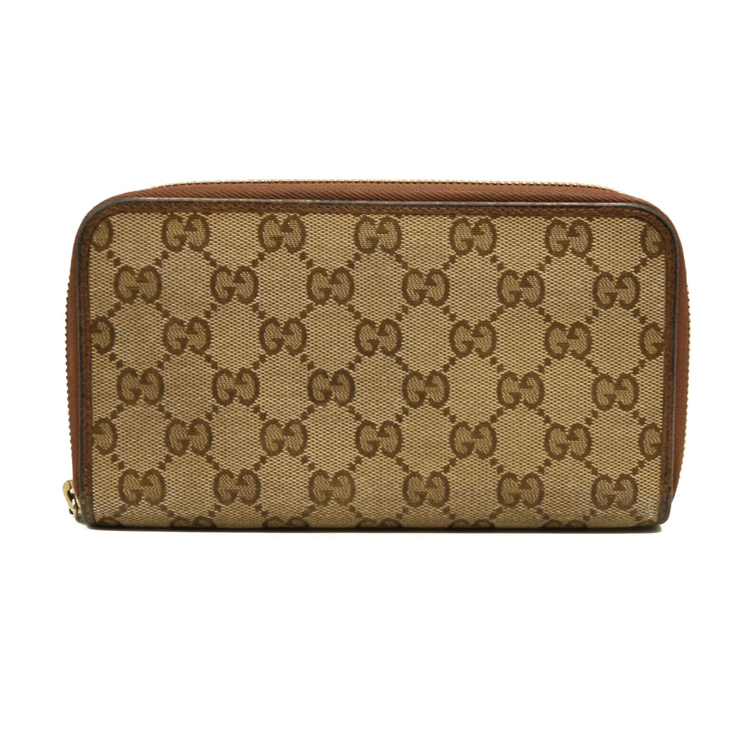 Gucci Monogram Dollar Calfskin Zip Around Wallet Beige Ebony Tabacco