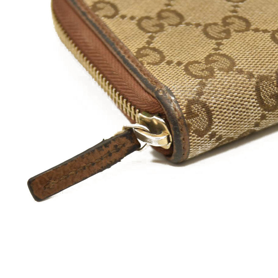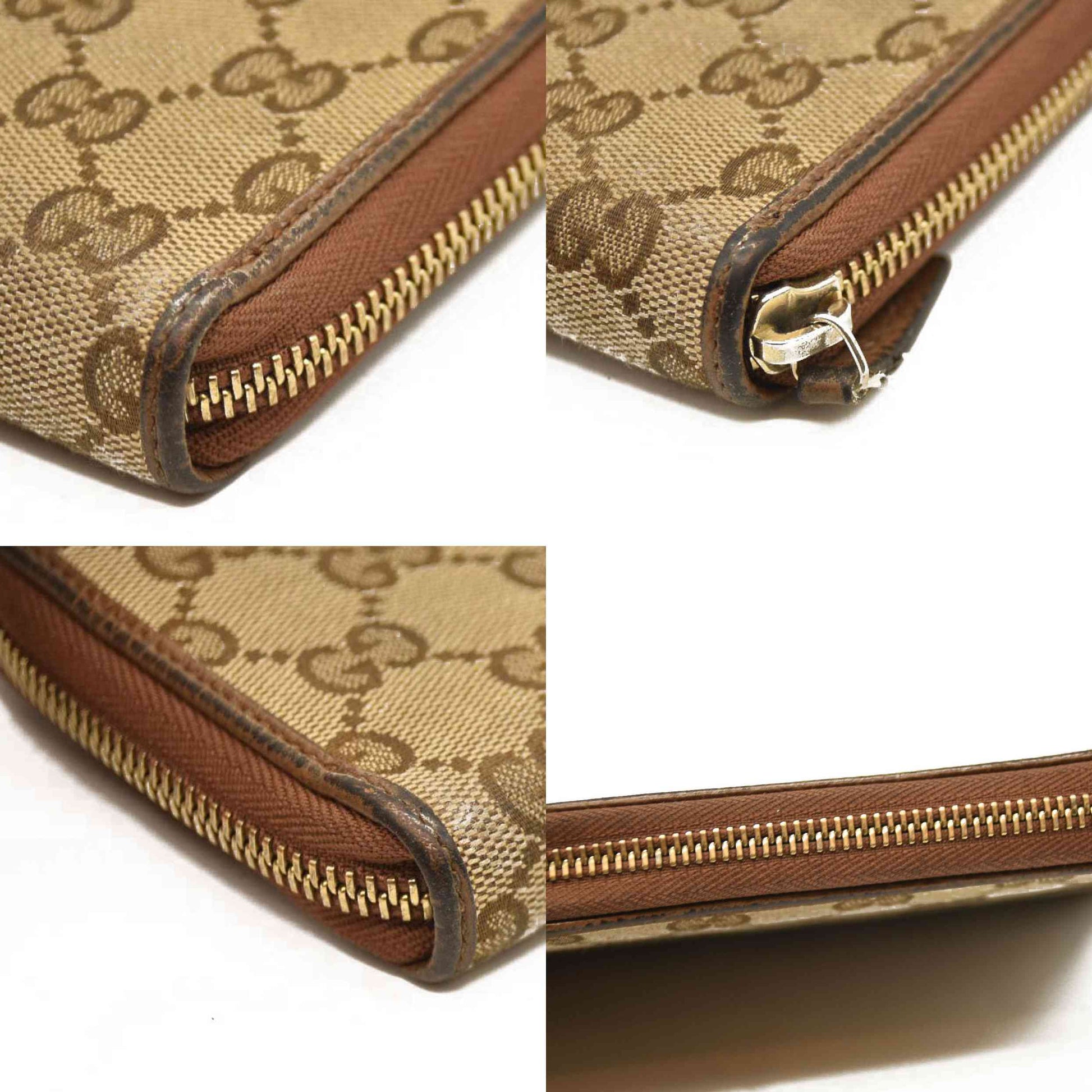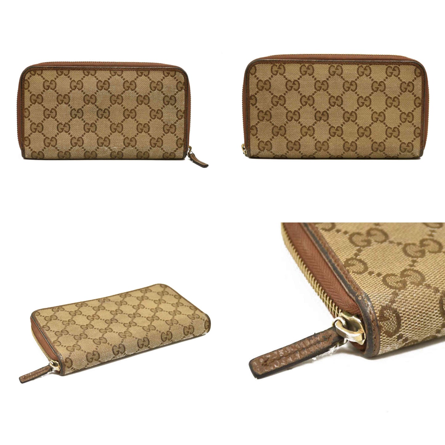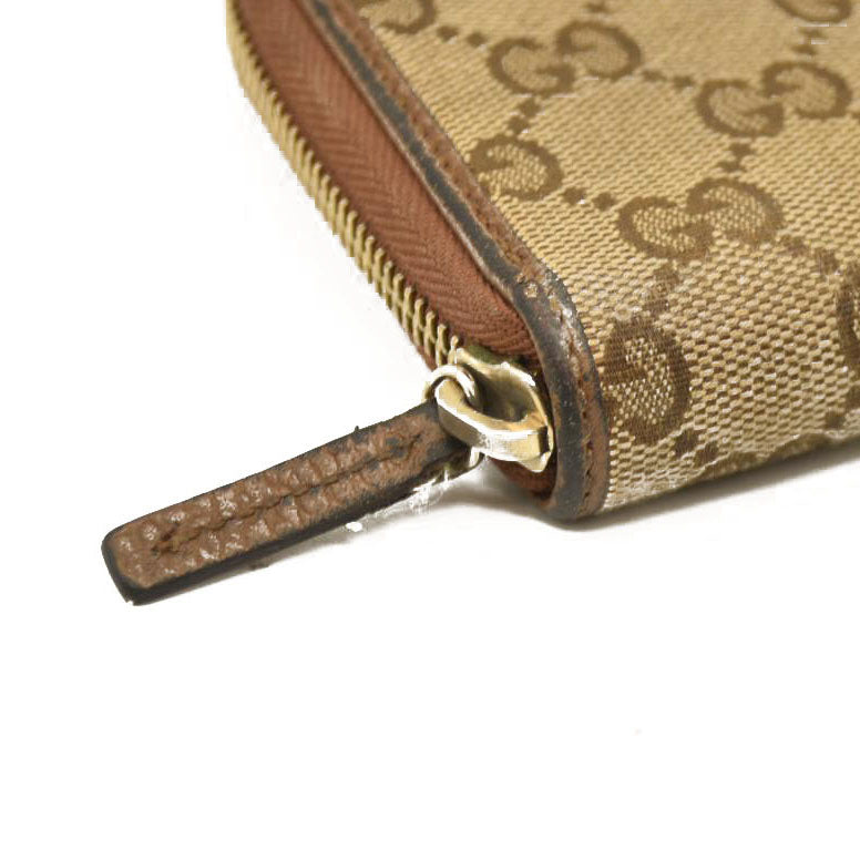 Gucci Monogram Dollar Calfskin Zip Around Wallet Beige Ebony Tabacco