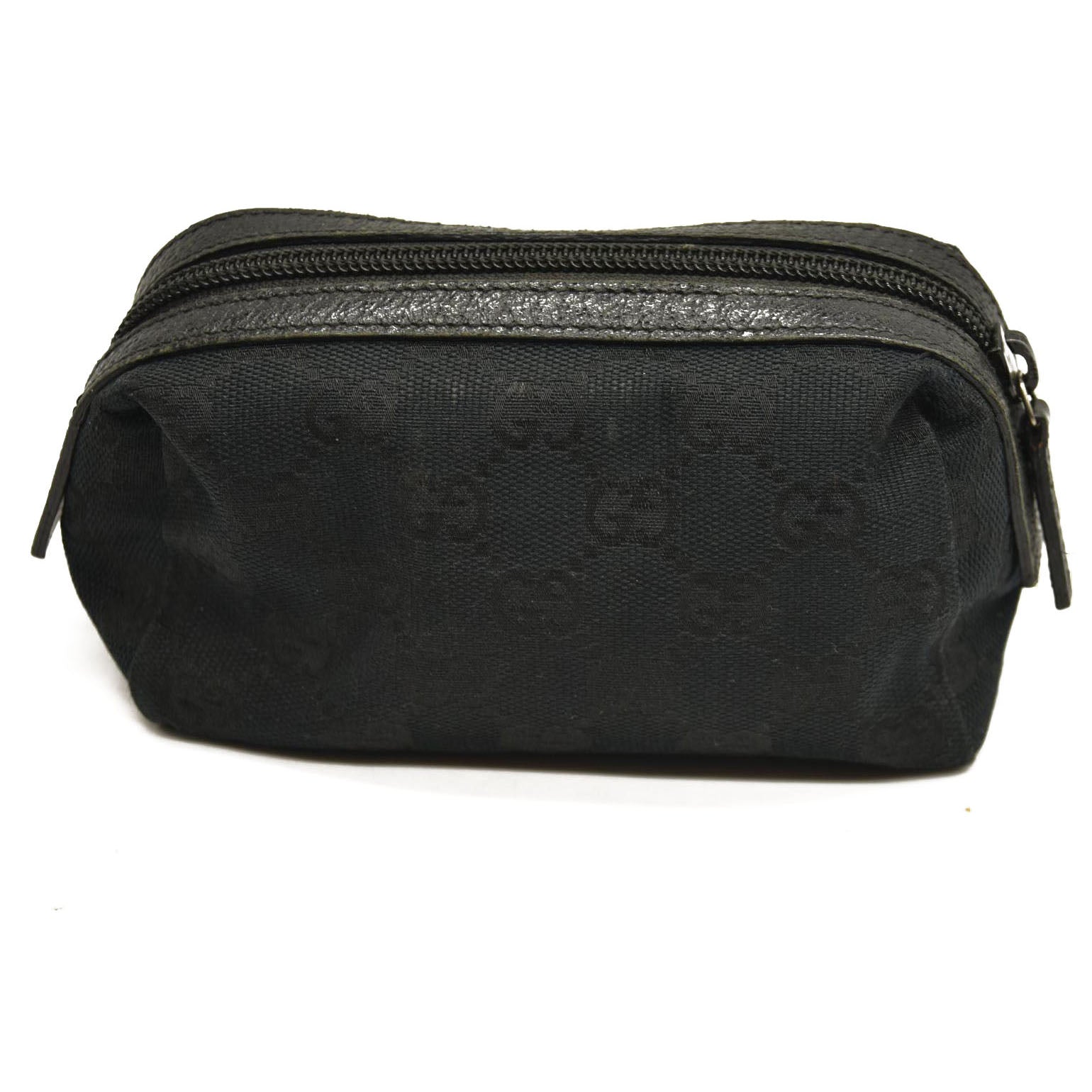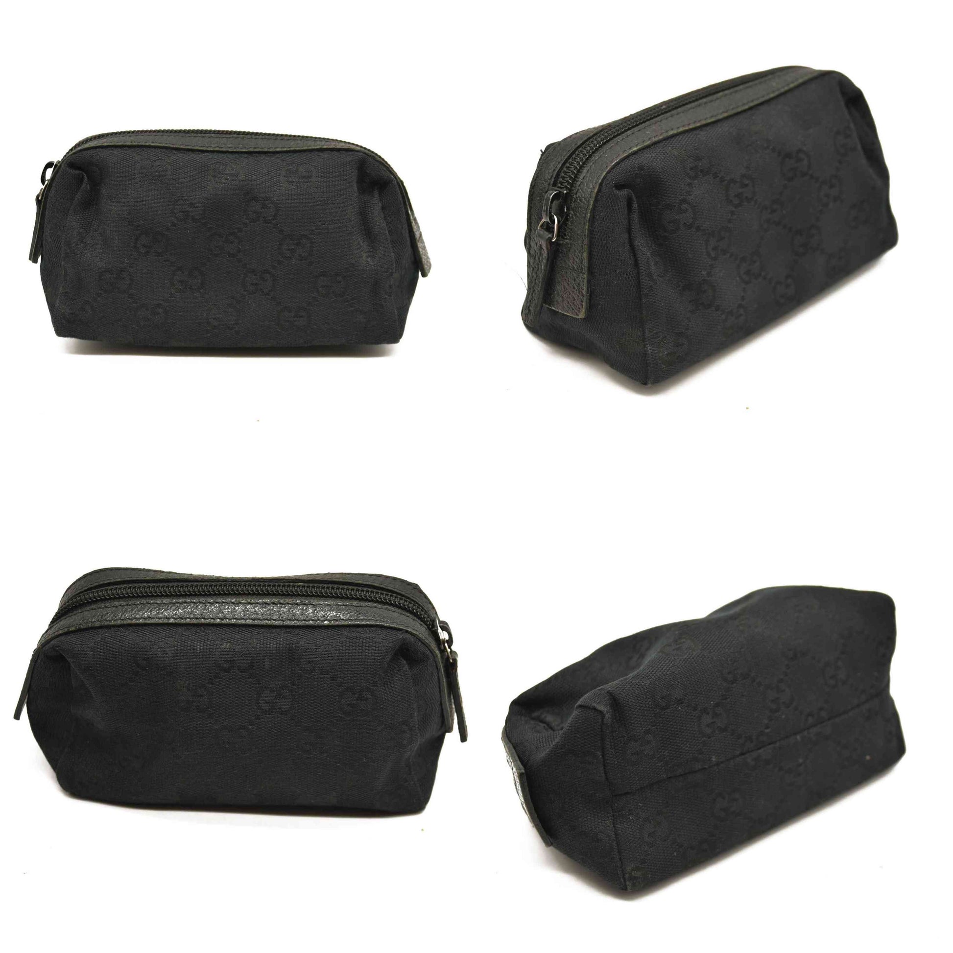 This is an authentic GUCCI Monogram Large Cosmetic Case in Black. This chic pochette is crafted of Gucci GG monogram canvas. The bag features a wrap-around zipper lined with black leather that opens to a black nylon fabric interior for accessories and cosmetics with the sophisticated style of Gucci!