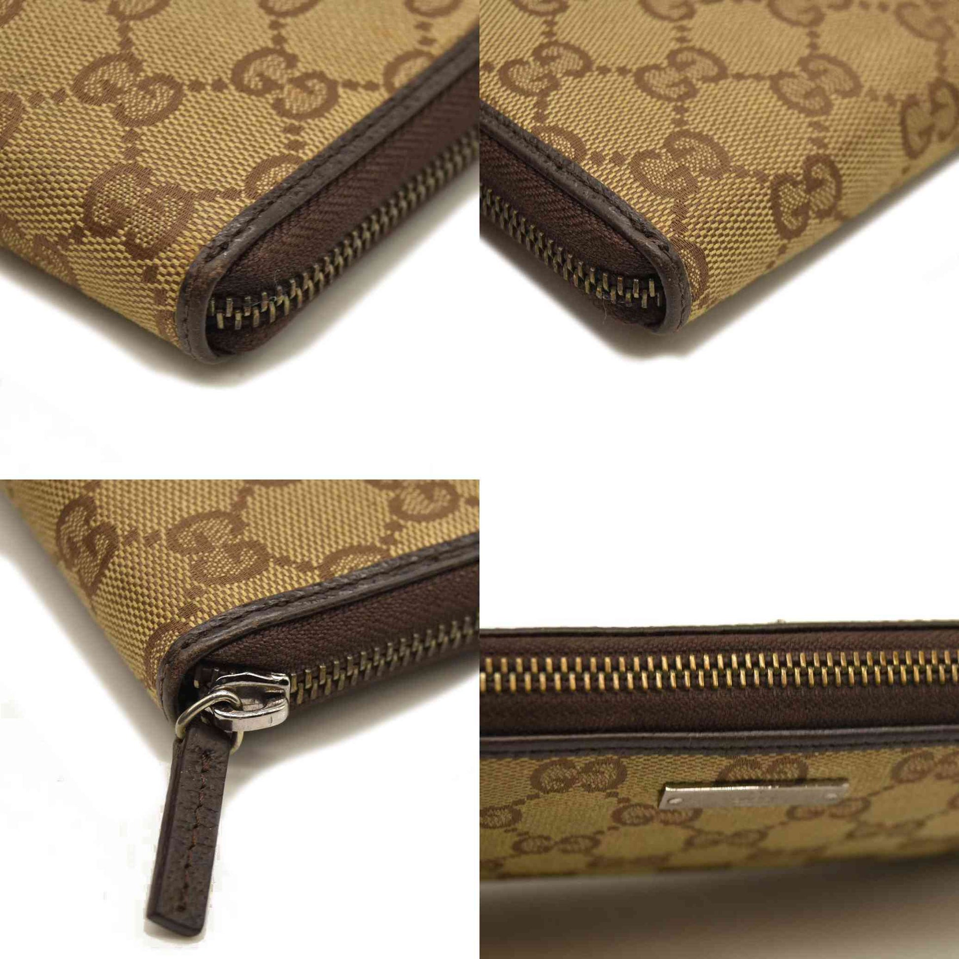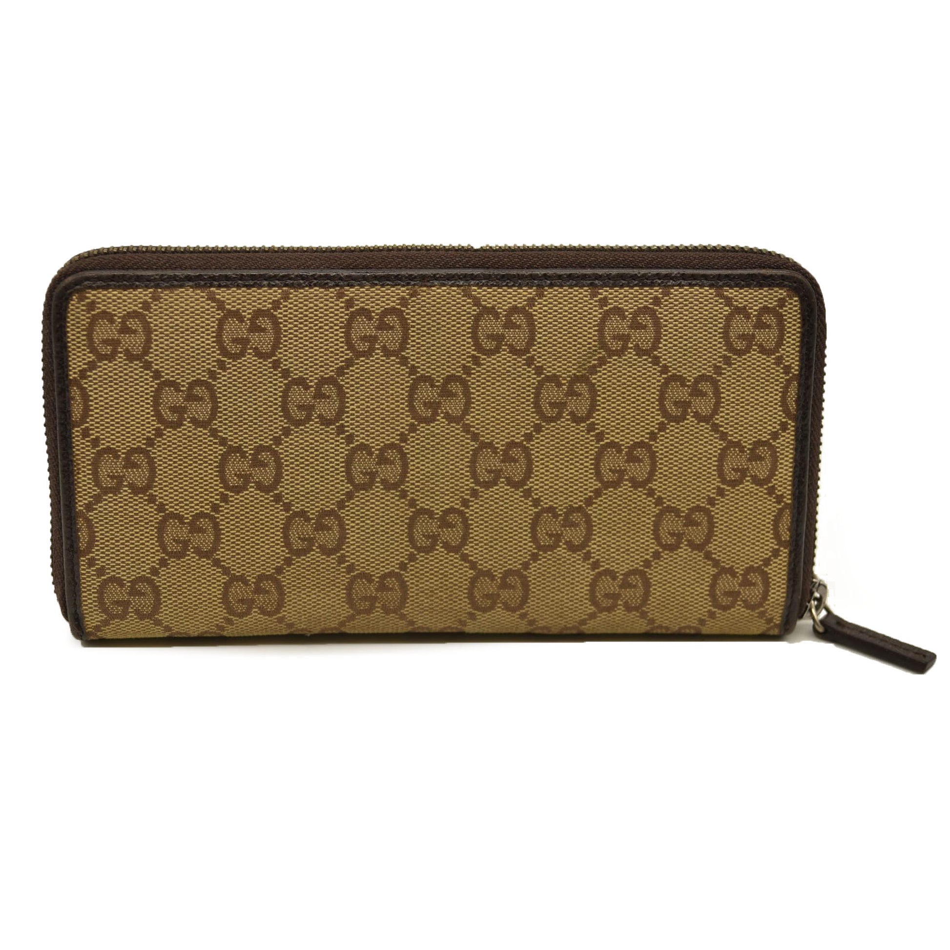 Gucci Monogram Metal Bar Zip Around Wallet Dark Brown