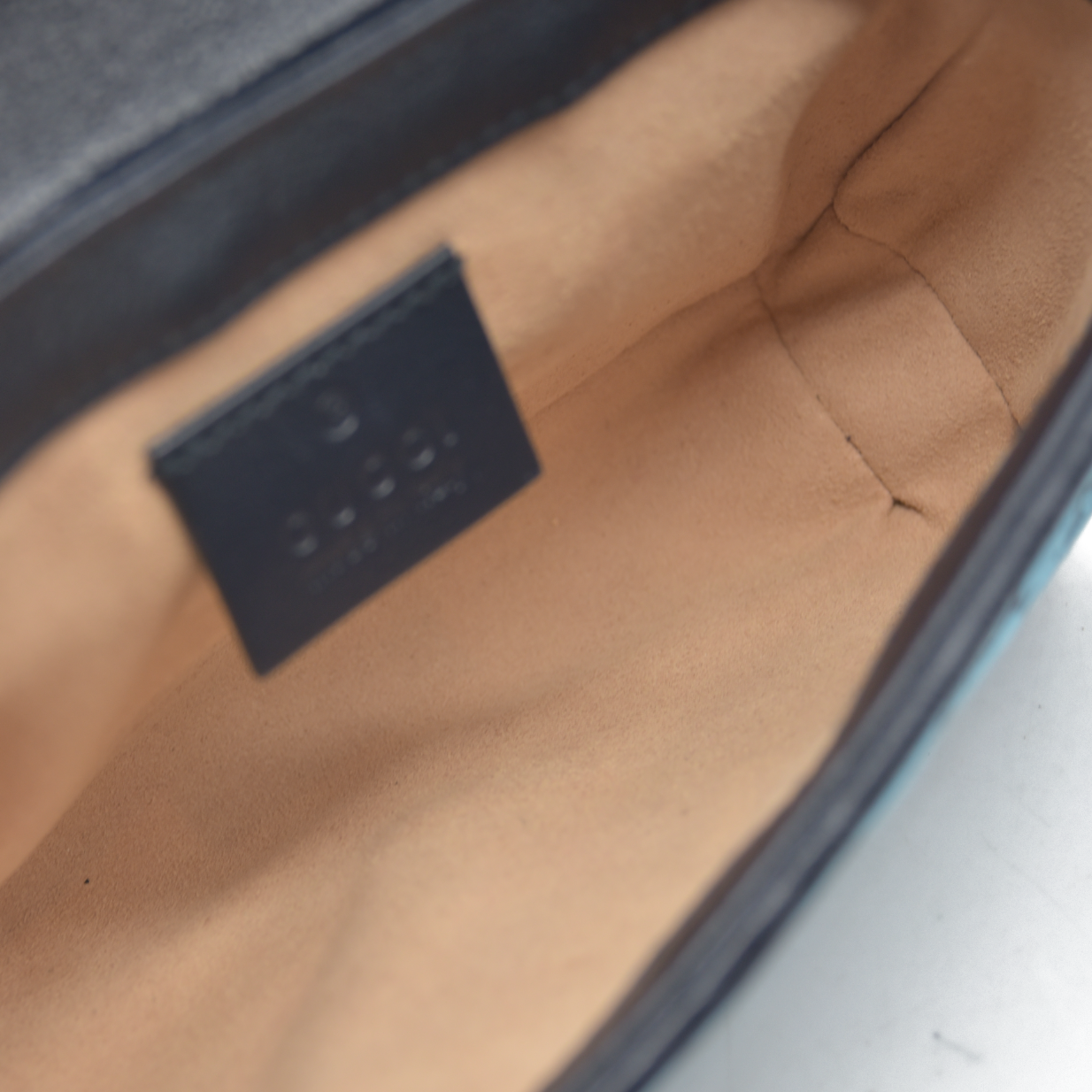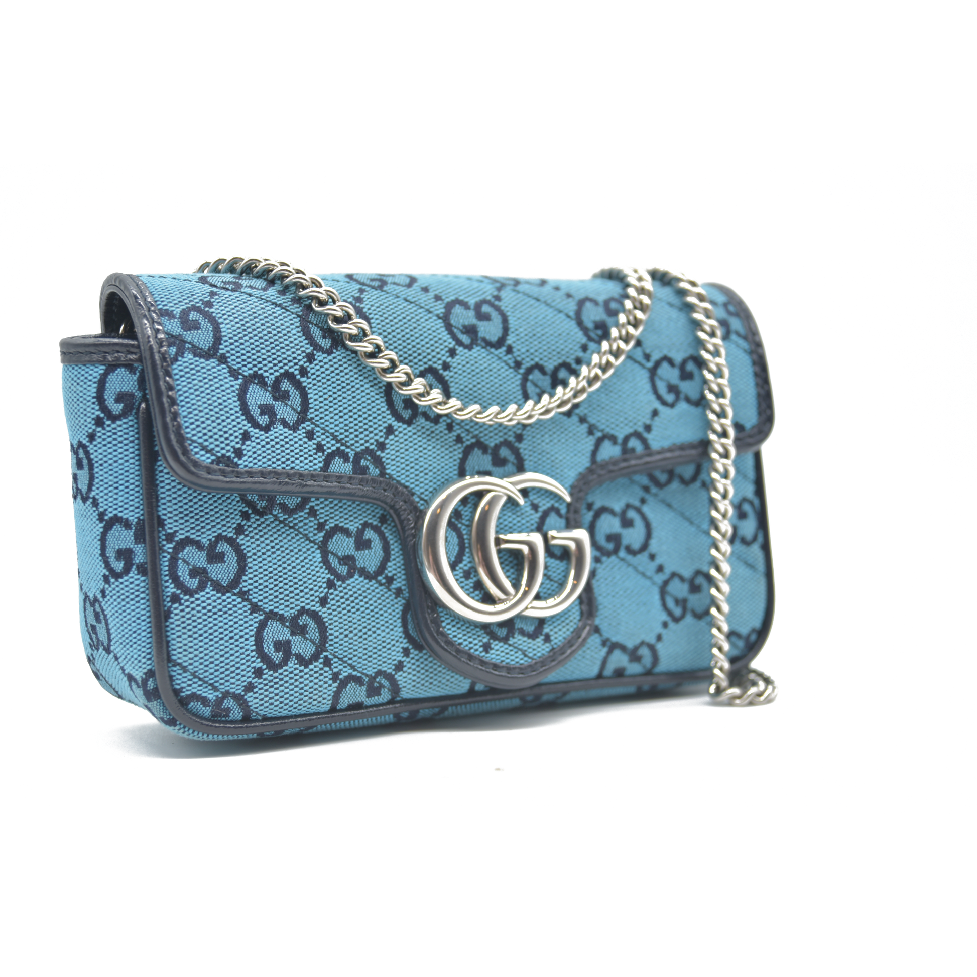 Gucci Monogram Multicolor Matelasse Diagonal Super Mini GG Marmont Shoulder Bag Light Blue