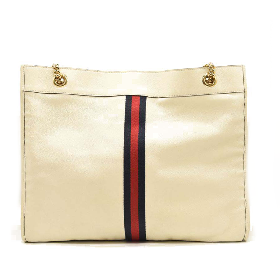 GUCCI Suede Calfskin Large Rajah Chain Tote White