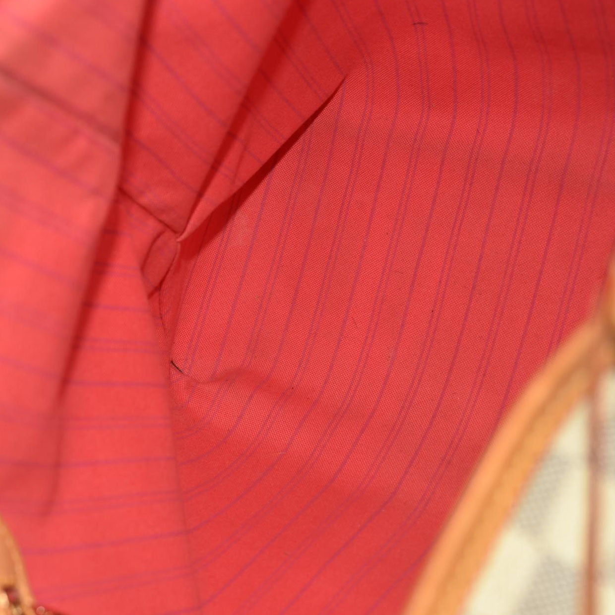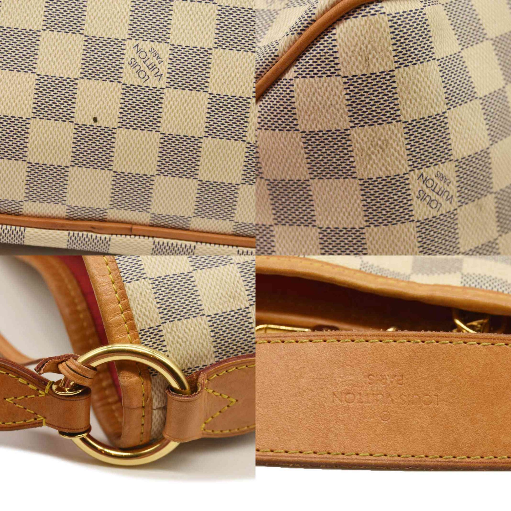 This is an authentic LOUIS VUITTON Damier Azur Delightful MM Pink. This stylish shoulder bag is crafted of classic Louis Vuitton checkerboard coated canvas in blue and white with vachetta leather trim. The bag features a flat vachetta cowhide leather shoulder strap and gold-toned hardware. The top is open to a pink striped fabric interior with a zipper pocket.