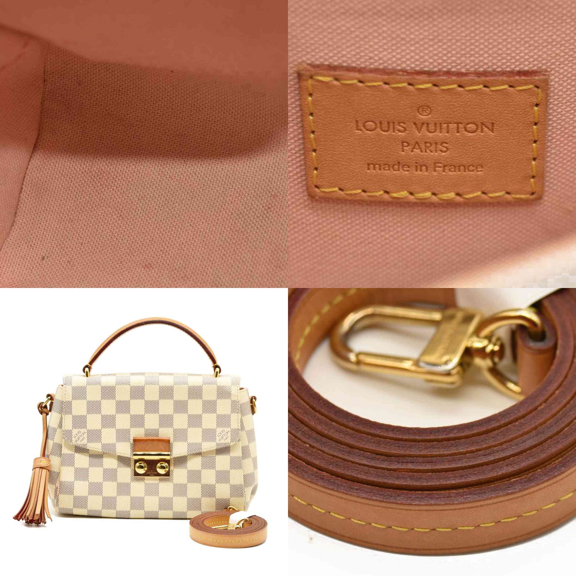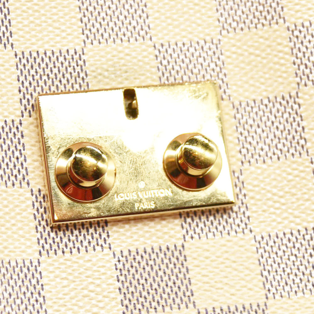 This is an authentic LOUIS VUITTON Damier Azur Croisette. This new model of this stylish hand bag is crafted of Louis Vuitton signature damier canvas in azur blue. The bag features a vachetta cowhide leather top handle, a detachable shoulder strap and gold hardware. The flap opens to a pink fabric interior with a flat pocket. This is a marvelous shoulder bag, ideal for everyday conveniences, from Louis Vuitton!
