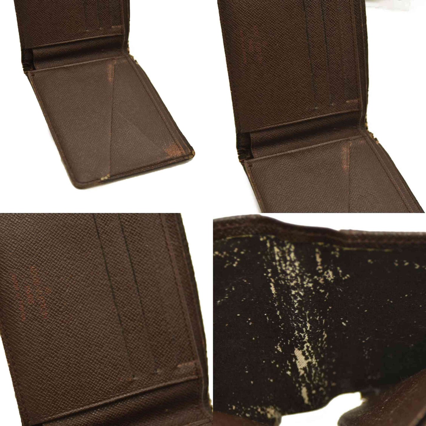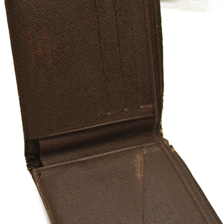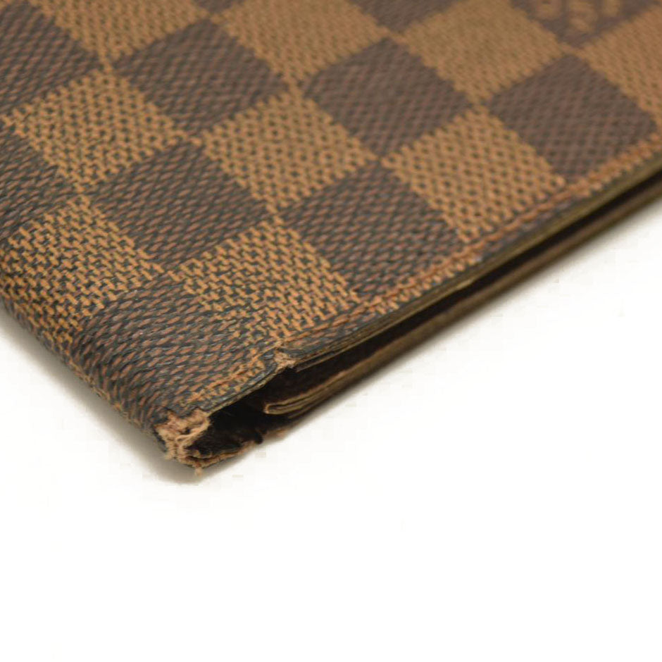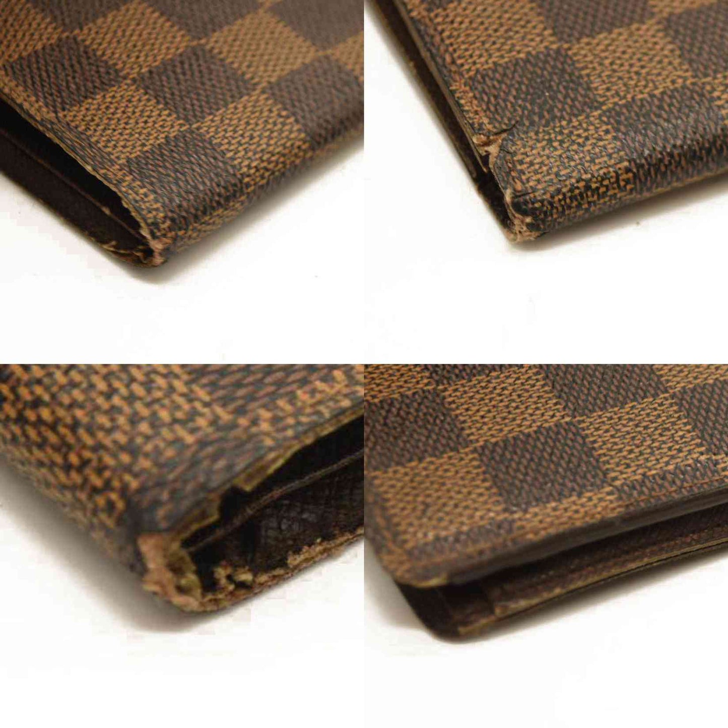 This is an authentic LOUIS VUITTON Damier Ebene Multiple Wallet. This stylish wallet is finely crafted of Louis Vuitton signature damier coated canvas. The wallet opens to a brown crossgrain leather interior with card slots, pockets, and a billfold.