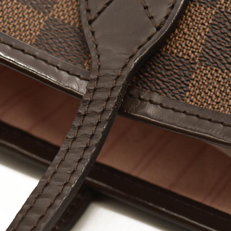 This is an authentic LOUIS VUITTON Damier Ebene Neverfull MM. This chic handbag is crafted of classic Louis Vuitton damier checkered canvas with chocolate brown cowhide leather top shoulder handles and trim. This bag opens to an interior of rouge red striped Louis Vuitton logo fabric with a zipper pocket. This is a wonderful tote that is ideal for all of your everyday needs with the special accent of luxury and style, from Louis Vuitton.