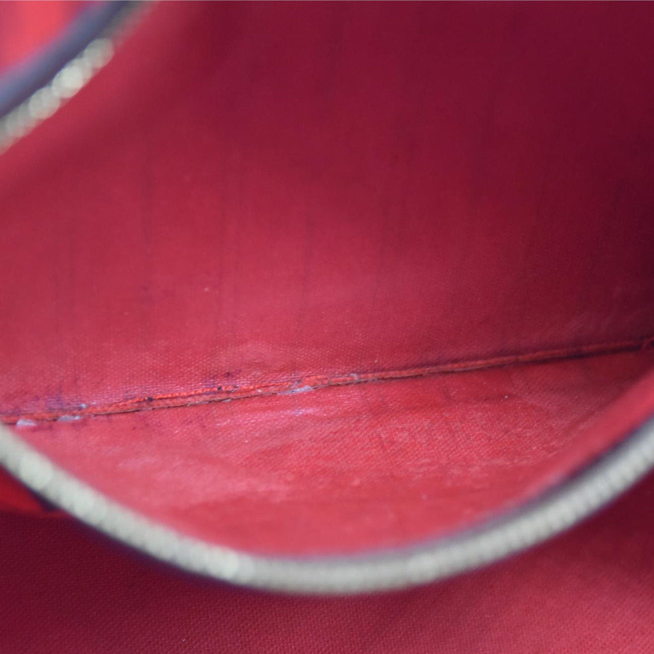 [Outside] overall : small scratches / lightly soiled / slight discoloration / slightly losing shape bottom : Noticeable corner wear, but no tears. handle : obvious rubbing / darkening / obvious cracks / peeling main opening : obvious rubbing and slightly torn / (The side clasp is split in two.) / metal coat peeling and partially rusted