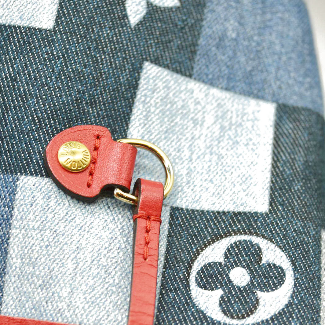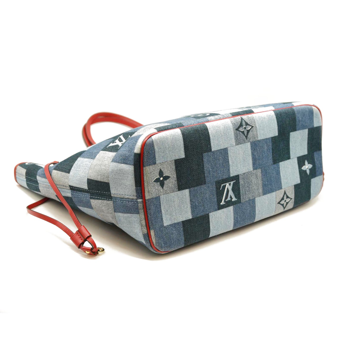 Louis Vuitton Denim Damier Monogram Patchwork Neverfull Blue Rouge MM4189