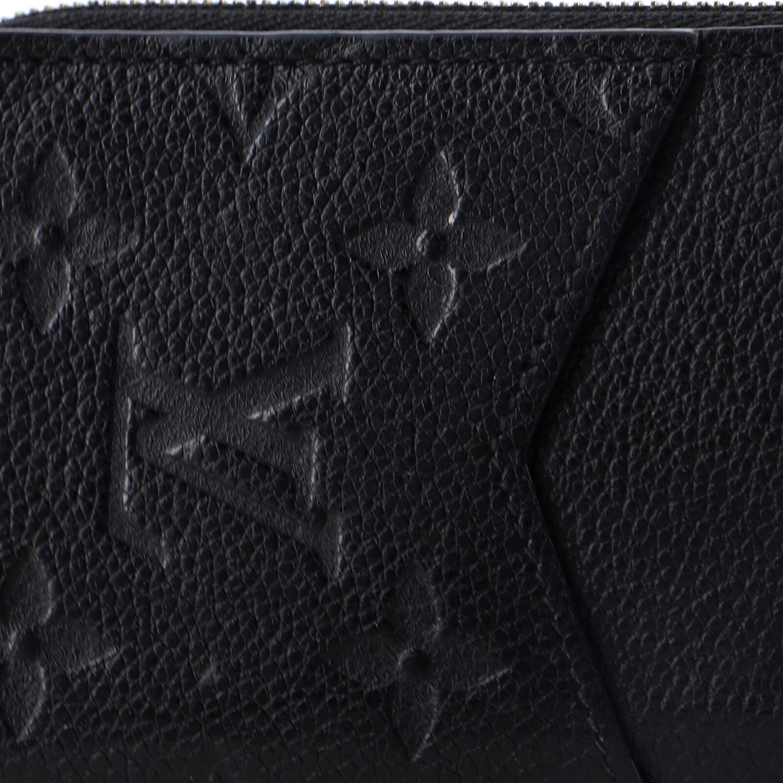This is an authentic LOUIS VUITTON Empreinte Recto Verso Card Holder in Black. This very chic cardholder is finely crafted of Louis Vuitton monogram-embossed leather in black. The case features a front envelope pocket, card slots on the back, and a zipper currency compartment with a key ring clasp.