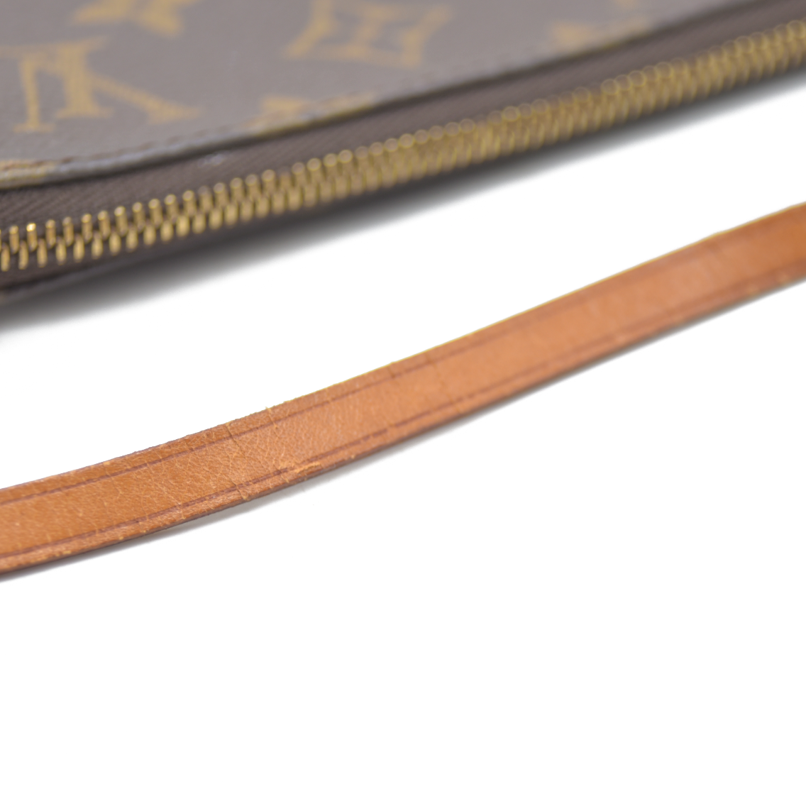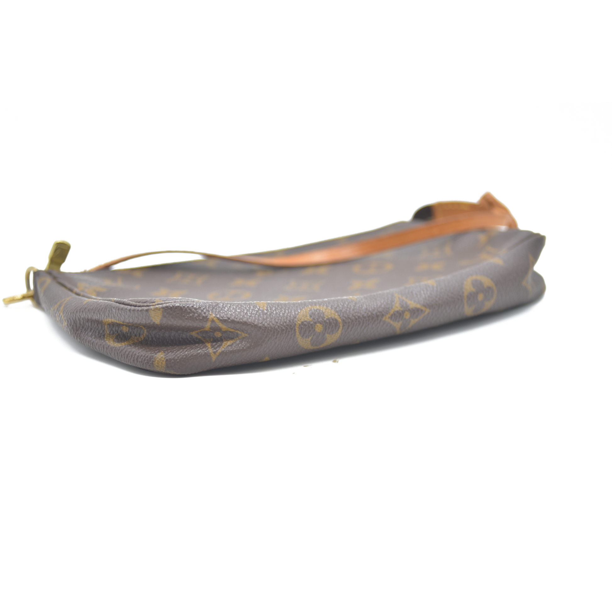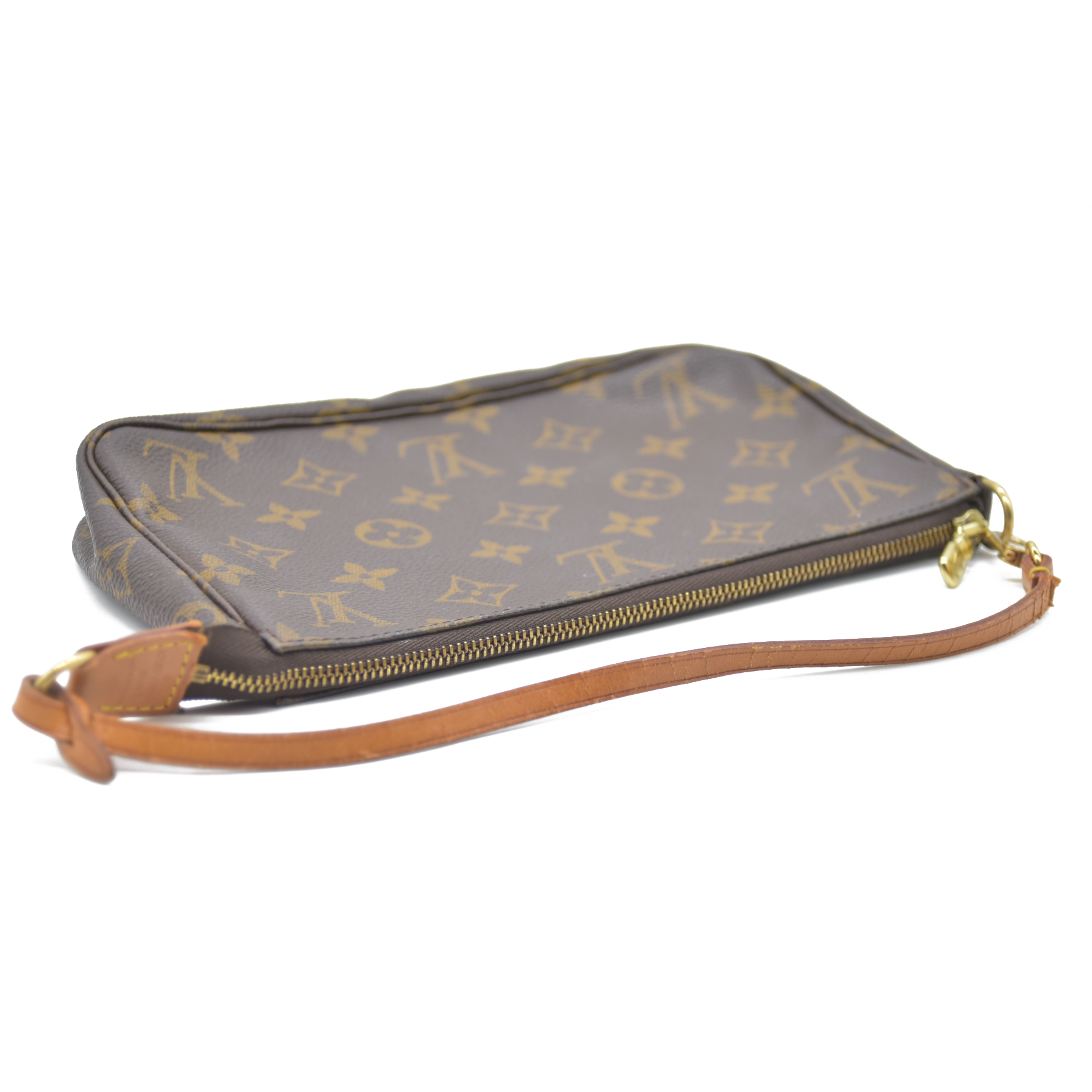 This is an authentic Louis Vuitton Pochette Accessoires in Brown Monogram Canvas. Crafted from the iconic monogram coated canvas with natural Vachetta leather trim, this timeless pouch features a gold-tone top zipper and a detachable leather strap for shoulder or clutch wear. The interior is lined in textile and offers just enough room for your daily must-haves.