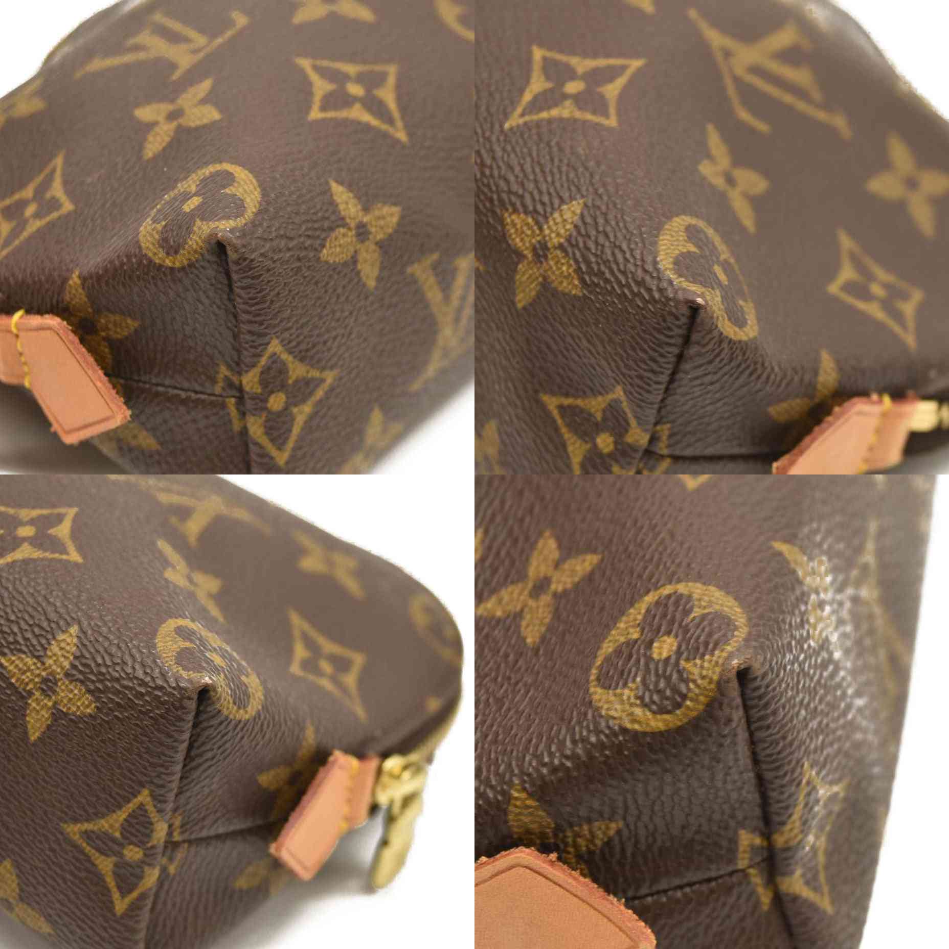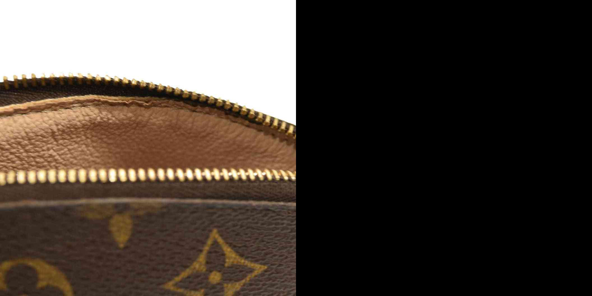This is an authentic LOUIS VUITTON Monogram Cosmetic Pouch. This stylish pouch is crafted of classic Louis Vuitton monogram coated toile canvas in brown with vachetta leather tabs. The bag features a polished gold-toned top zipper that opens to a beige leather-like interior with a patch pocket.