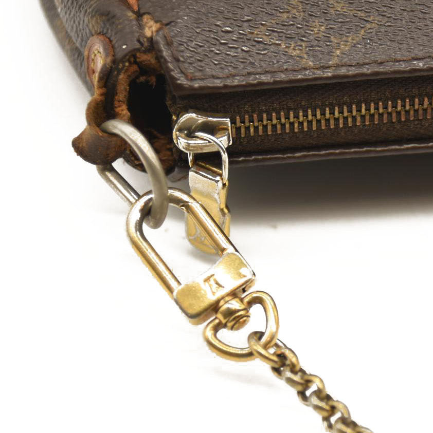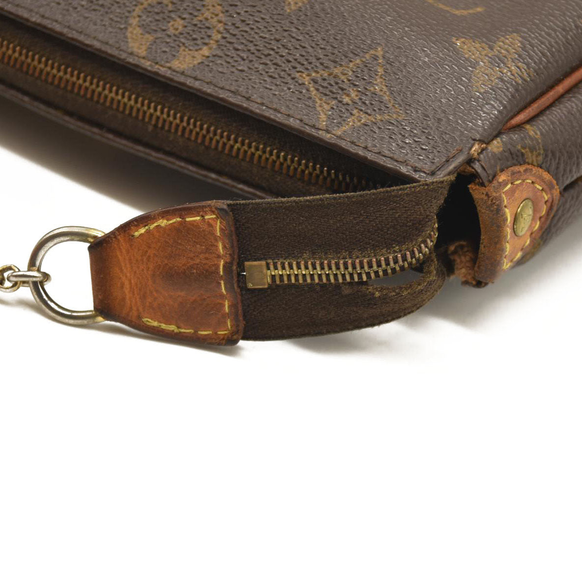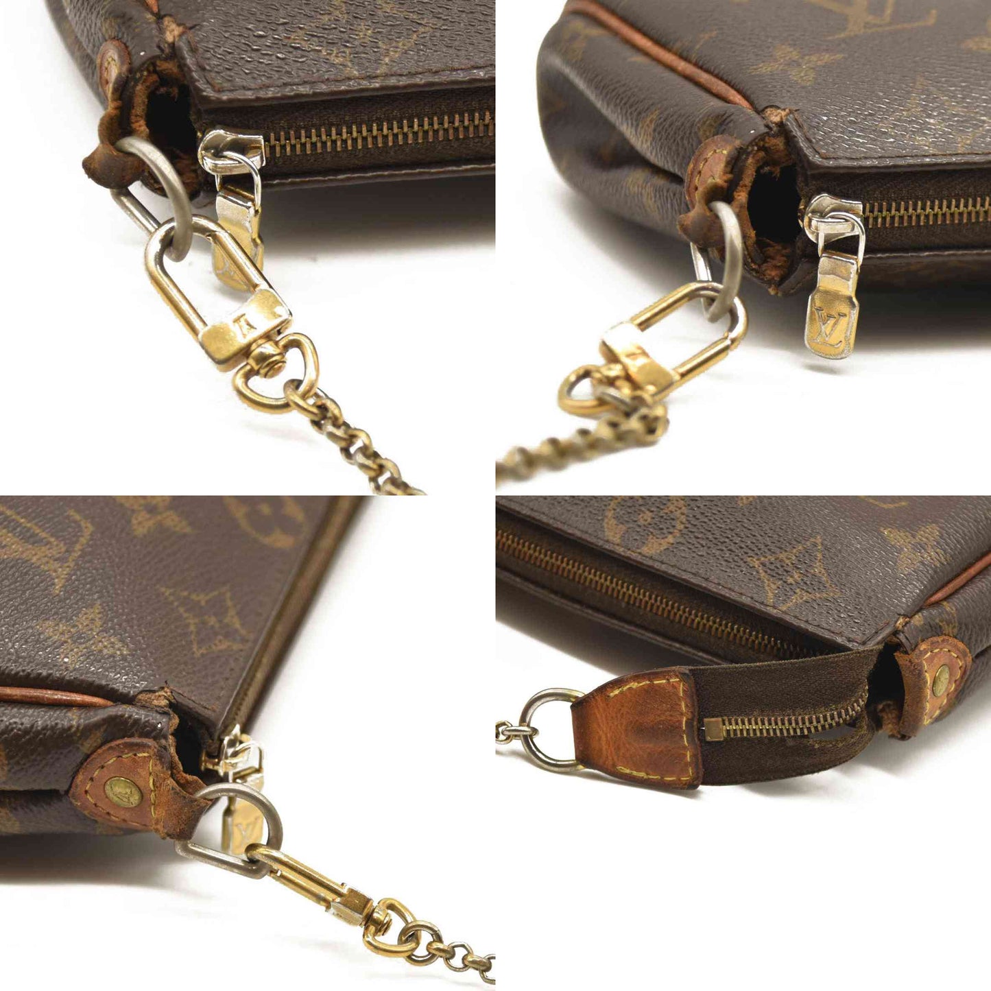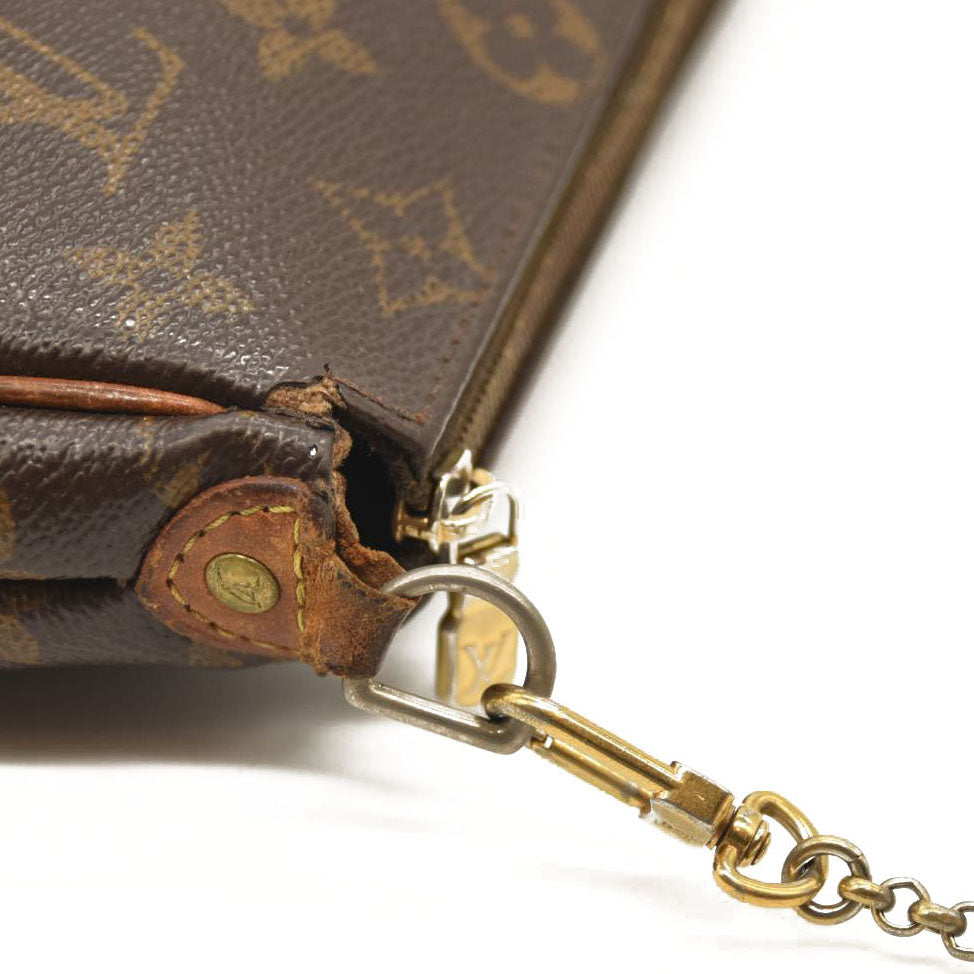 This is an authentic LOUIS VUITTON Monogram Eva Clutch. This stylish shoulder bag is crafted of classic Louis Vuitton monogram on coated canvas. The bag features an elegant polished brass chain link wristlet, vachetta cowhide leather trim, and an optional matching shoulder strap with polished brass hardware. The top zipper opens to a compact cocoa brown fabric interior. This is a versatile clutch, ideal for day or evening wear, with the luxury and style only from Louis Vuitton!