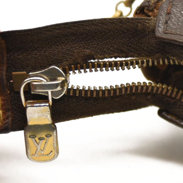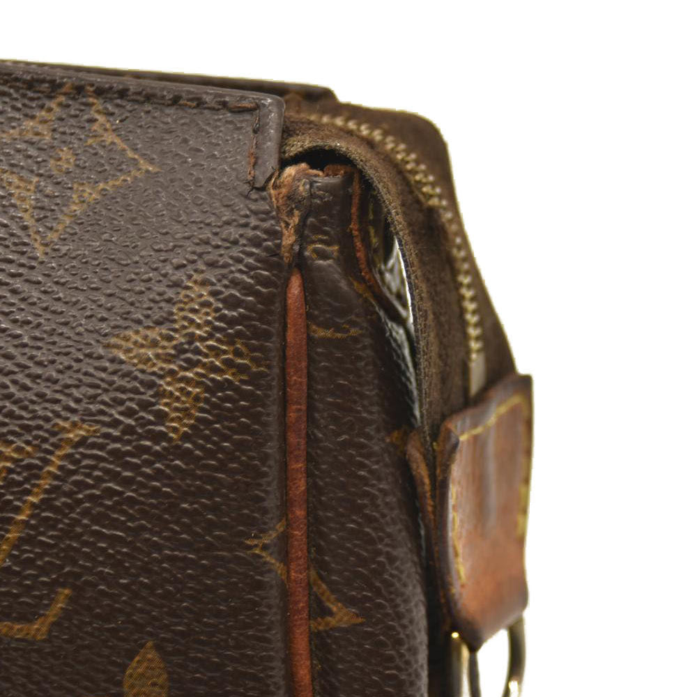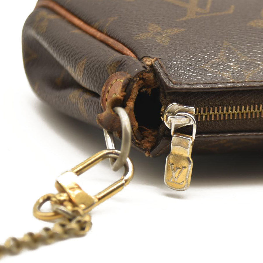 Exterior: Corner wear, loose shape, rubs, partial tear, patina of vachetta, stains on leather parts, scuffs on leather parts, tear in zipper tape