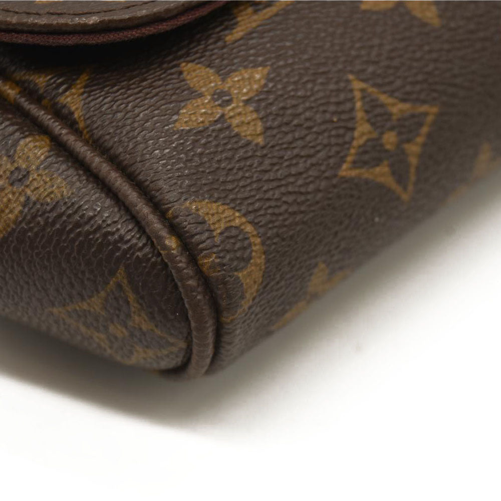 This is an authentic OUIS VUITTON Monogram Favorite MM. This stylish wrist bag is crafted of Louis Vuitton monogram coated canvas. The bag features a short gold chain end to end wrist strap and a cross over flap. This opens to a plum fabric interior. This is an excellent baguette, ideal for everyday essentials, from Louis Vuitton!