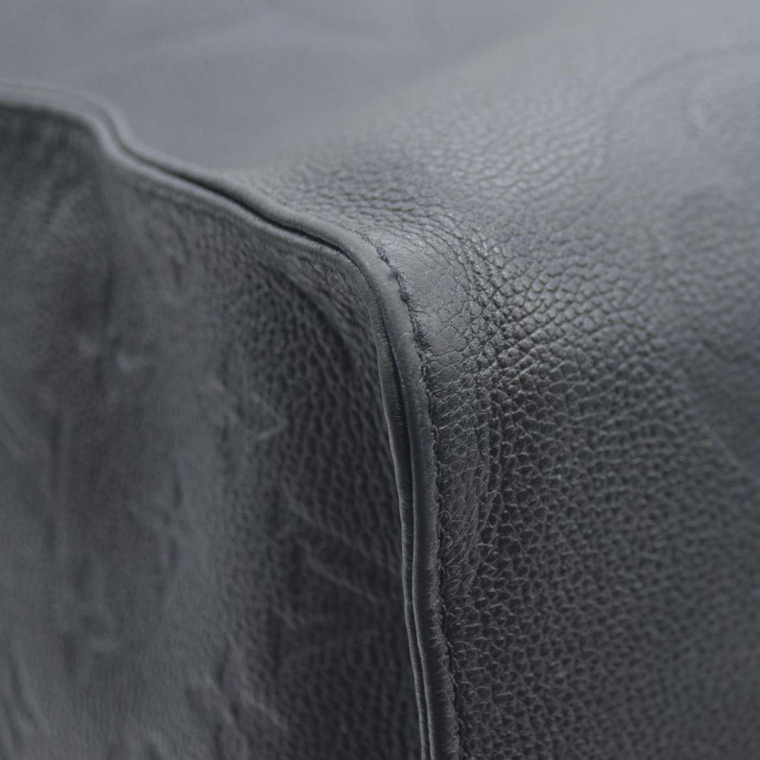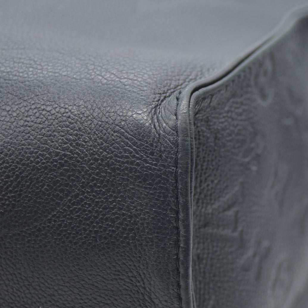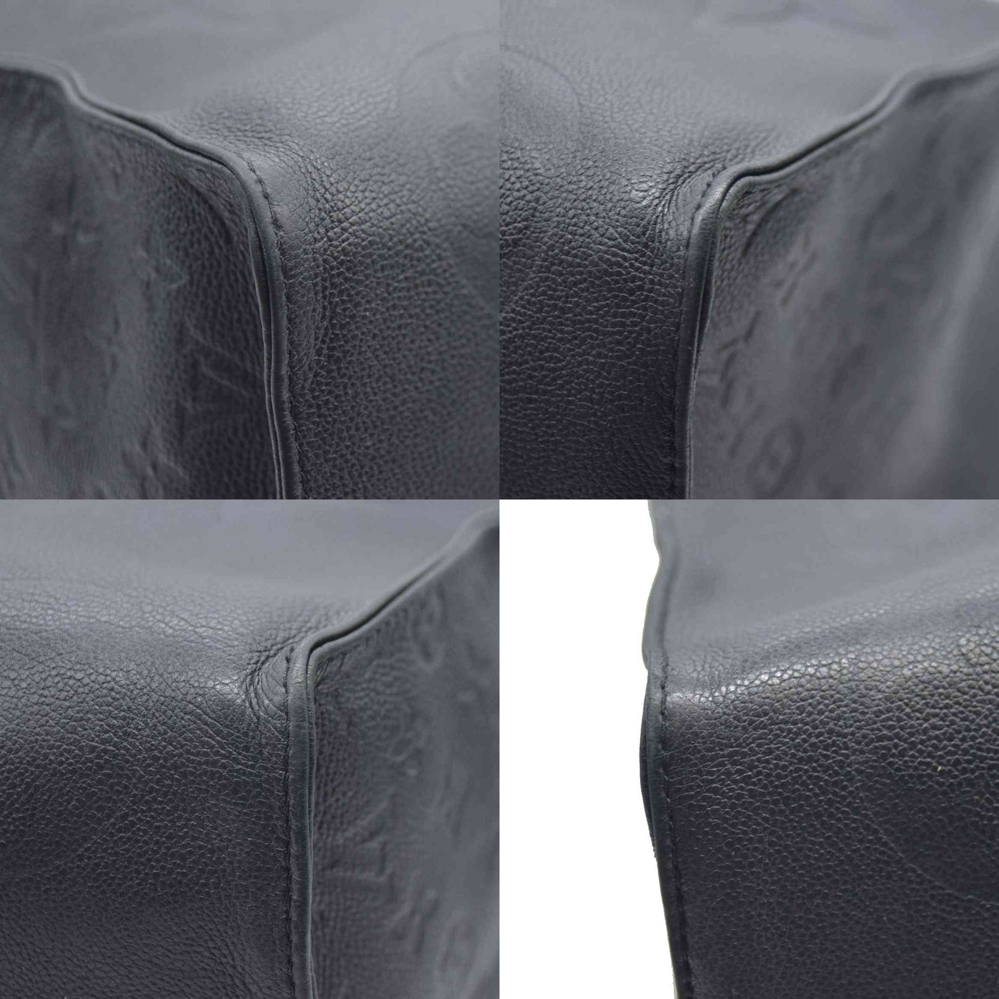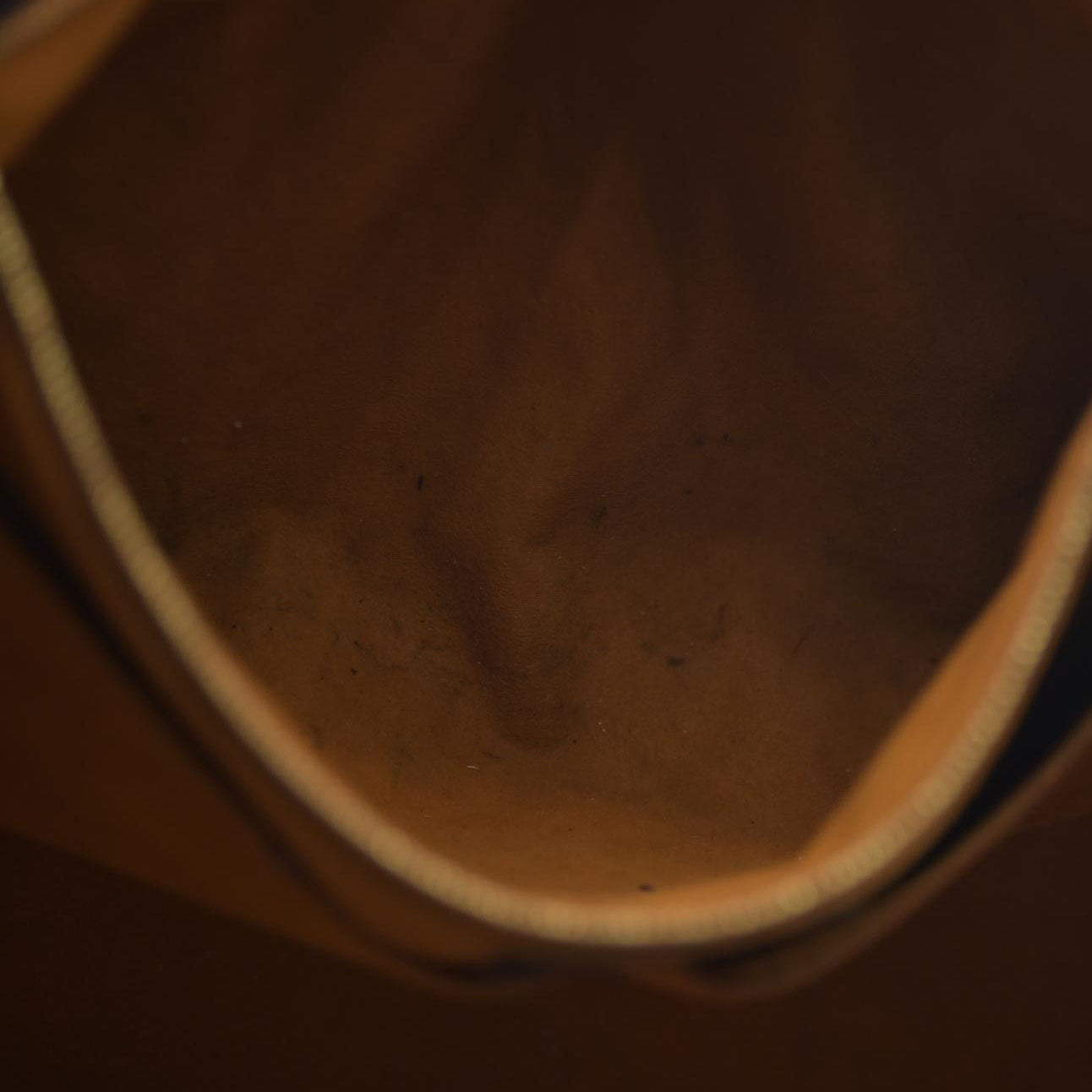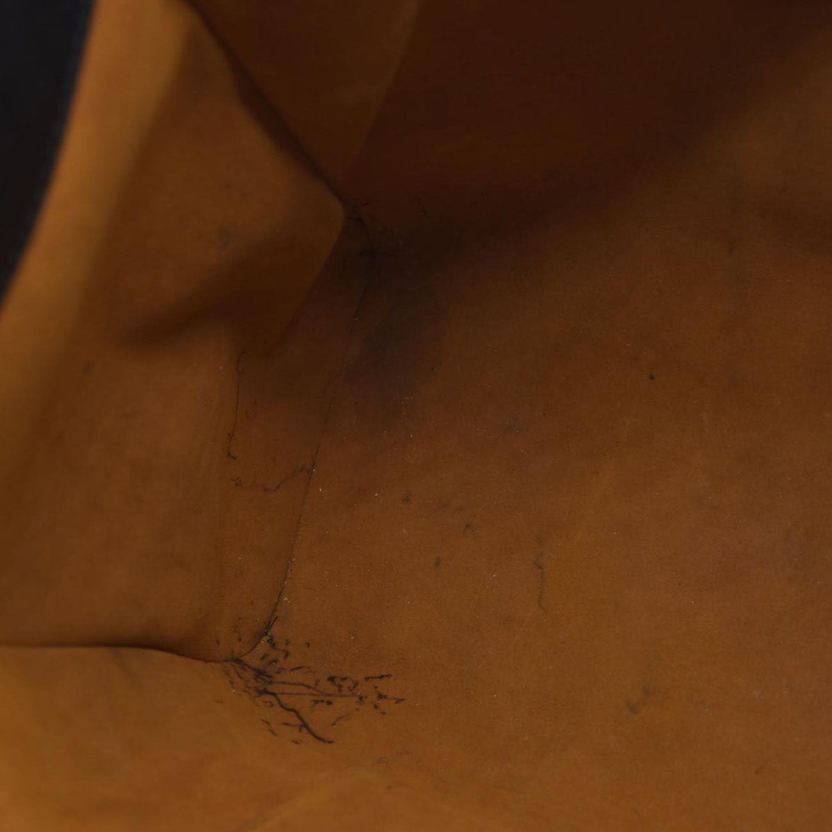 Heavy residue at exterior; moderate discoloration and marking at interior; minor scratches and patina at hardware; shape has relaxed due to wear.