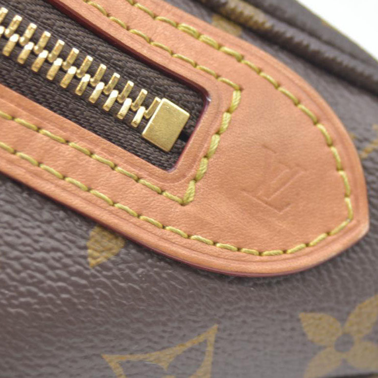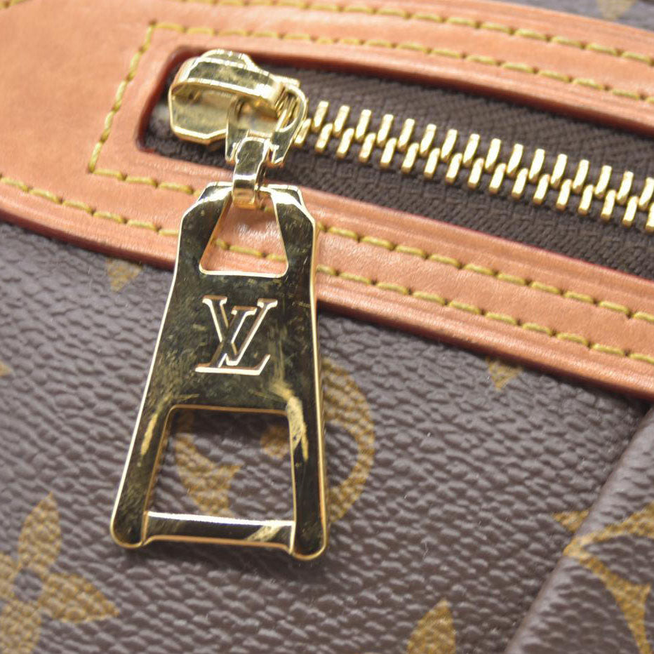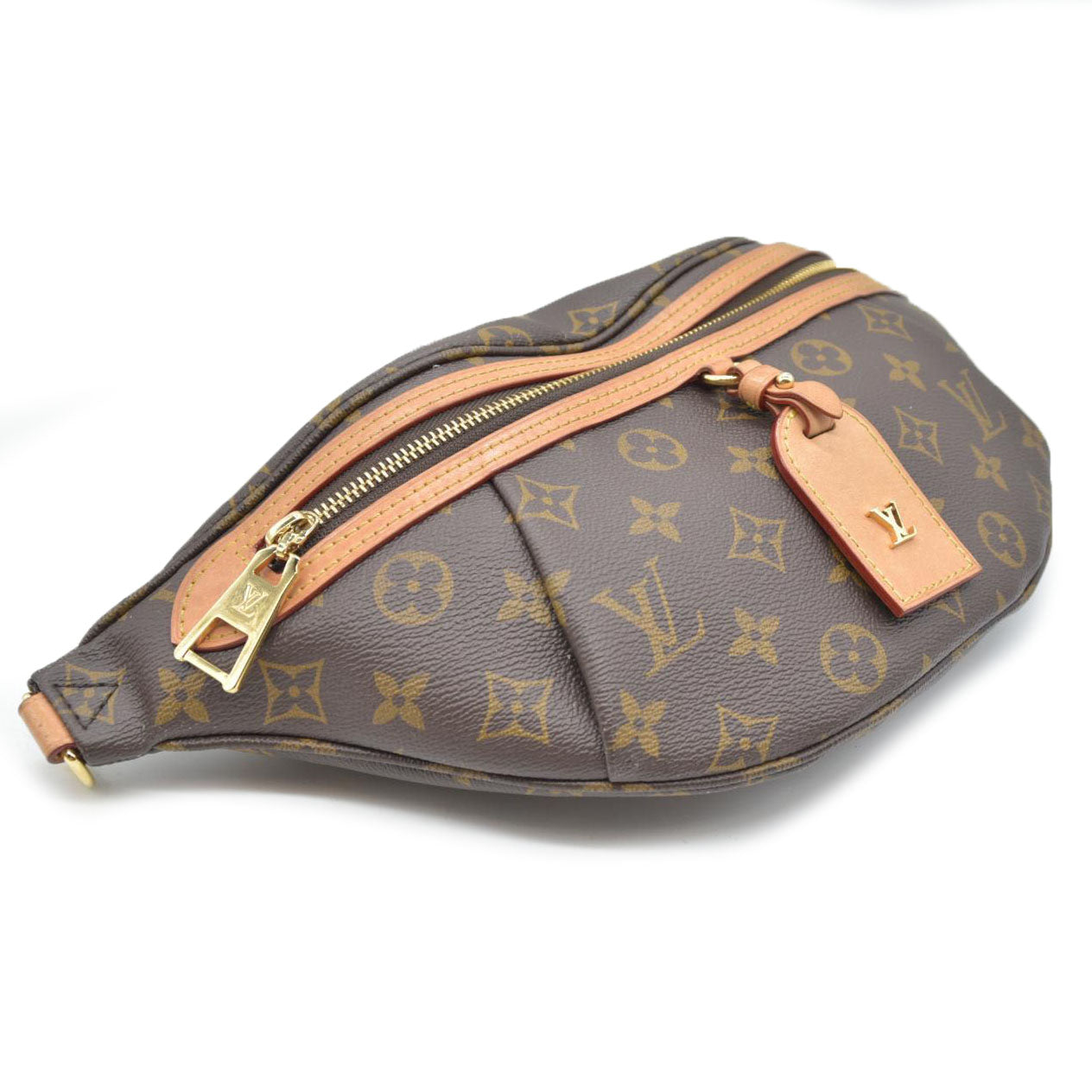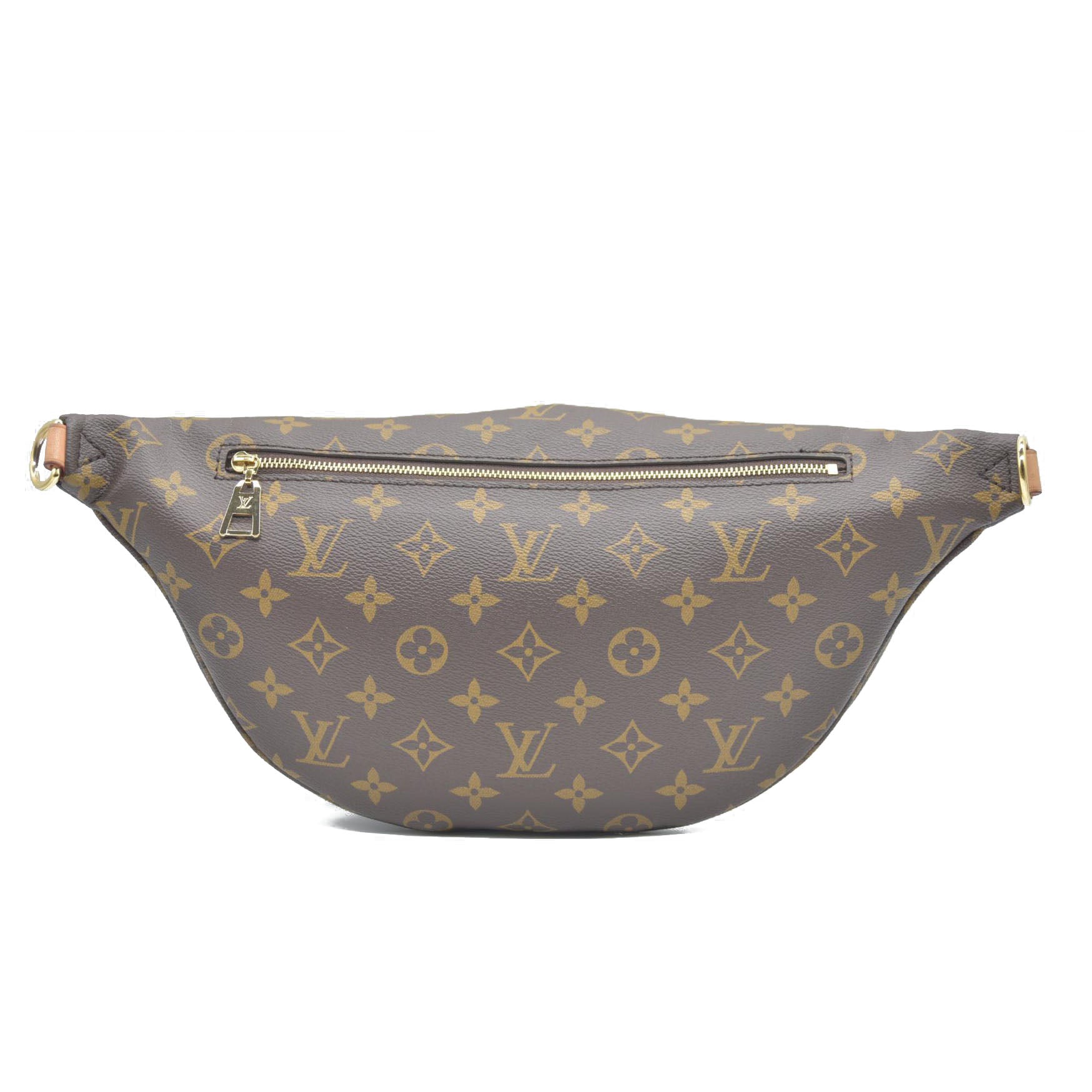 This is an authentic LOUIS VUITTON Monogram High Rise Bumbag. This belt bag is crafted of Louis Vuitton monogram coated canvas in brown with vachetta leather accents including zipper tape and a removable luggage tag. The bag features a front zipper pocket, a rear zipper pocket, and an adjustable beige fabric strap stitched with "Louis Vuitton". The main zipper opens to a white monogram fabric interior.
