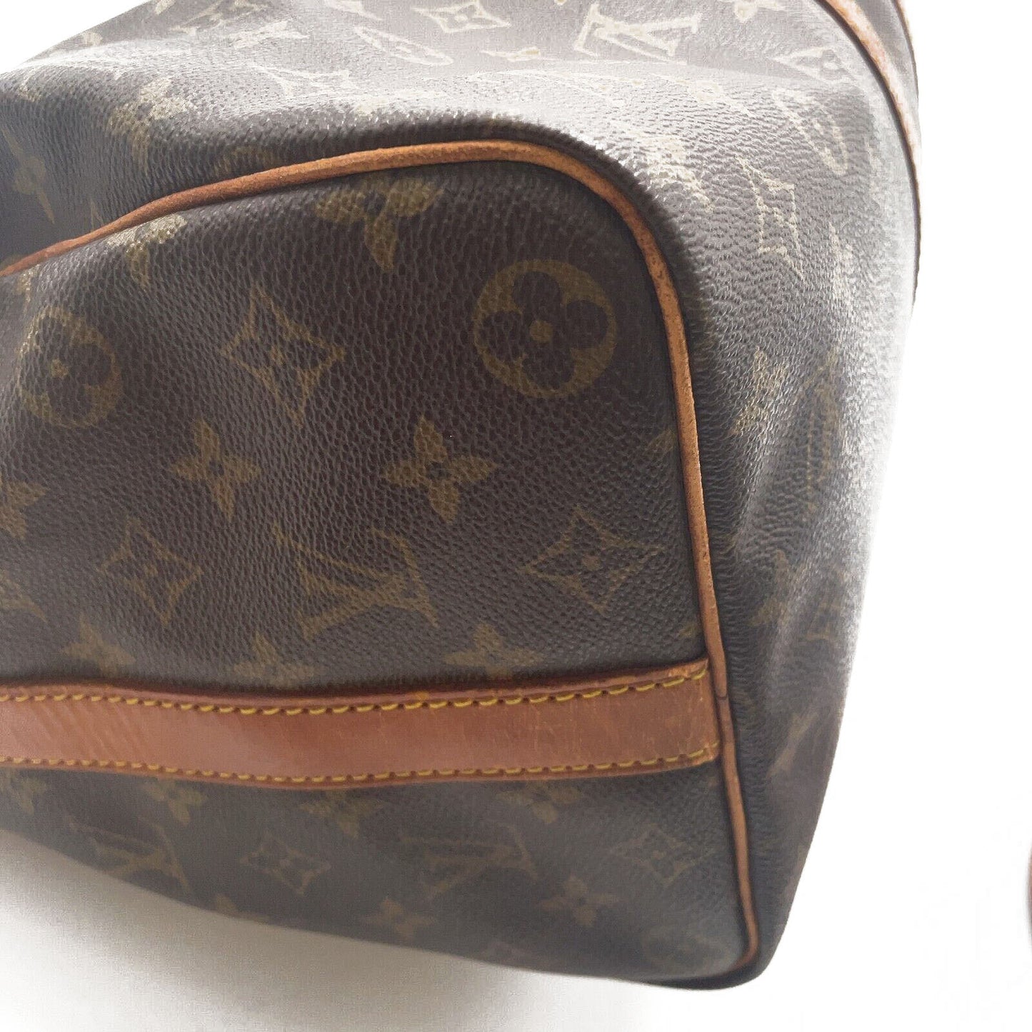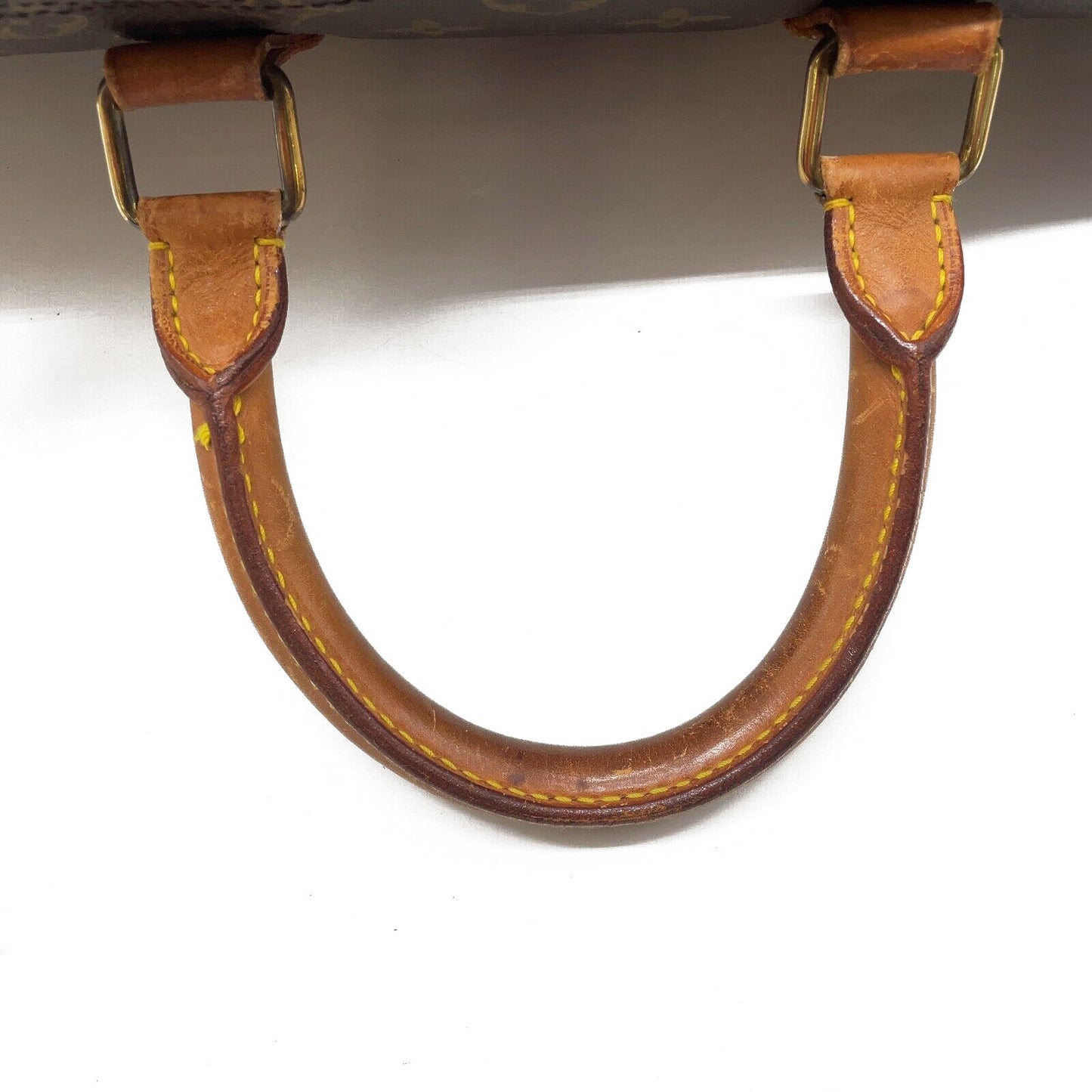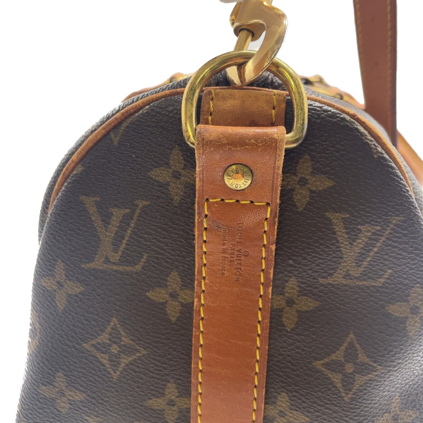 This is an authentic LOUIS VUITTON Monogram Keepall Bandouliere 45. This circa 1990 large sized travel duffel is crafted of signature Louis Vuitton monogram on toile canvas. The shoulder bag features natural vachetta leather rolled top handles, an optional adjustable shoulder strap, vachetta trim and brass hardware. The top zippers open to a spacious cocoa brown fabric interior. This is a remarkable tote, ideal for weekend travel or as a carry-on, from Louis Vuitton!