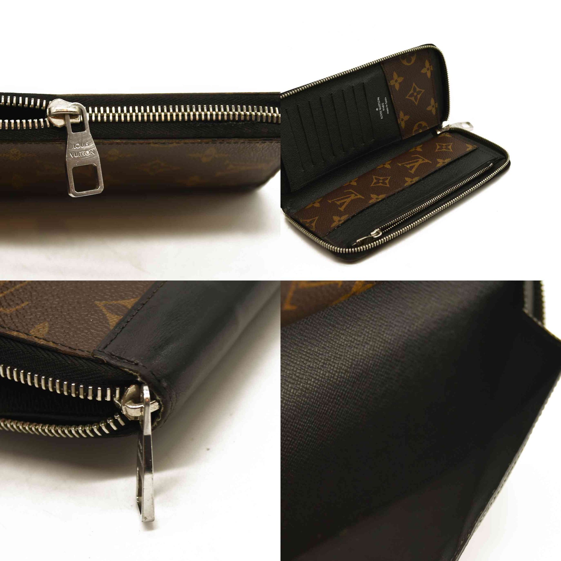 This is an authentic LOUIS VUITTON Monogram Macassar Vertical Zippy Wallet. This stylish wallet is crafted of Louis Vuitton signature monogram canvas with black leather accenting. A polished silver 3/4 wrap around zipper opens to a black cross-grain leather and monogrammed canvas interior with a card slot panel, patch pockets and a full zipper compartment.
