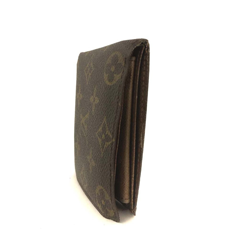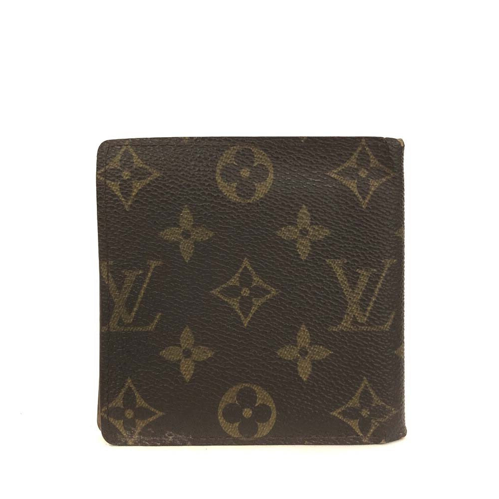This an authentic LOUIS VUITTON Monogram Marco Wallet. This compact wallet is crafted in traditional Louis Vuitton monogram toile canvas. It opens to a brown cross grain leather interior with a billfold pocket, card slots and a coin compartment.