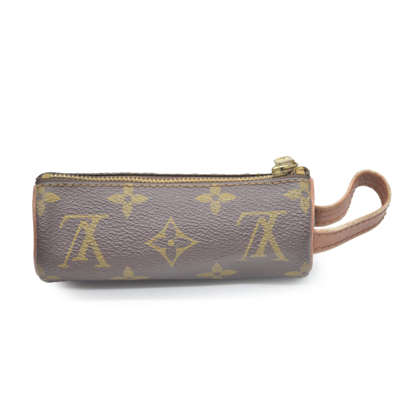 This is an authentic LOUIS VUITTON Monogram Mini Papillon Bag. This golf ball case is crafted of classic Louis Vuitton monogram on toile canvas. It features tan leather trim and a brass zipper. This opens to a terra cotta cross-grain leather interior.