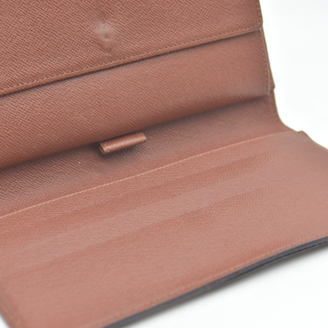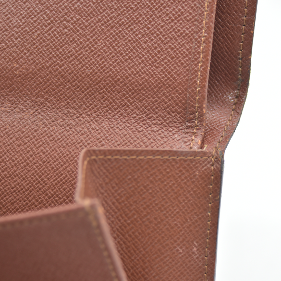 The exterior is rubbed with scratches. There are rubbed marks on the inside. The inside of cash compartment is peeled.