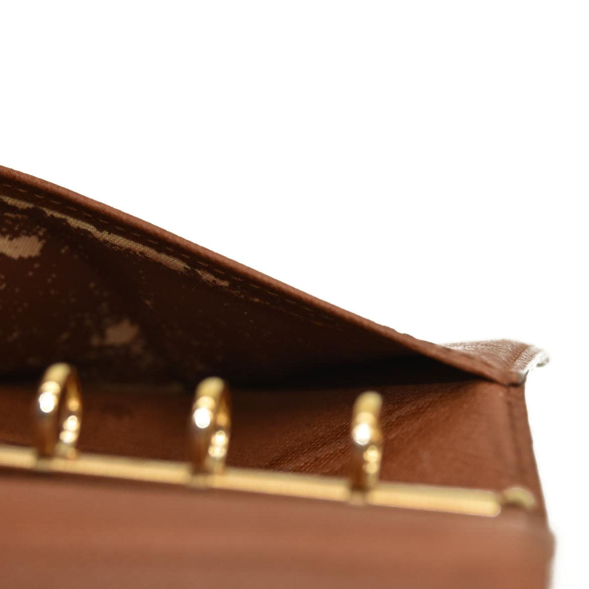 This is an authentic LOUIS VUITTON Monogram Small Ring Agenda. This stylish agenda features an exterior of Louis Vuitton monogram on toile canvas that is held by a crossover polished gold snap closure. It opens to an interior of terra-cotta cross-grained leather with card slots and patch pockets. The agenda has a small brass six-ring binder that holds Louis Vuitton inserts.