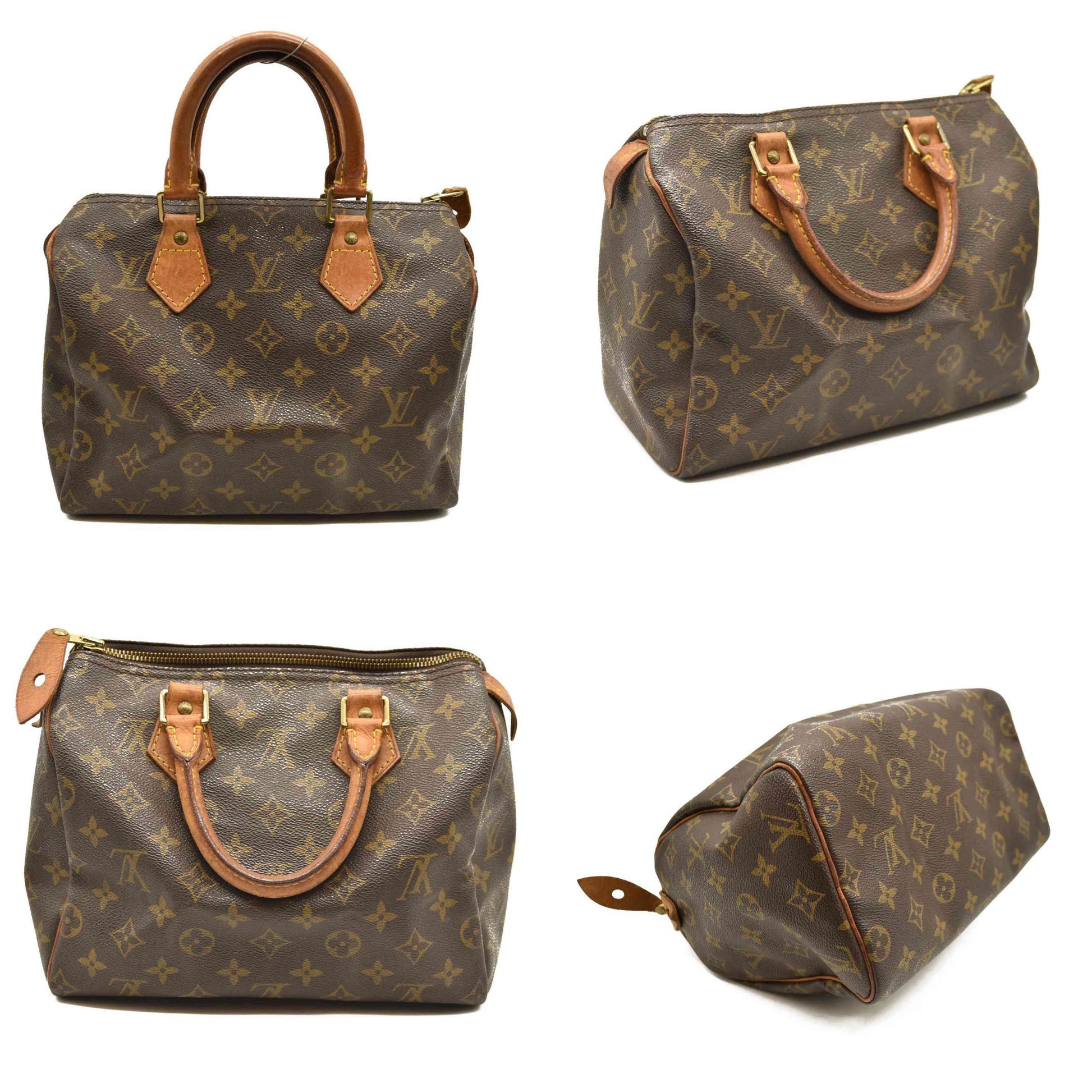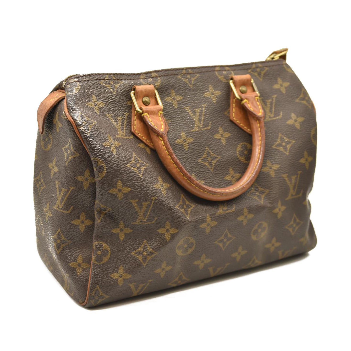 This is an authentic LOUIS VUITTON Monogram Speedy 25. This iconic small tote is crafted of signature Louis Vuitton monogram on toile canvas. This bag features vachetta cowhide leather top handles and trim with polished brass hardware. The top zipper opens to a complimentary cocoa brown fabric interior with a patch pocket. This is an excellent classic handbag that is ideal for everyday with the luxury and style of Louis Vuitton!