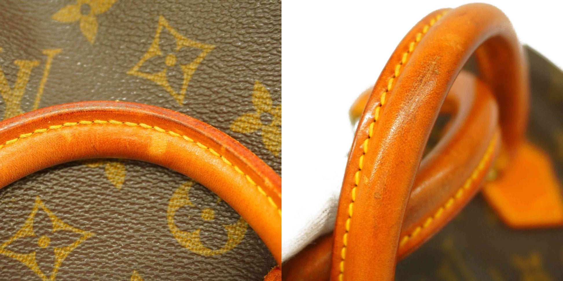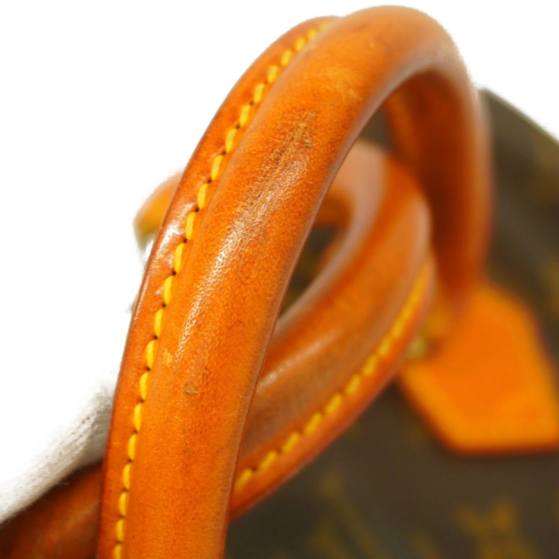 Handle: Surface wear, darkening, patina of vachetta, liquid marks, marks