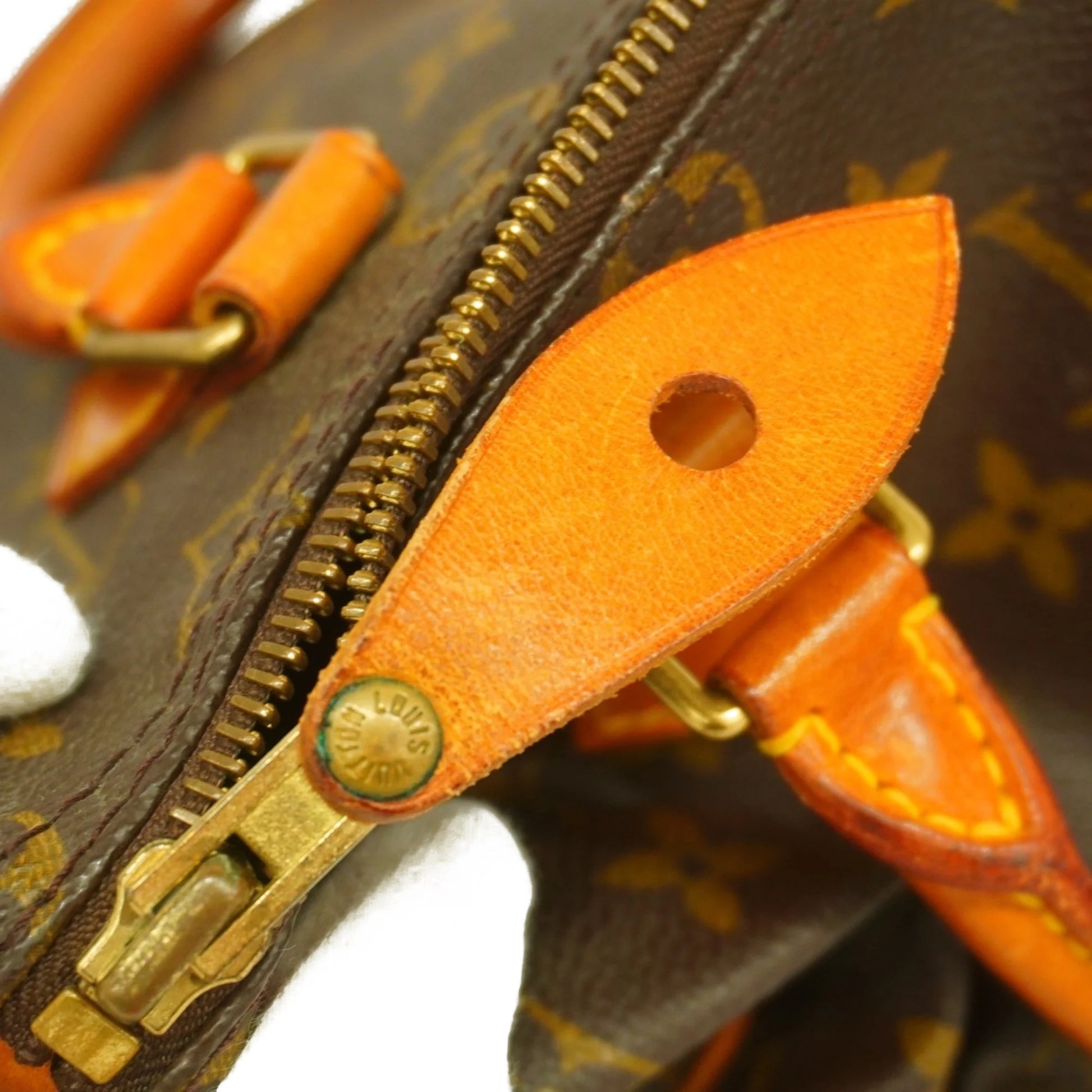 Exterior: Patina of vachetta, liquid marks, marks, surface wear