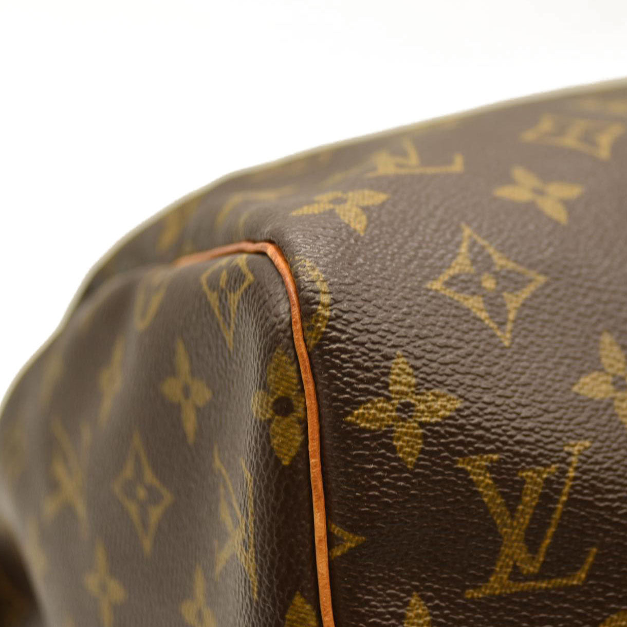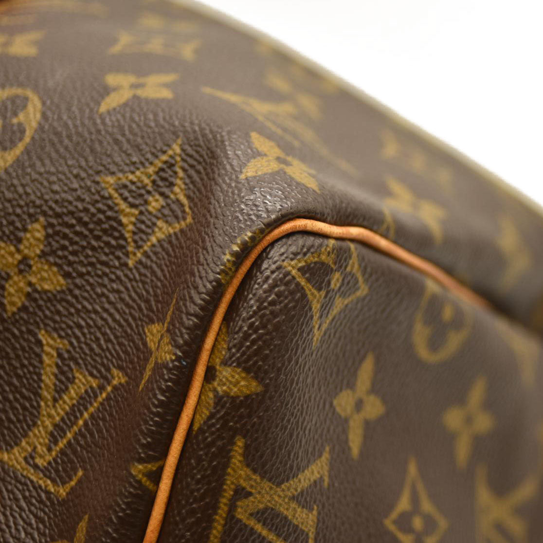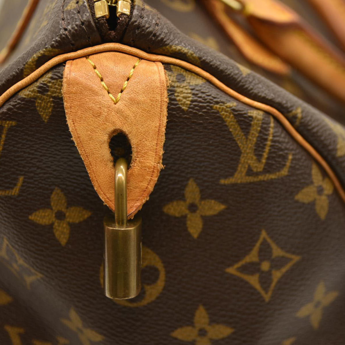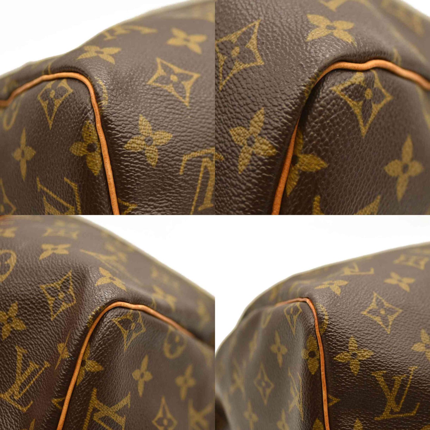 This is an authentic LOUIS VUITTON Monogram Speedy 30. This classic handbag is crafted of traditional Louis Vuitton monogram toile coated dark brown canvas. The bag features vachetta cowhide rolled leather top handles and trim with polished brass hardware The top zipper opens to a cocoa brown fabric interior with a hanging patch pocket.