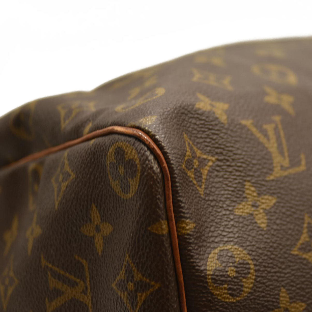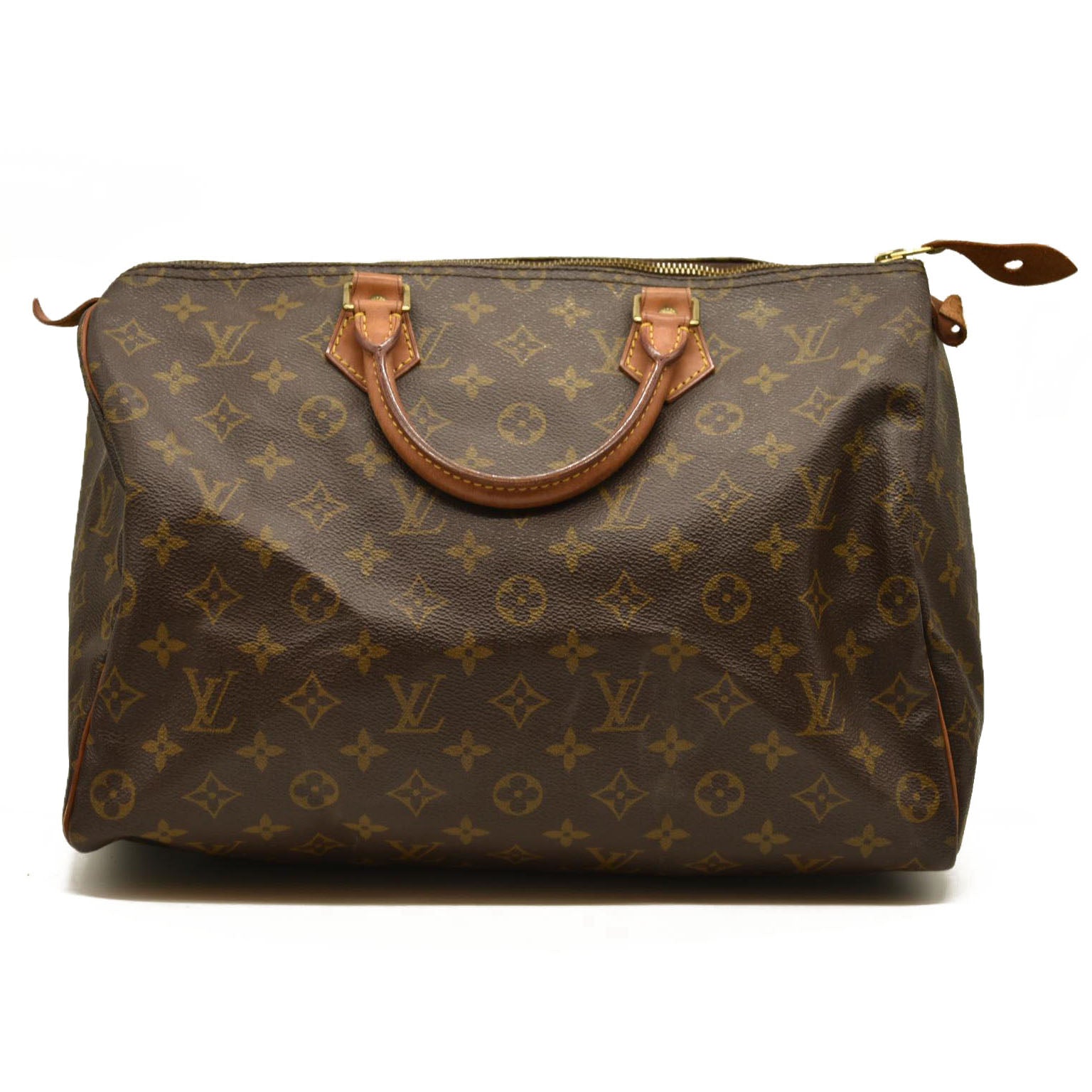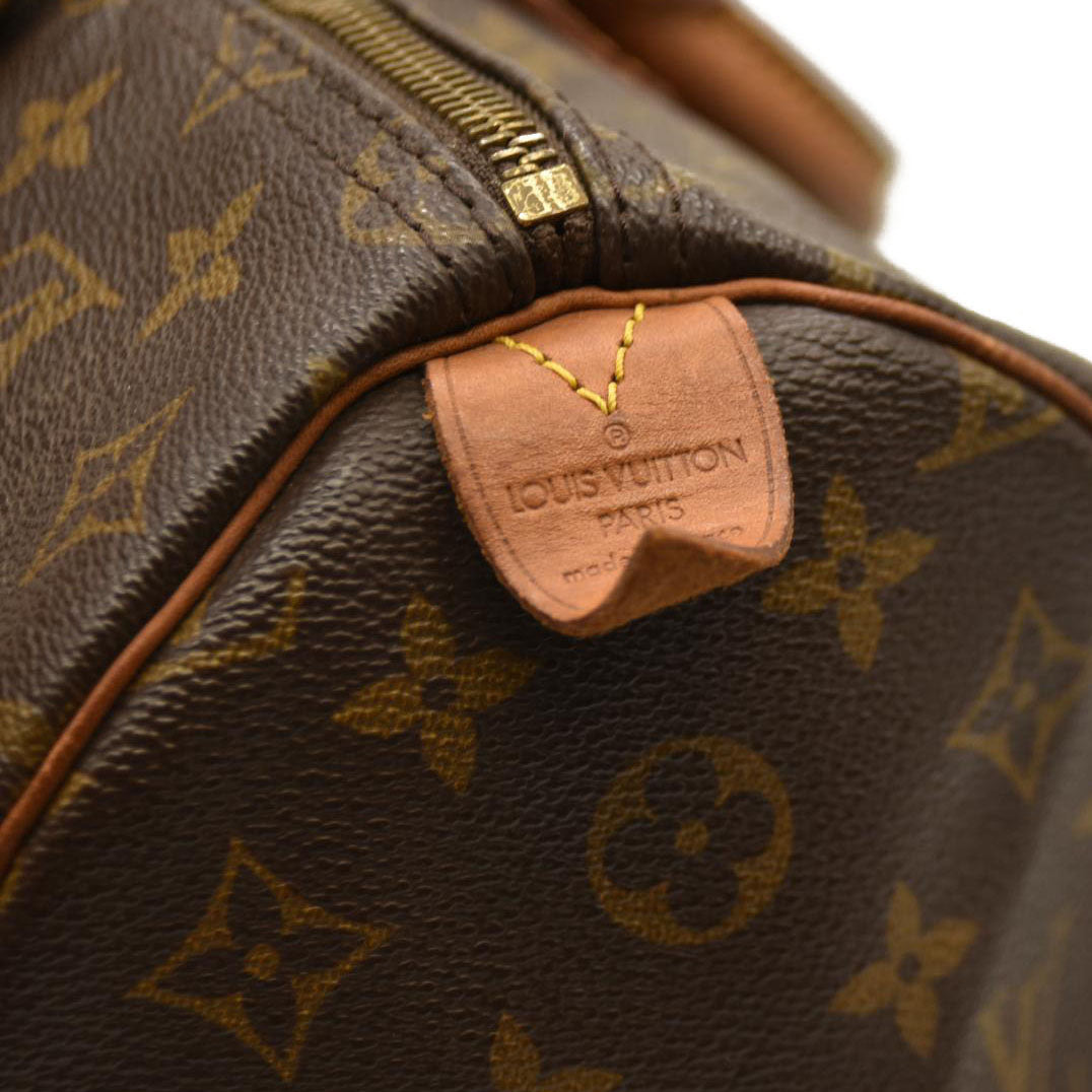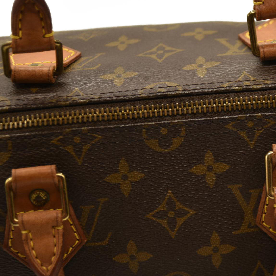 This is an authentic LOUIS VUITTON Monogram Speedy 30. This classic handbag is finely crafted of traditional Louis Vuitton monogram coated canvas. The bag features vachetta cowhide leather trim and rolled top handles with brass hardware. The top zipper opens the bag to a cocoa brown fabric interior with a pocket.