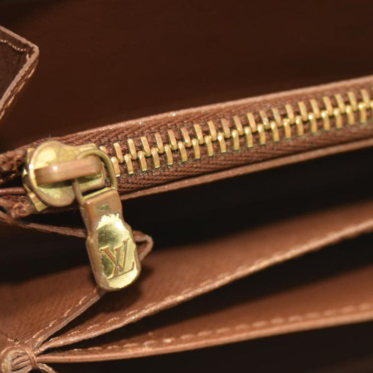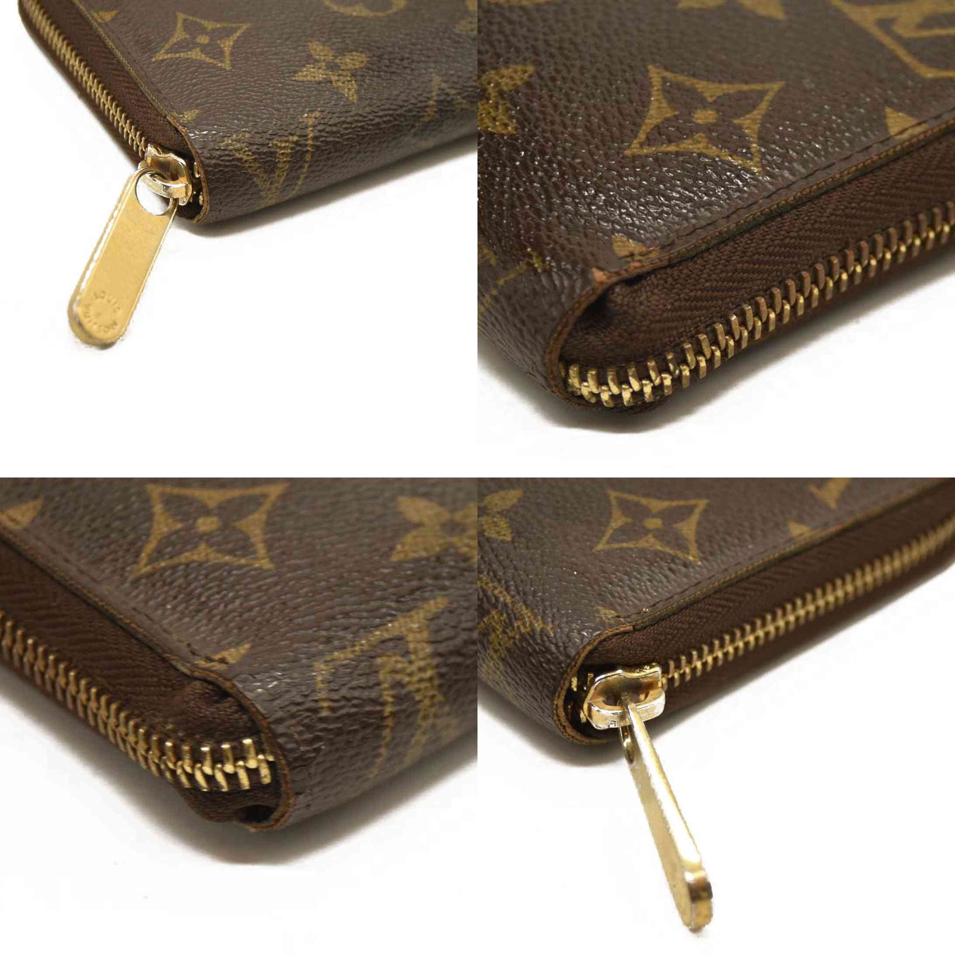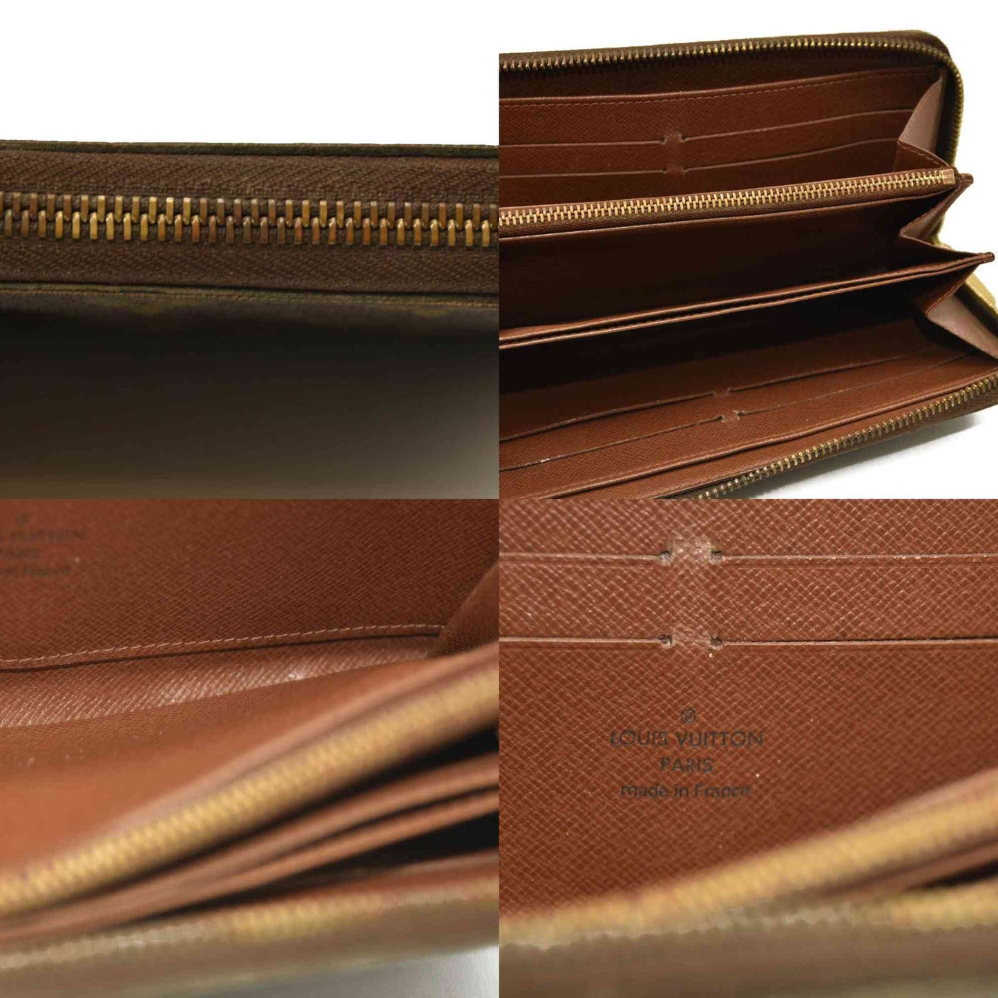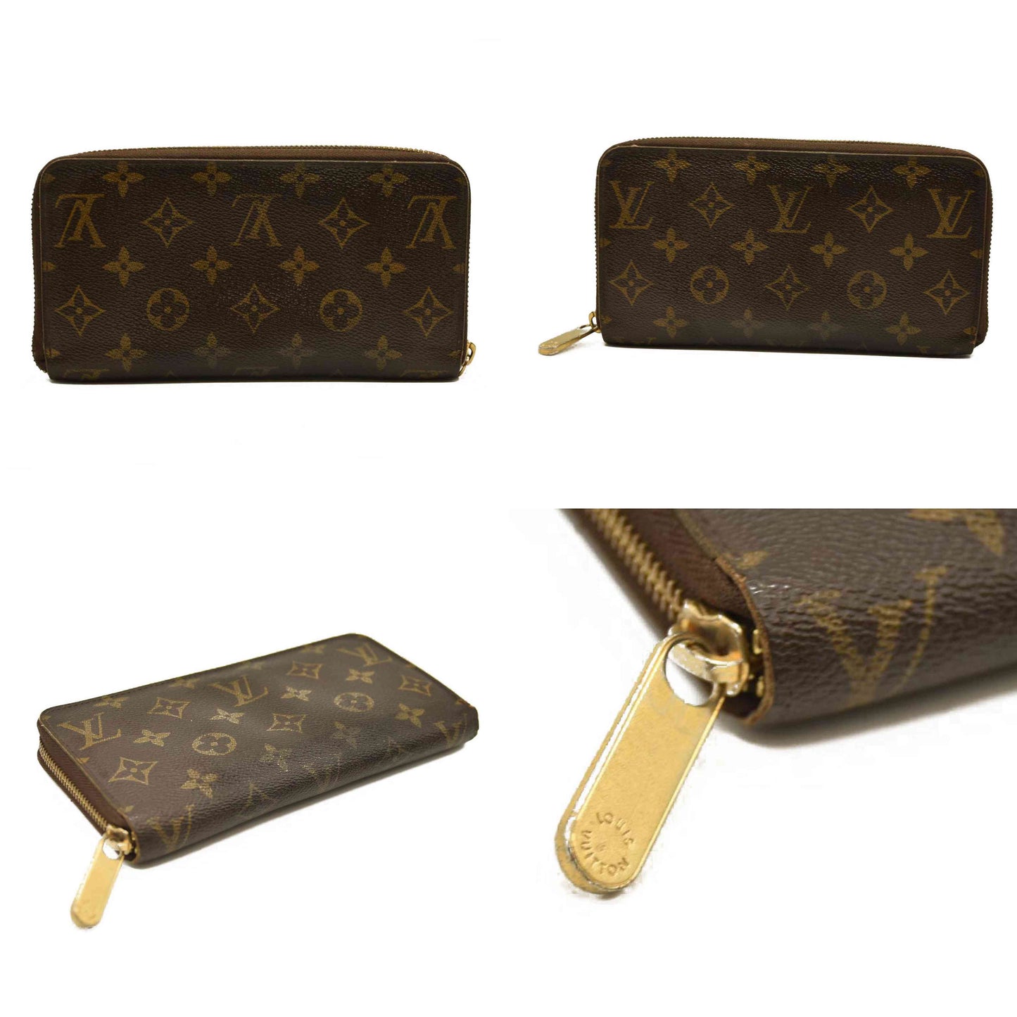 This is an authentic LOUIS VUITTON Monogram Zippy Wallet. This stylish wallet is crafted of Louis Vuitton monogram toile canvas. It features a 3/4 wrap-around polished gold zipper that opens to a partitioned brown cross-grain leather interior with patch pockets, card slots, and a zipper compartment.