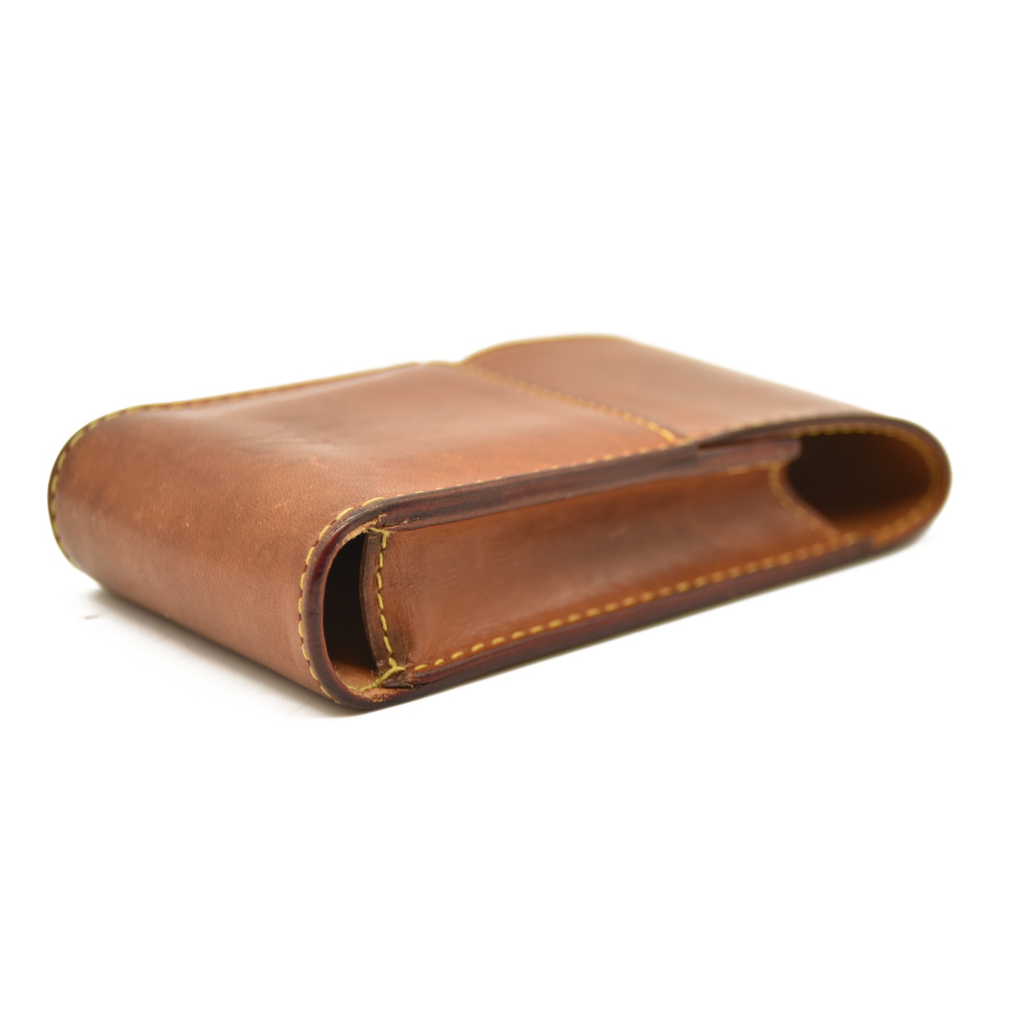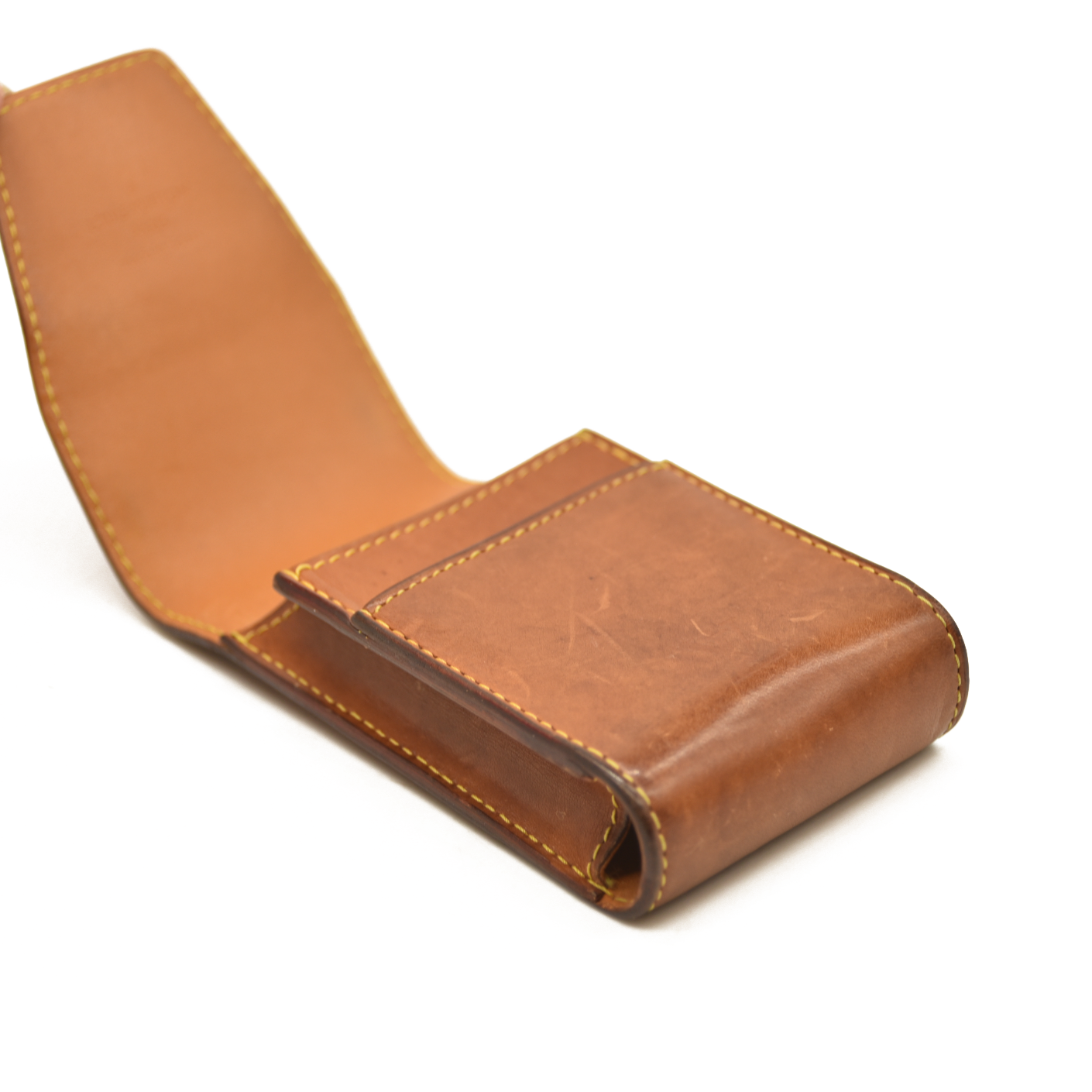 This is an authentic LOUIS VUITTON Nomade Etui Cigarette Case in Caramel. This stylish case is crafted of smooth Nomade saddle leather with a LV embossed on the front. It has a flap that opens up to a pocket to store cigarettes. This is an excellent case that is practical and chic, from Louis Vuitton!