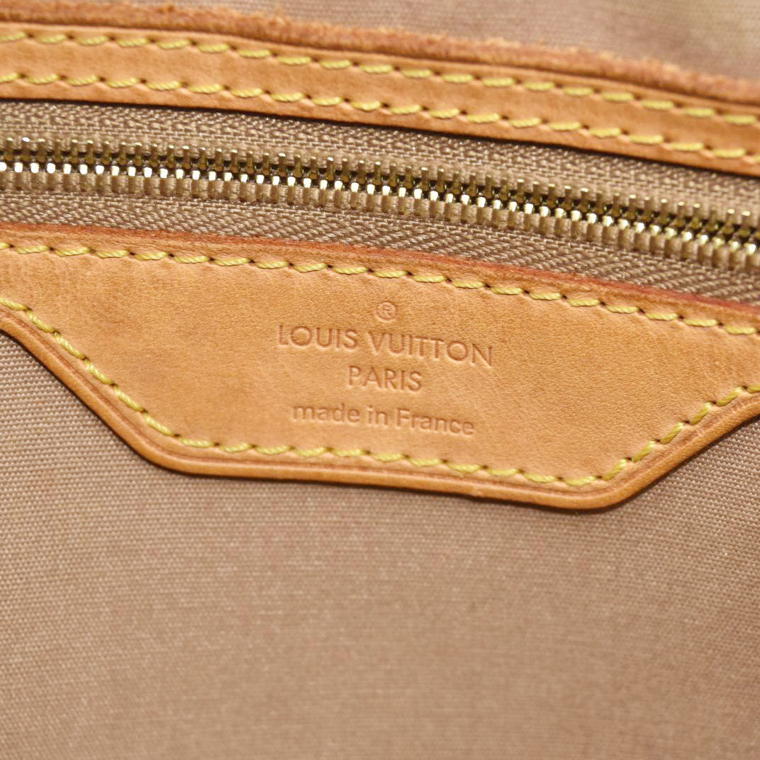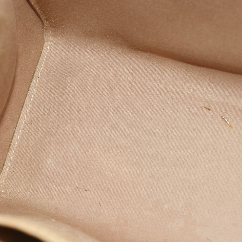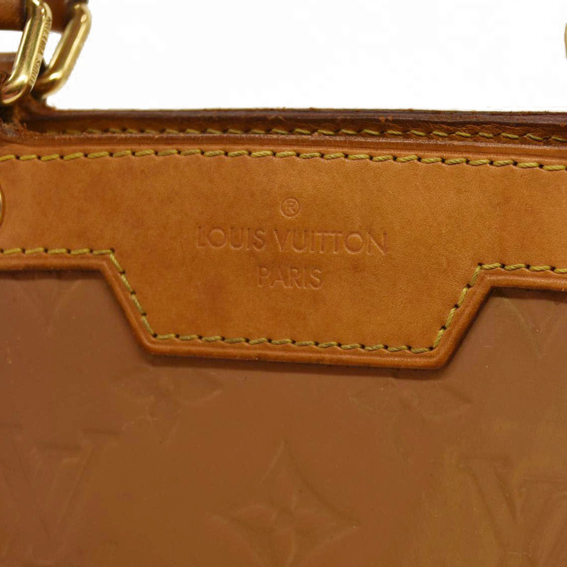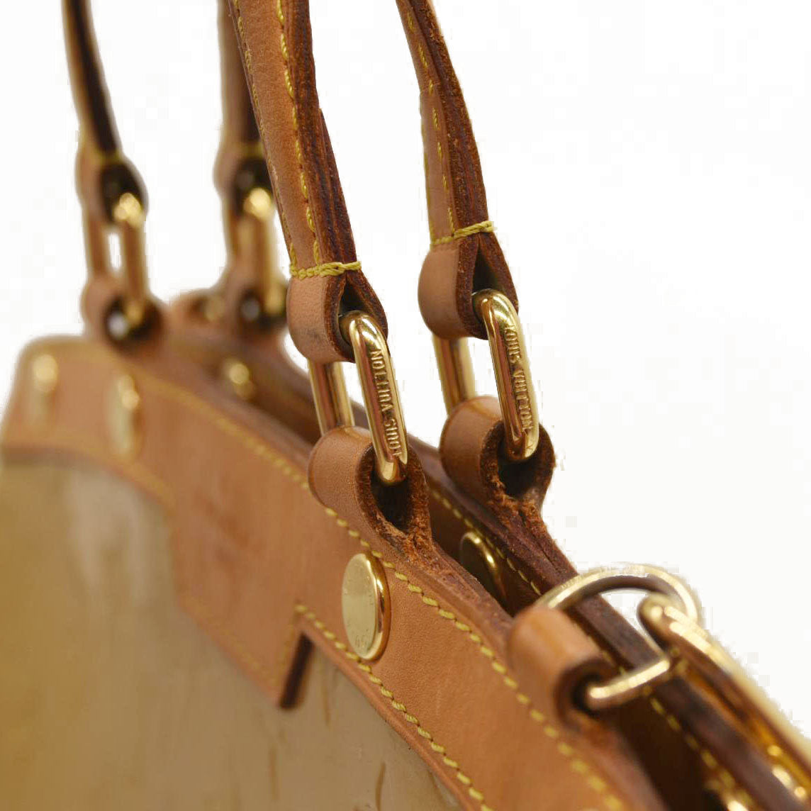 This is an authentic LOUIS VUITTON Vernis Brea MM in Blanc Corail. This sophisticated tote is crafted of light beige monogram-embossed patent leather. It features vachetta leather top handles and matching trim accented with polished brass hardware. The top zipper opens to a light beige fabric interior with zipper and patch pockets.