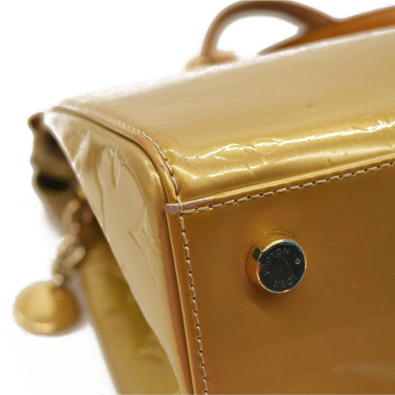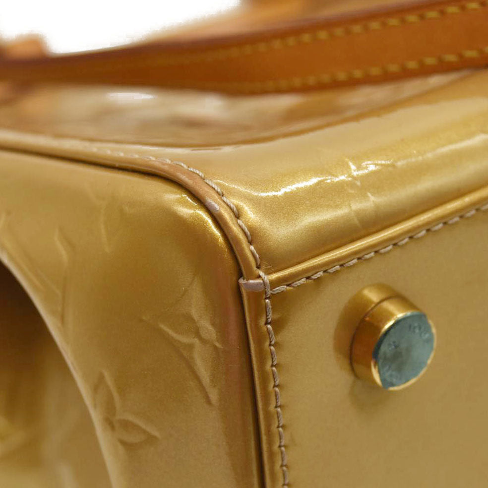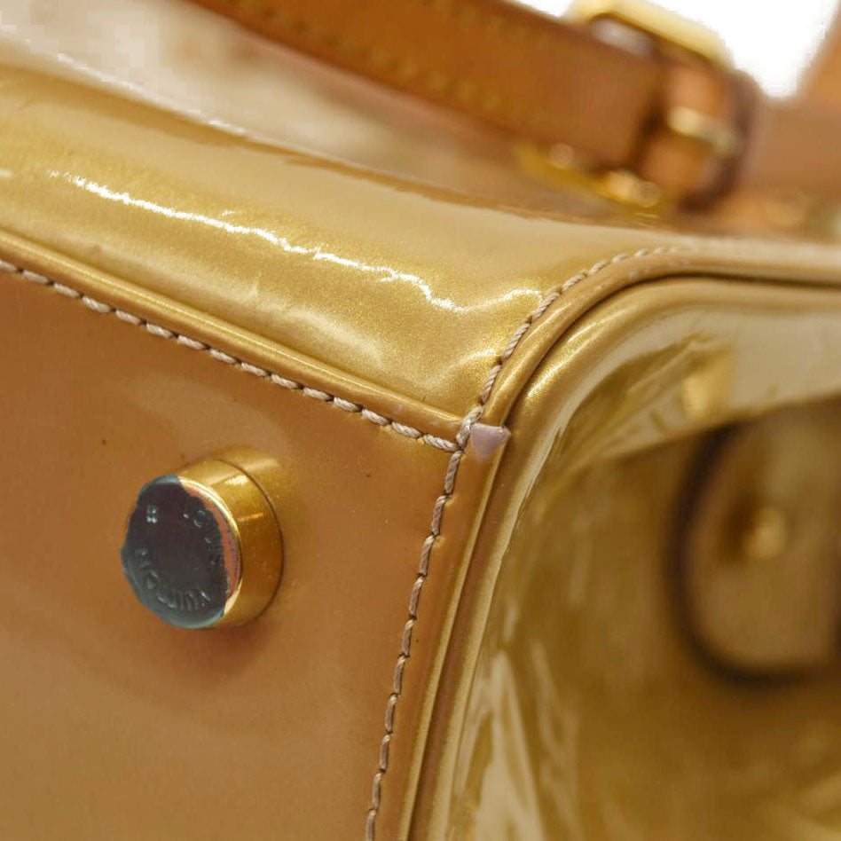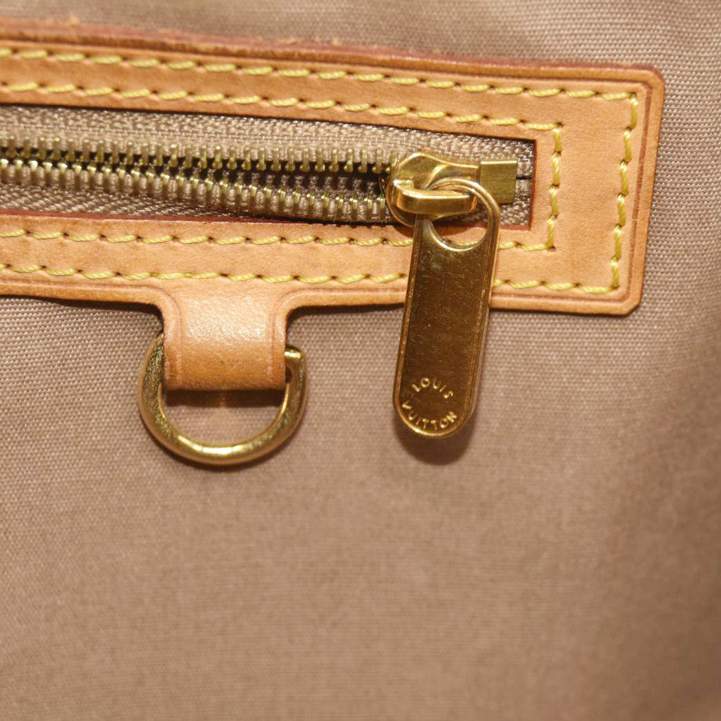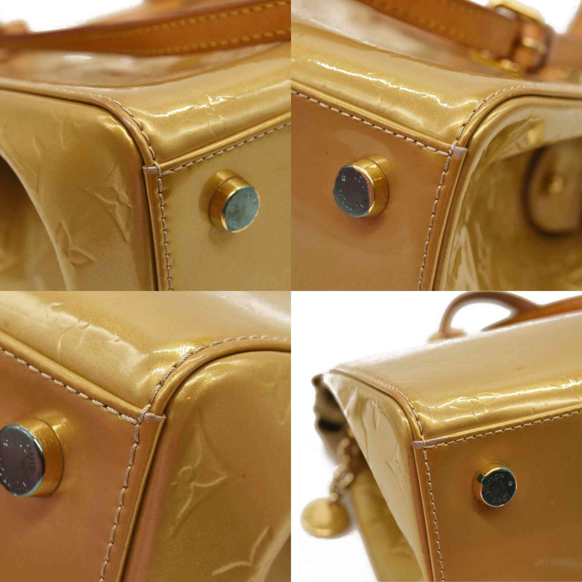 This is an authentic LOUIS VUITTON Vernis Brea MM in Blanc Corail. This sophisticated tote is crafted of light beige monogram-embossed patent leather. It features vachetta leather top handles and matching trim accented with polished brass hardware. The top zipper opens to a light beige fabric interior with zipper and patch pockets.