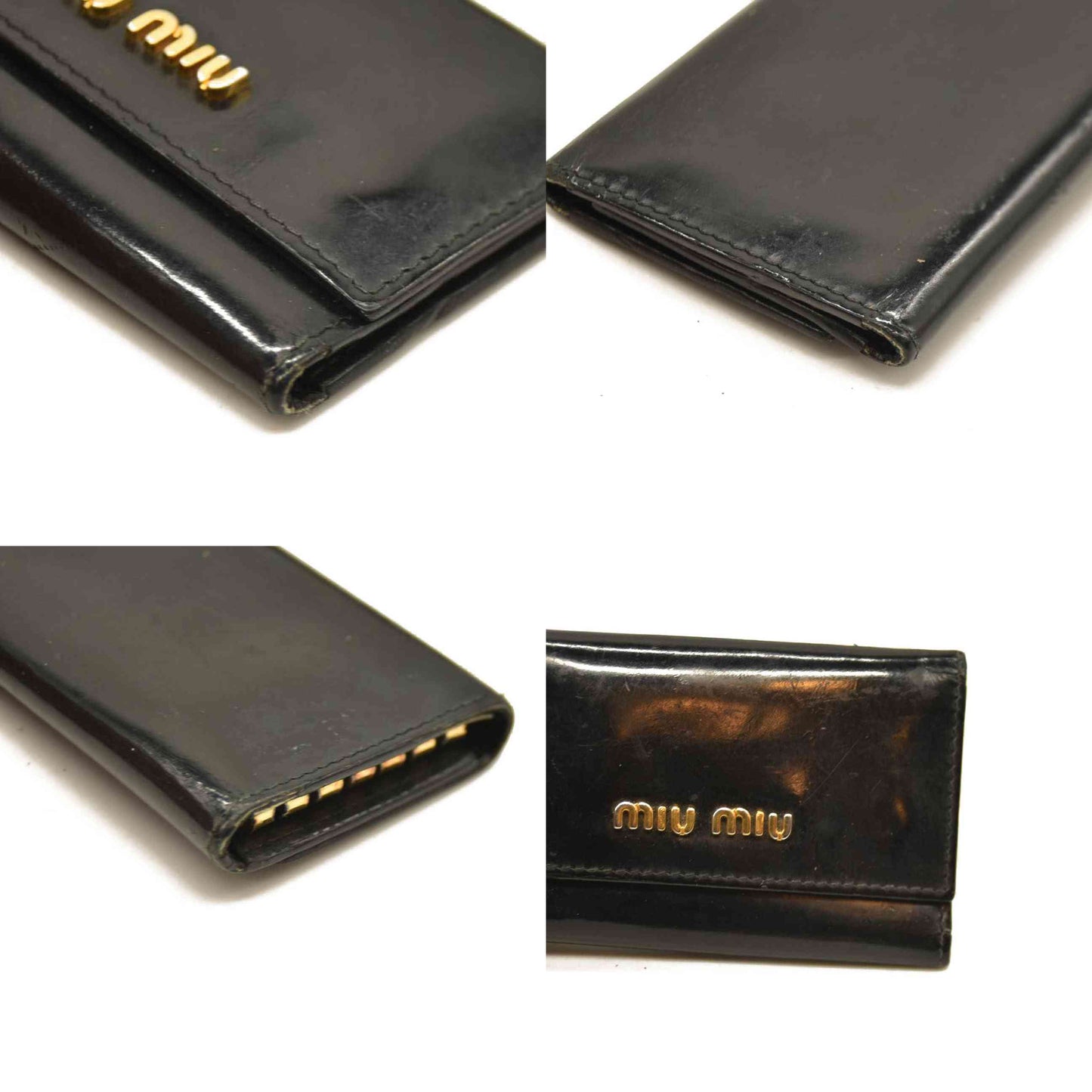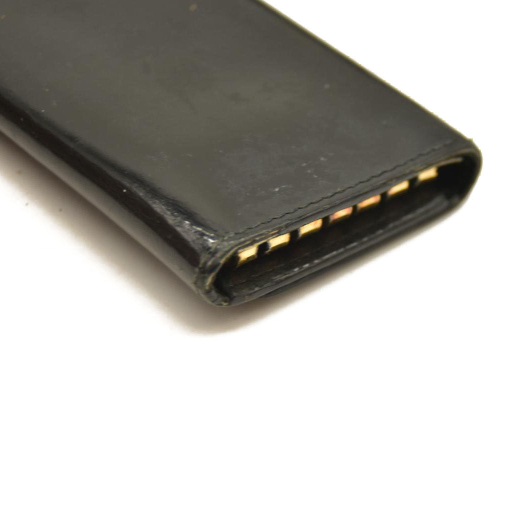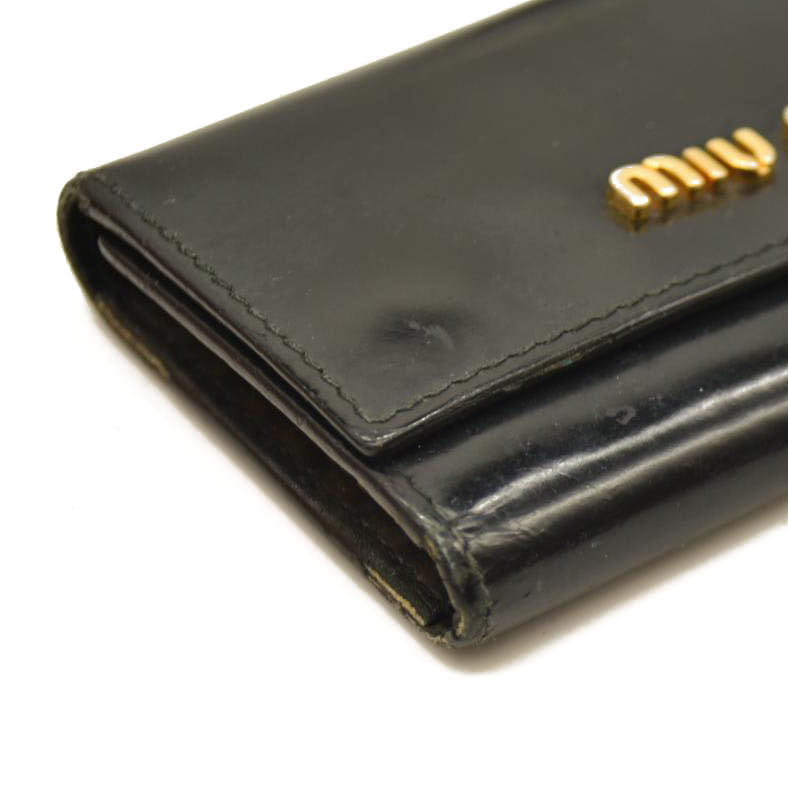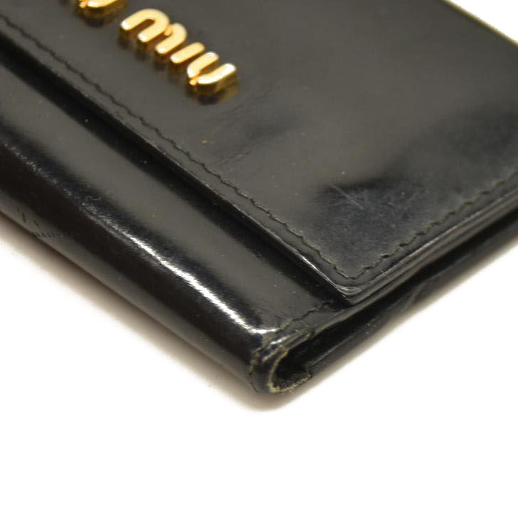 MIU MIU Logo Patent Leather 6 Ring Key Case Black