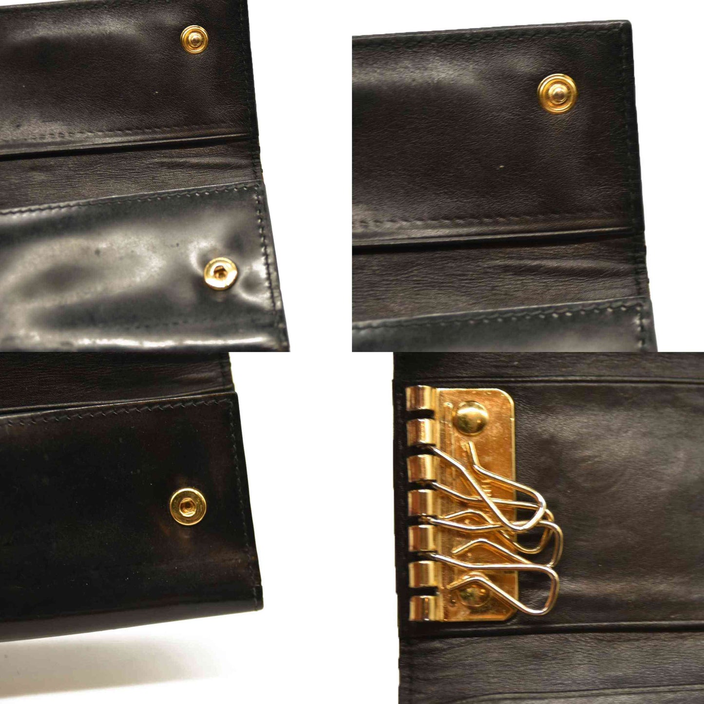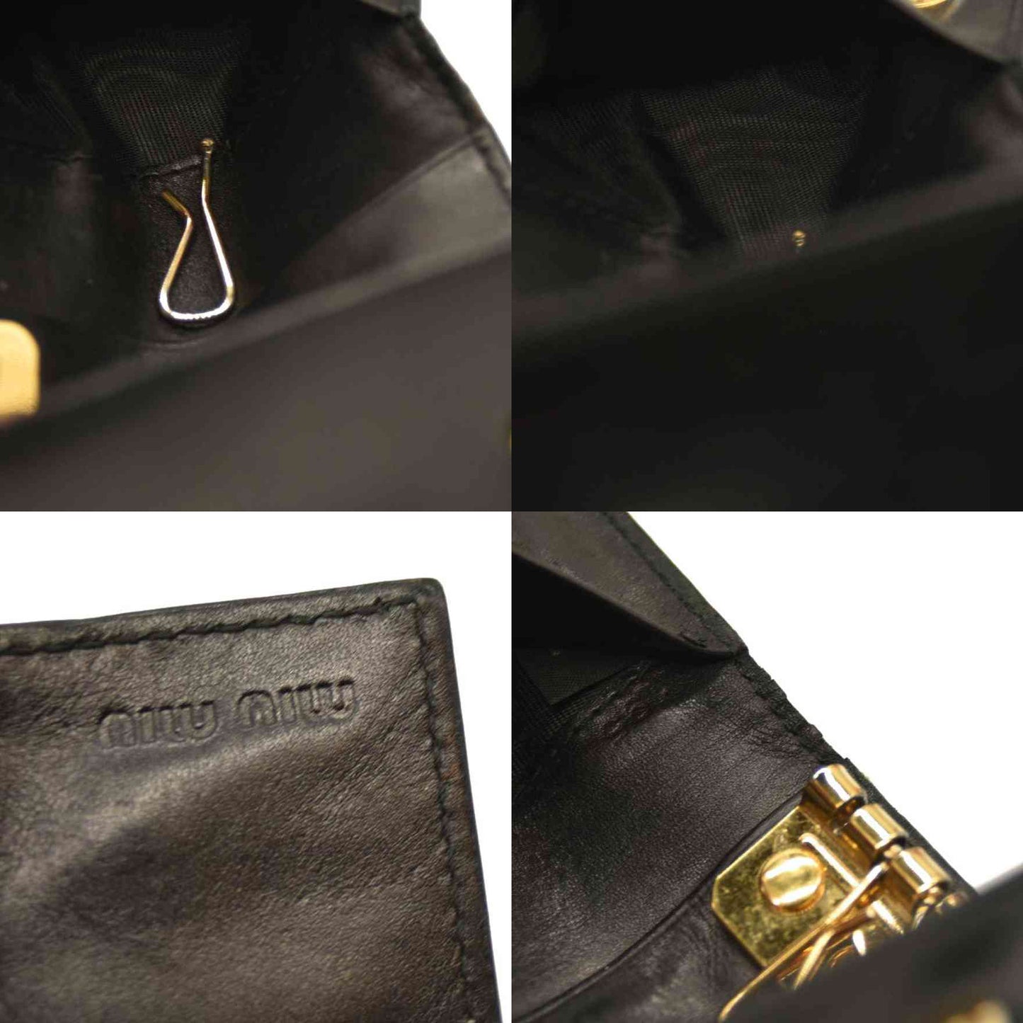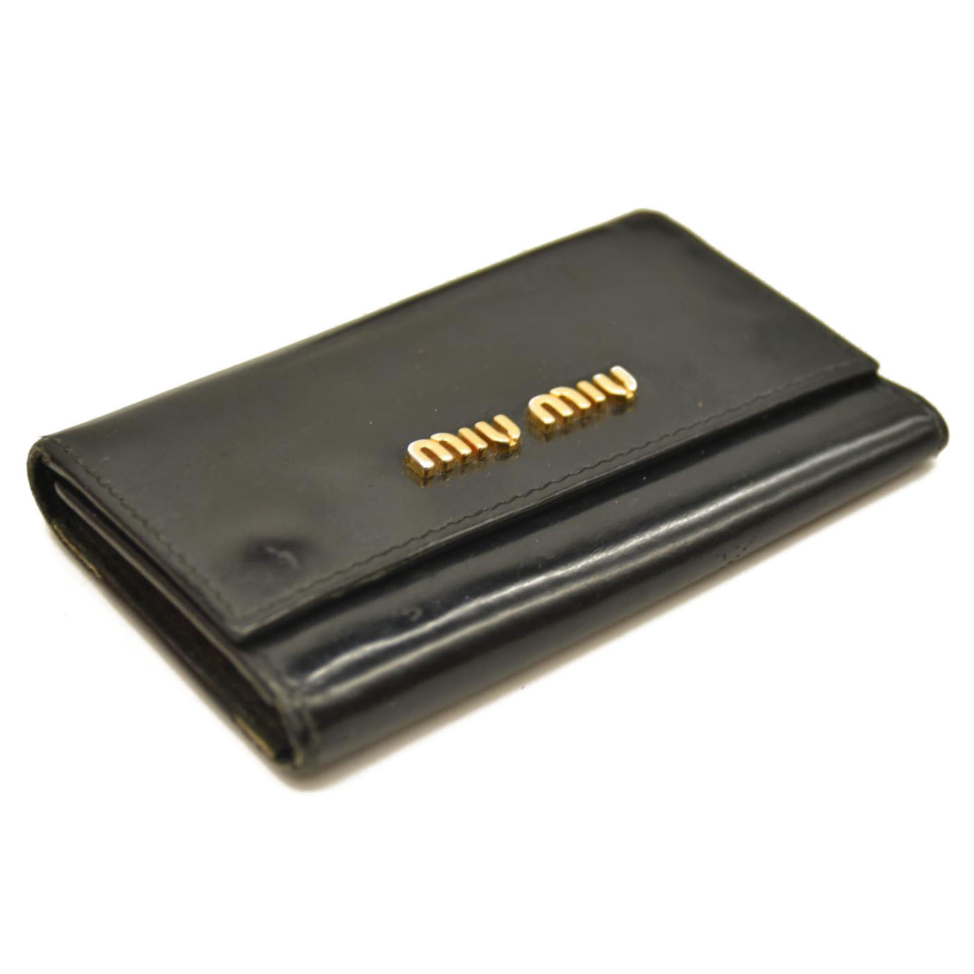 MIU MIU Logo Patent Leather 6 Ring Key Case Black