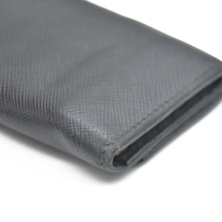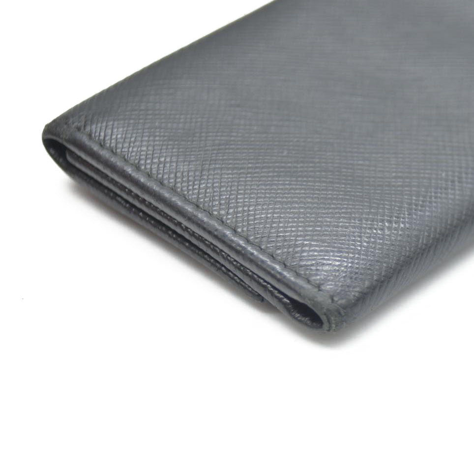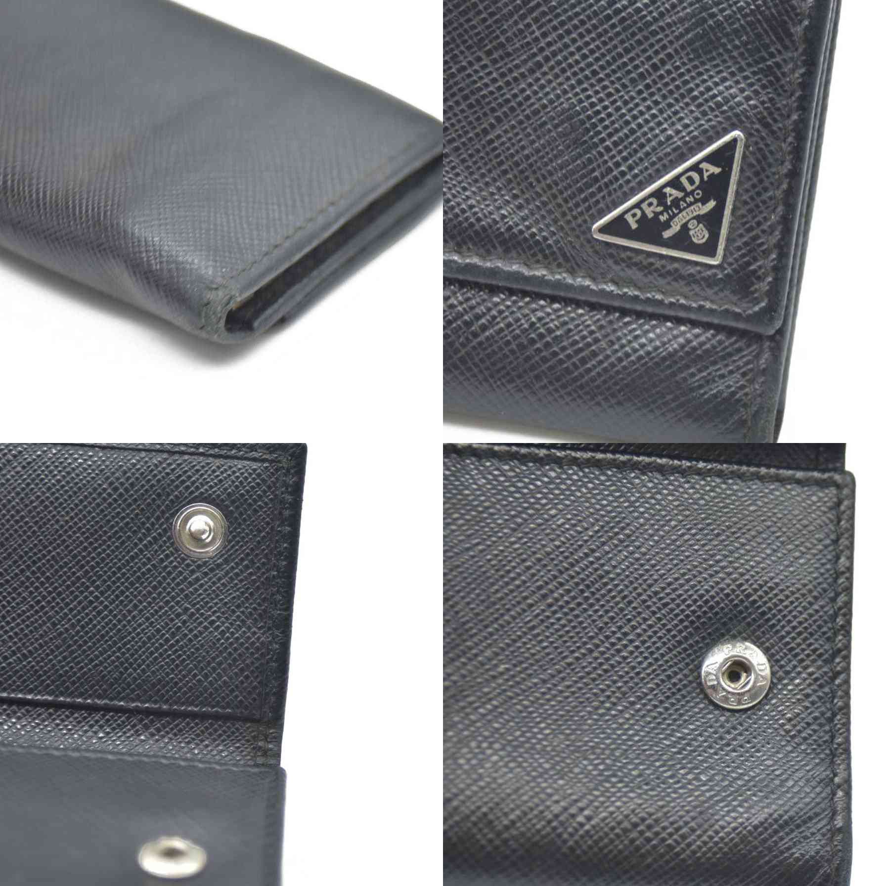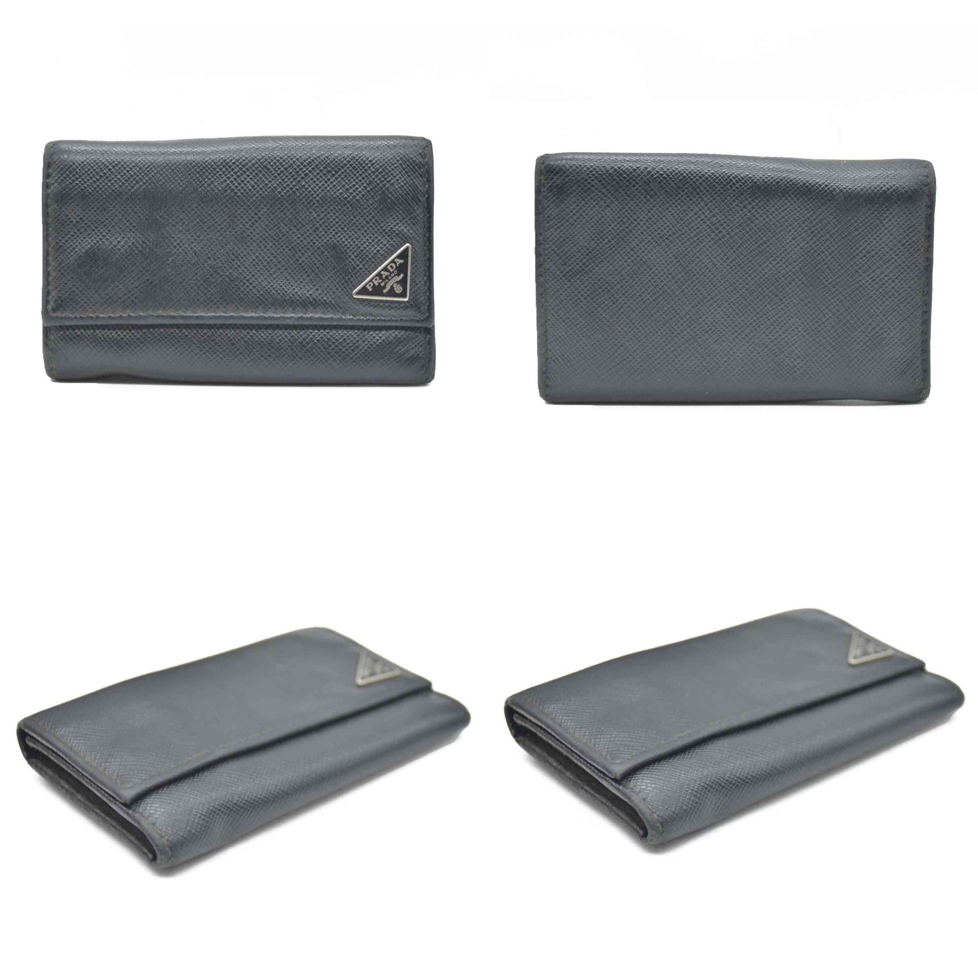 PRADA Logo Plate Saffiano Leather 6 Ring Key Case Black