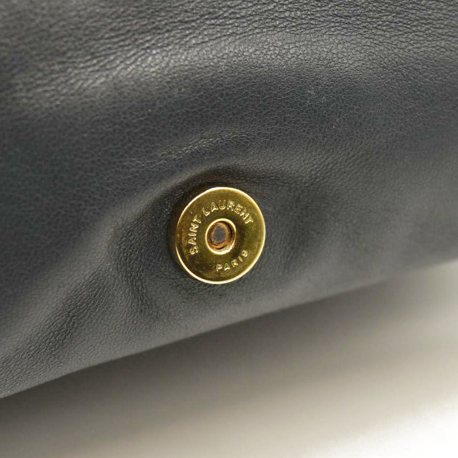 This is an authentic SAINT LAURENT Lambskin Diamond Quilted Monogram Angie Chain Bag in Smog Grey. This stunning shoulder bag is crafted of diamond-quilted lambskin leather in blue dark grey color. The bag features an optional adjustable gold chain link with leather shoulder strap and a matching gold YSL logo on the front. The bag opens to a black fabric interior with three separate zipper compartments. This is an ideal bag for day or evening wear, from Saint Laurent!