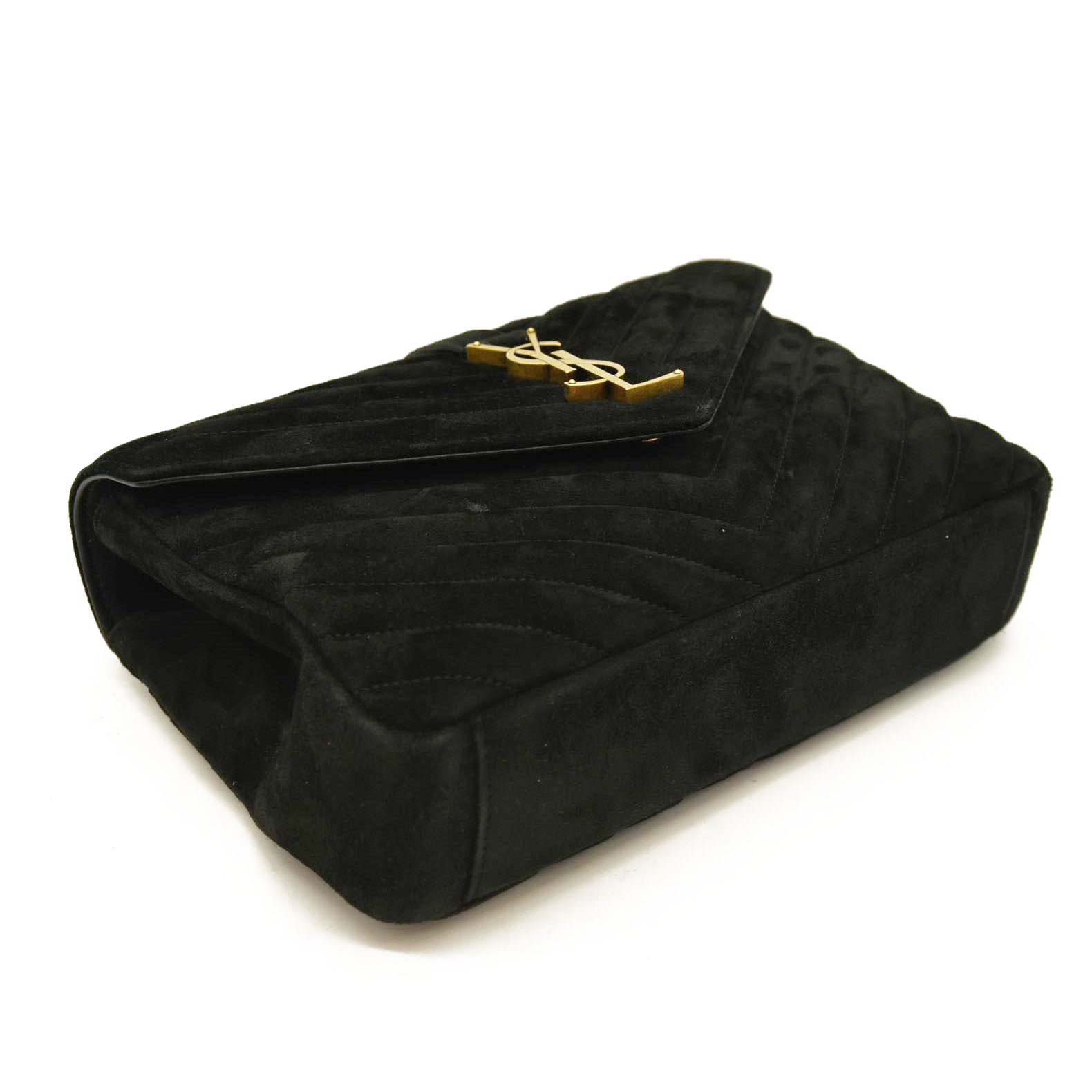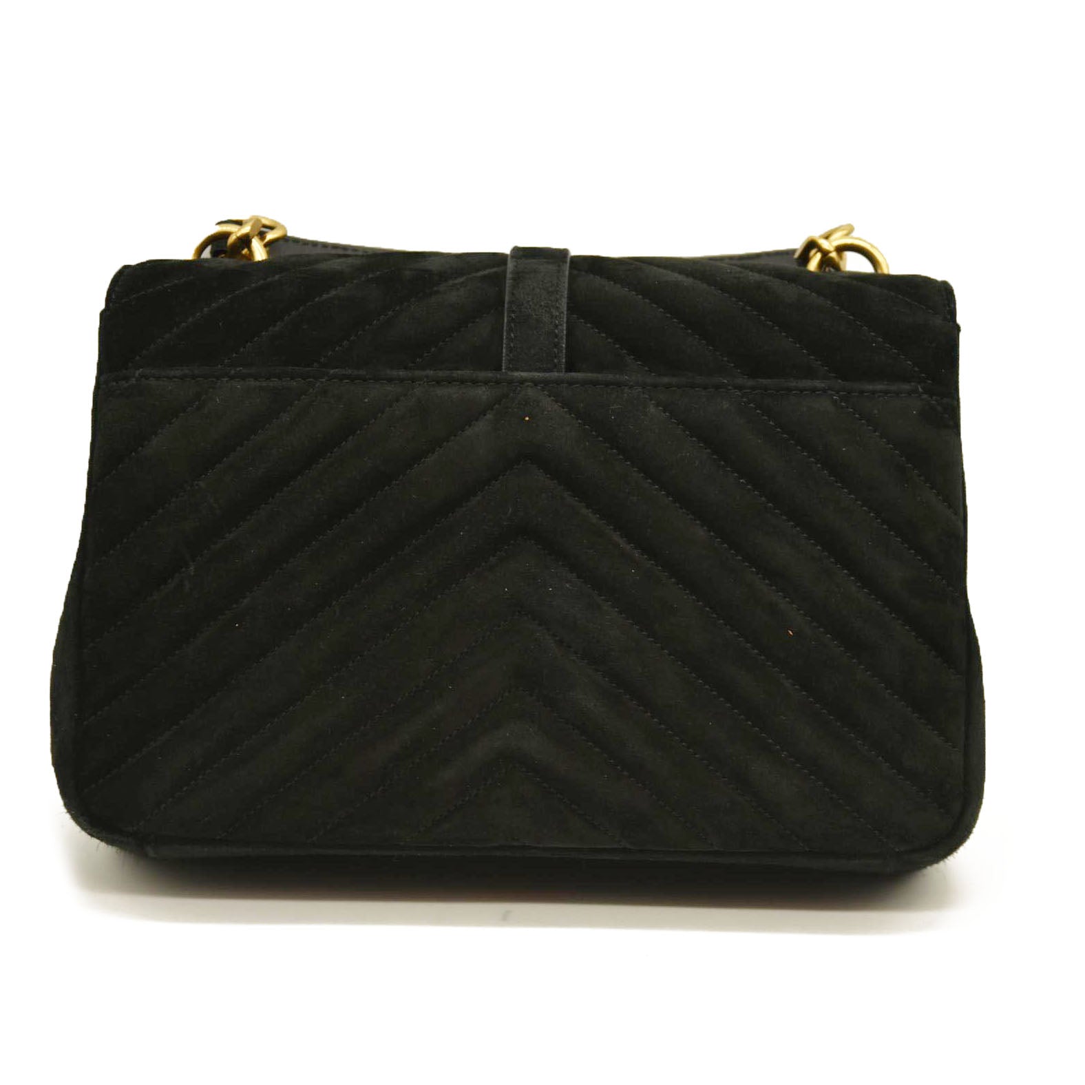Saint Laurent Suede Matelasse Chevron Monogram Medium College Bag Black