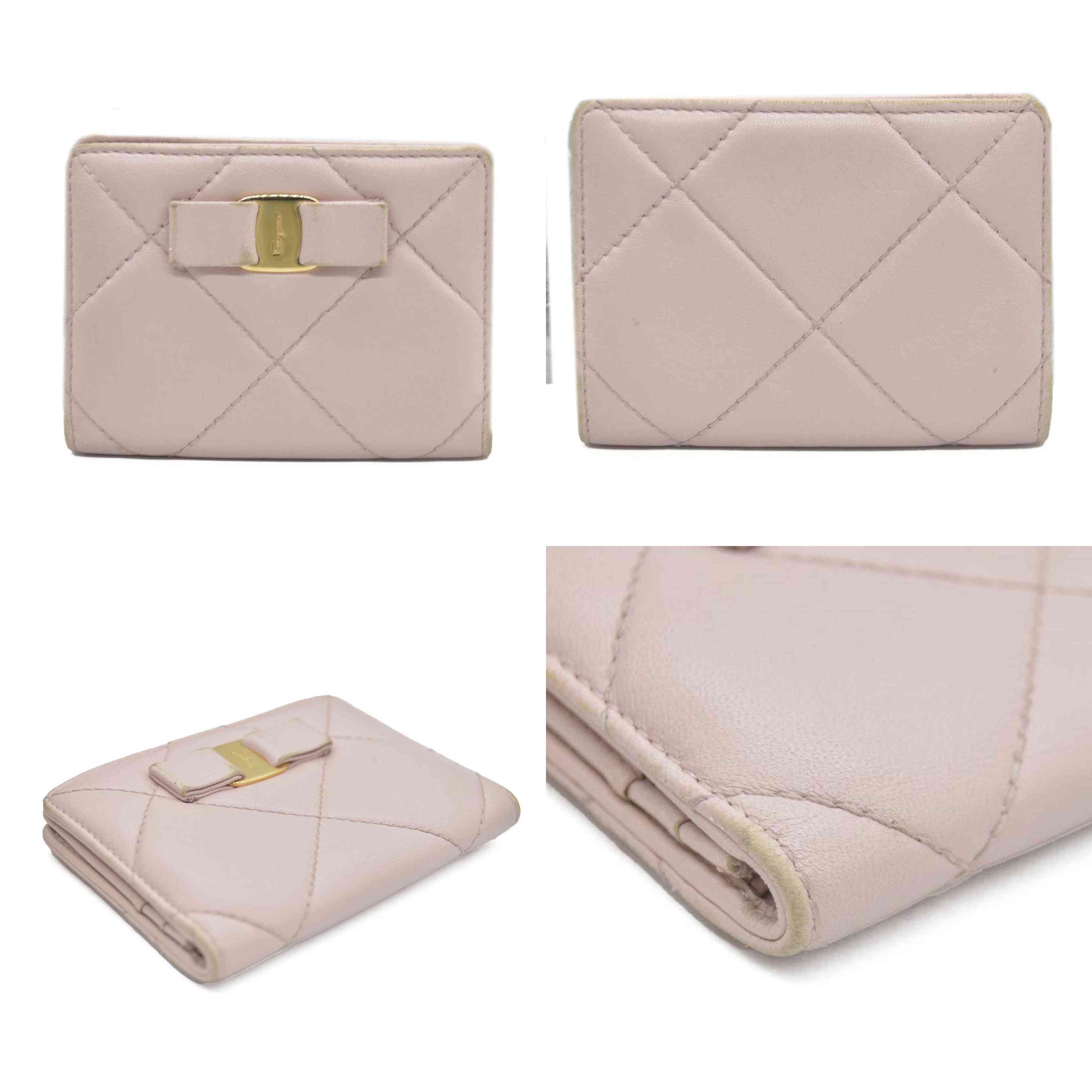 Salvatore Ferragamo Vara Ribbon Quilted Leather Bifold Wallet Pink