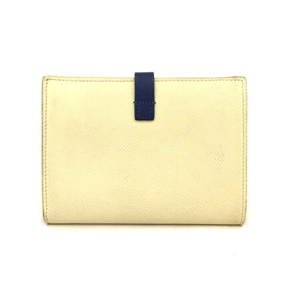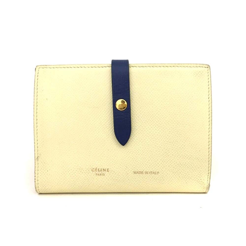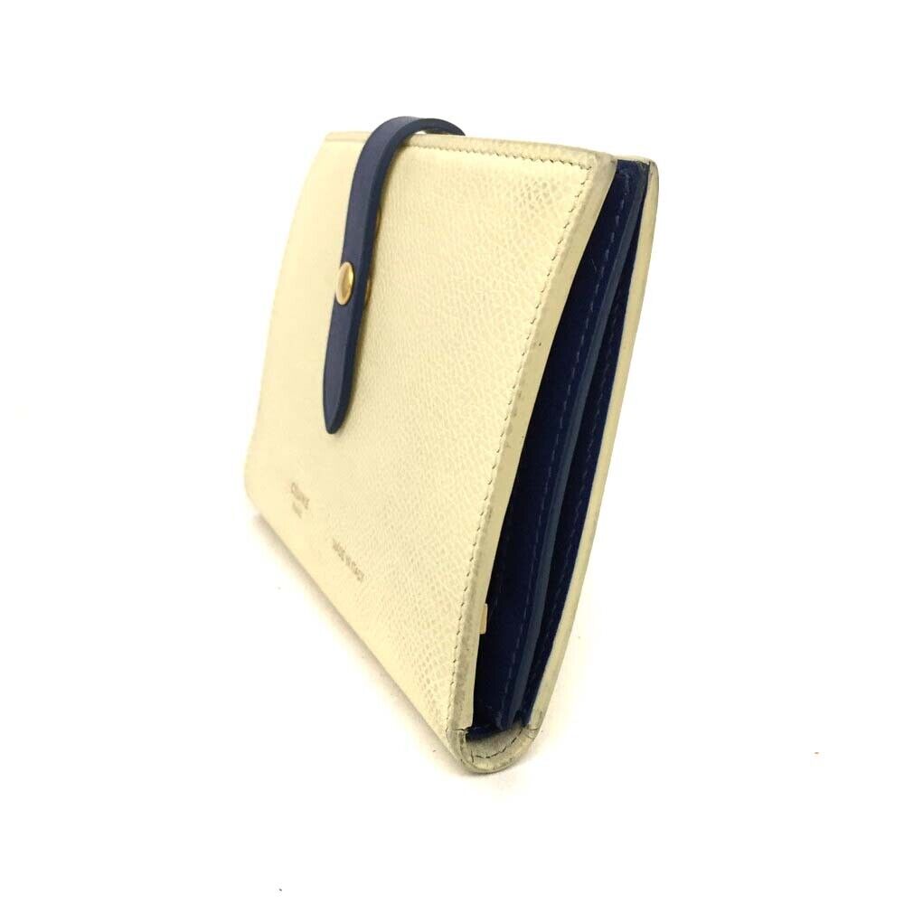 This is an authentic CELINE Grained Calfskin Large Multifunction Strap Wallet in Yellow and Blue. This chic wallet is crafted of grained calfskin leather in yellow. The wallet has a full frontal flap with a blue strap closure and opens to a compact smooth blue leather and blue suede interior with two panels of card slots, patch pockets, and a zipper compartment.