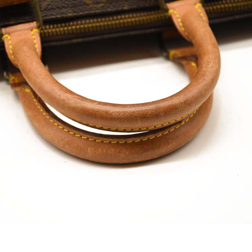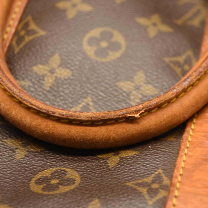 [Outside] overall : small scratches / (cracks on the leather) / slight dirt marks / mold adhesion / slightly losing shape / metal coat peeling and partially rusted bottom : obvious rubbing on corners but not torn handle : obvious rubbing / slight fabric peeling / leather cut surface main opening : slight corner rubbing / cowhide leather / obvious rain stains / color changed into brown due to tanning