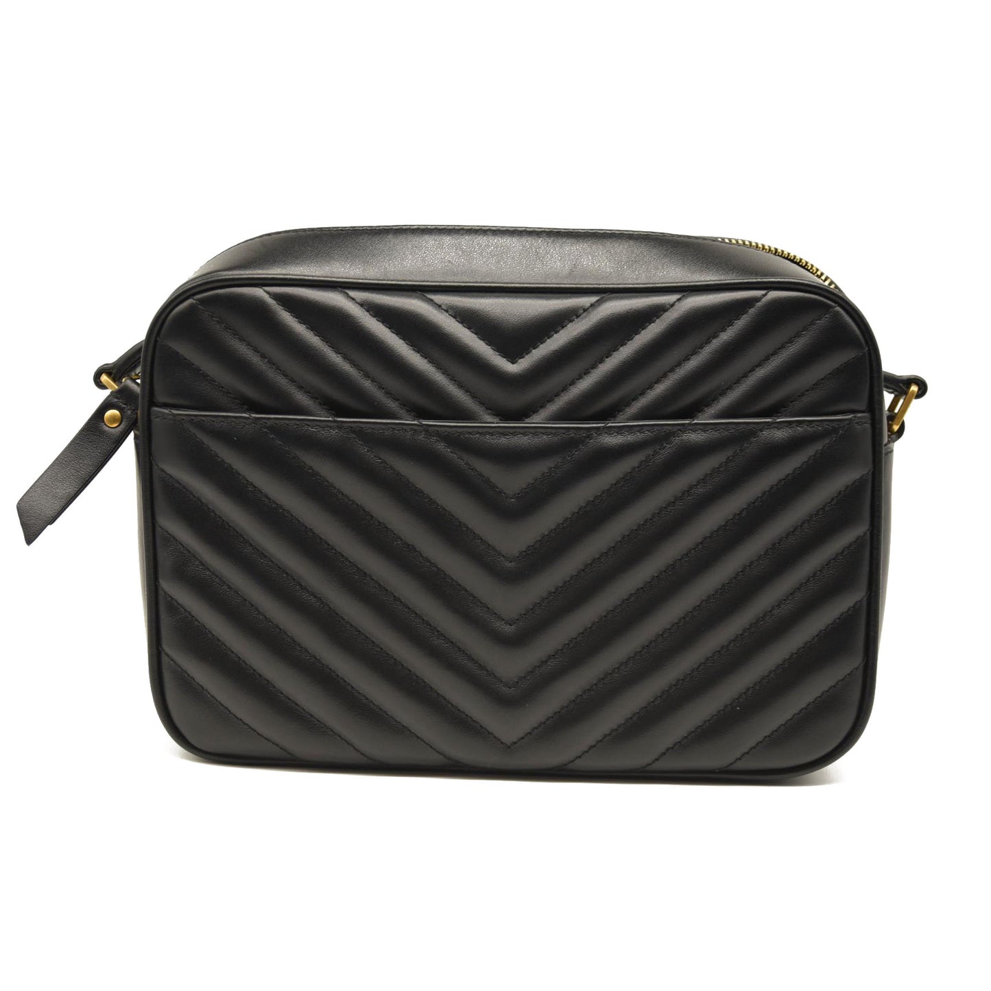 SAINT LAURENT Calfskin Matelasse Monogram Lou Camera Bag Black