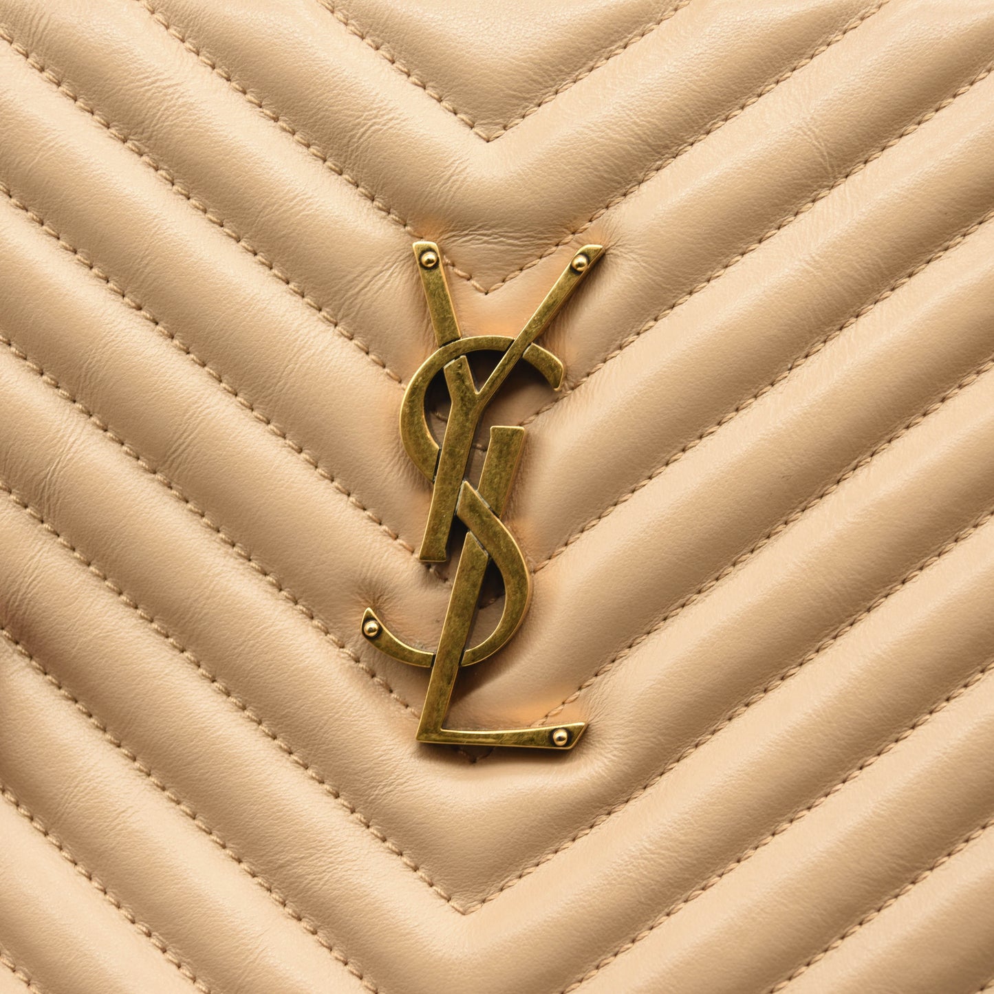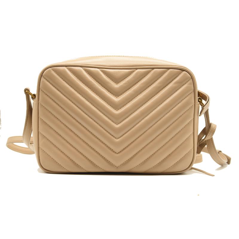 SAINT LAURENT Calfskin Matelasse Monogram Lou Camera Bag Nude Powder