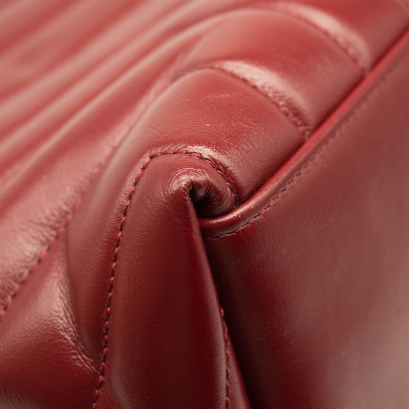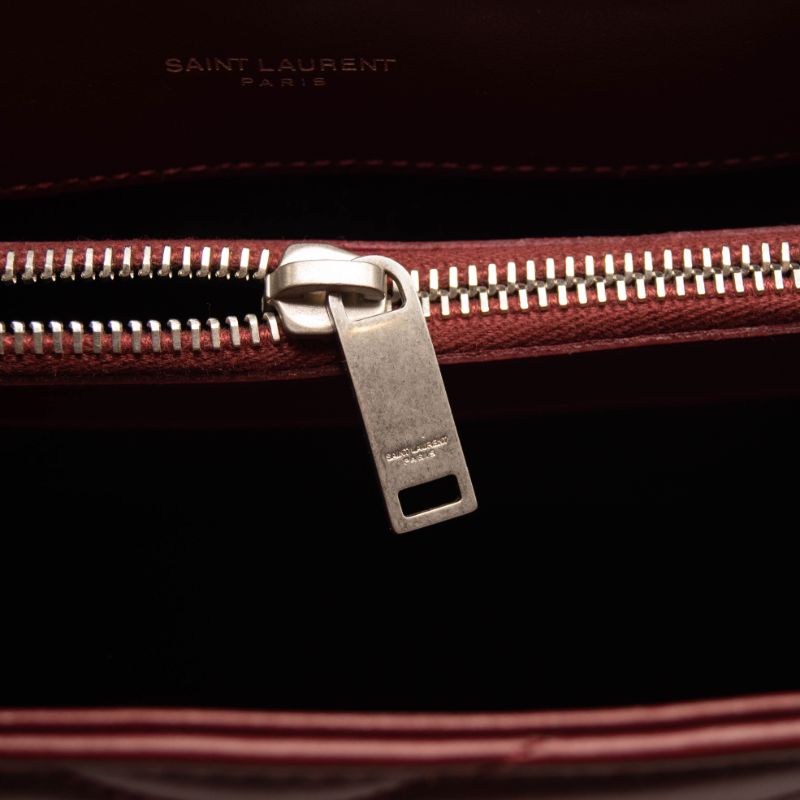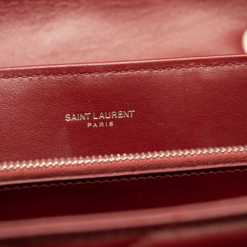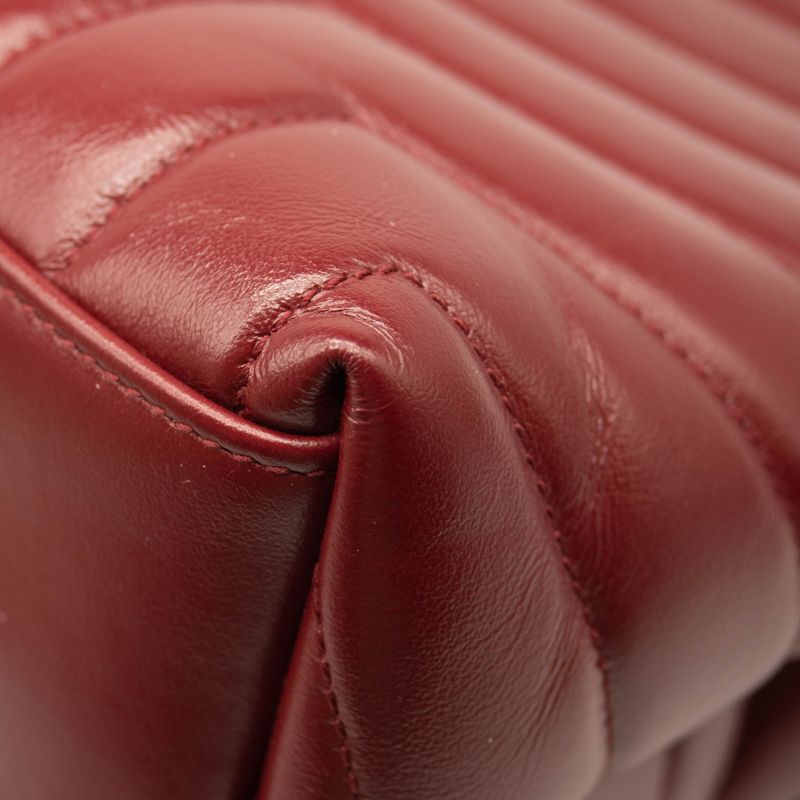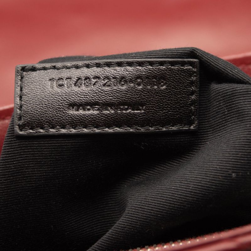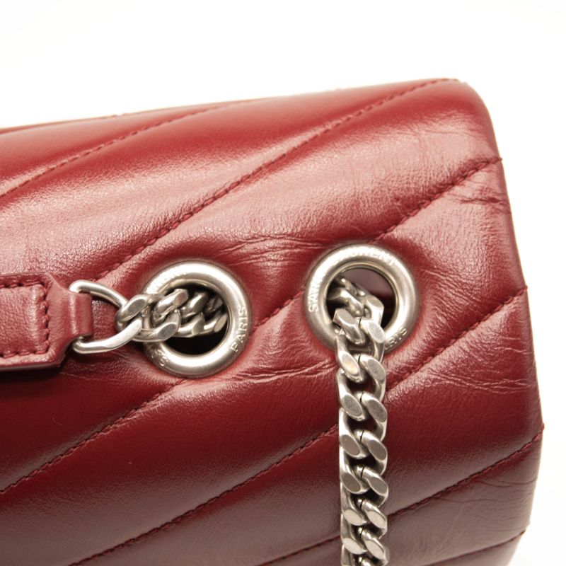 This is an authentic SAINT LAURENT Calfskin Y Quilted Monogram Medium Loulou Chain Satchel in Palissandre. This elegant shoulder tote features chic chevron quilted calfskin leather in burgundy. The bag has silver chain-link shoulder straps with matching leather shoulder pads. The frontal flap features a prominent silver YSL monogram detail and opens to a partitioned black fabric interior with zippered pockets.