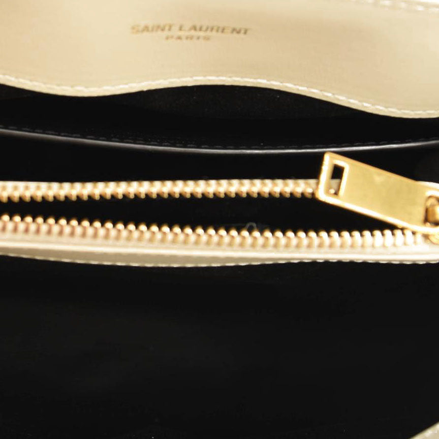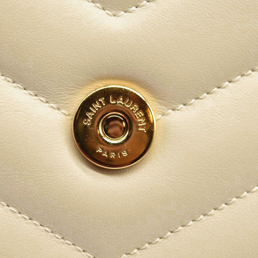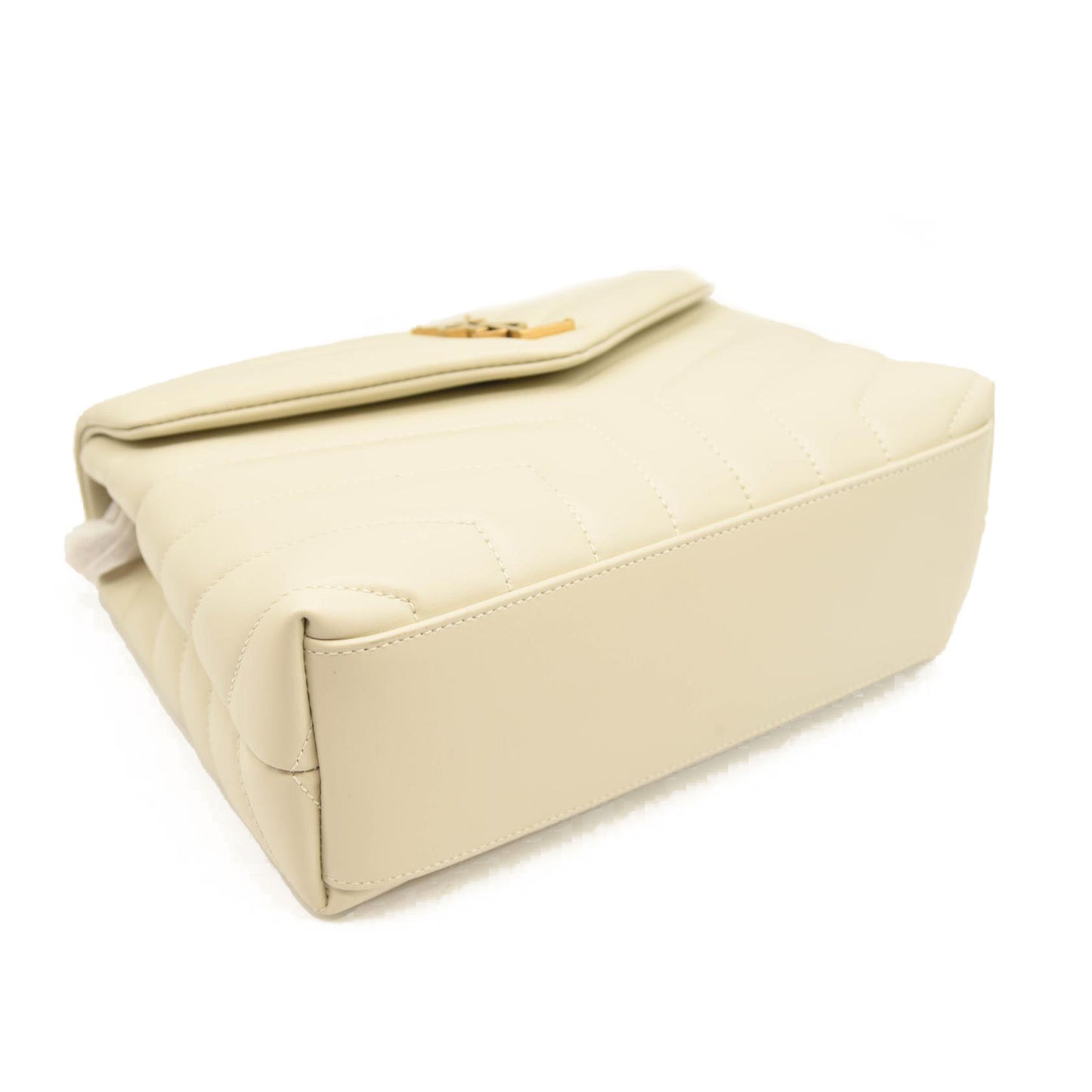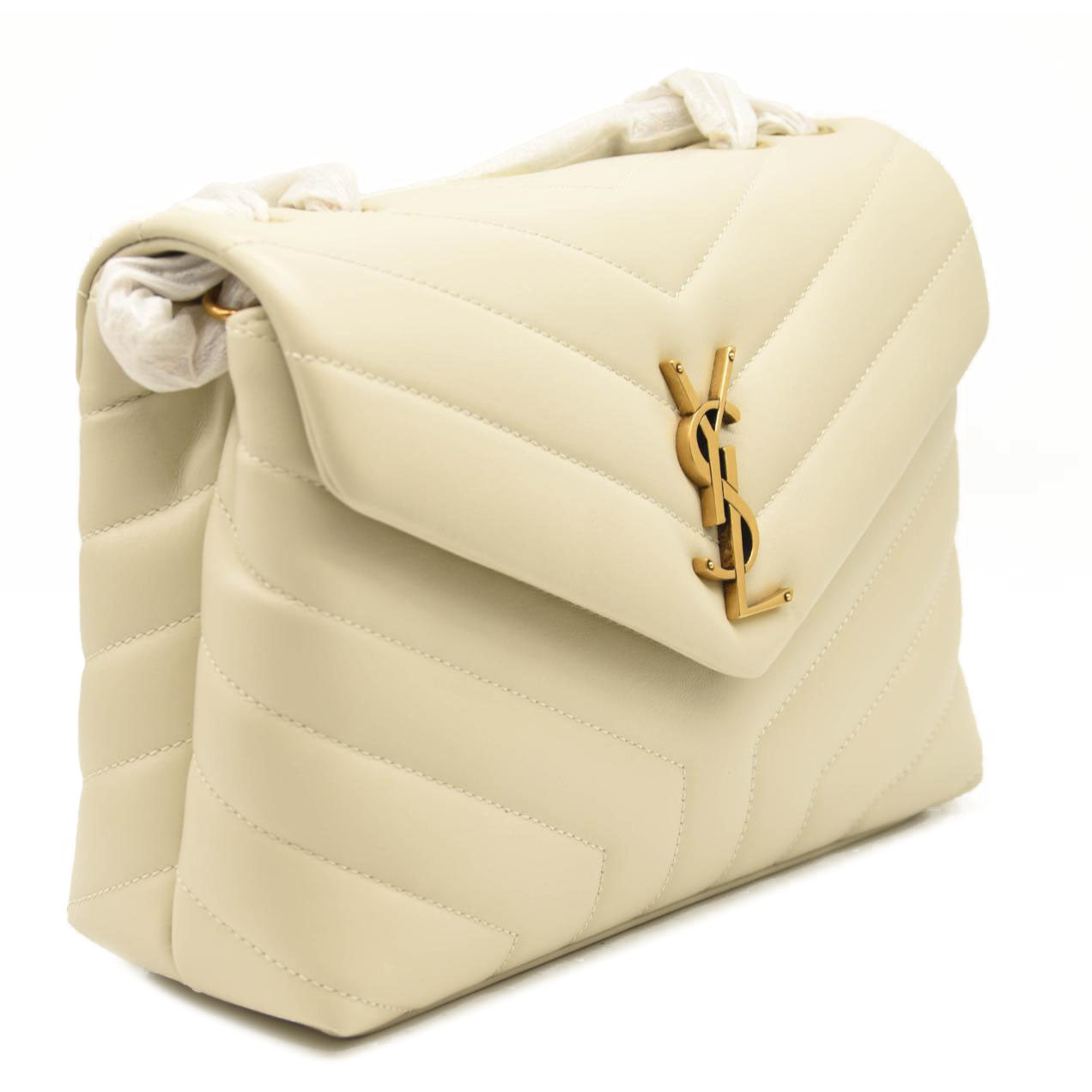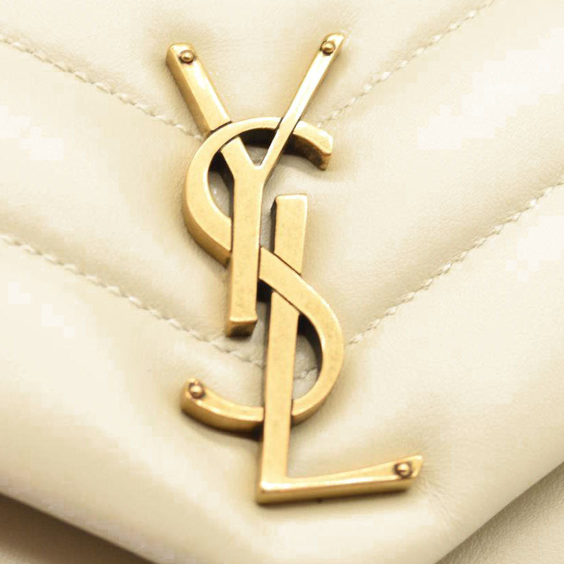 SAINT LAURENT Calfskin Y Quilted Monogram Small Loulou Chain Satchel Crema Soft